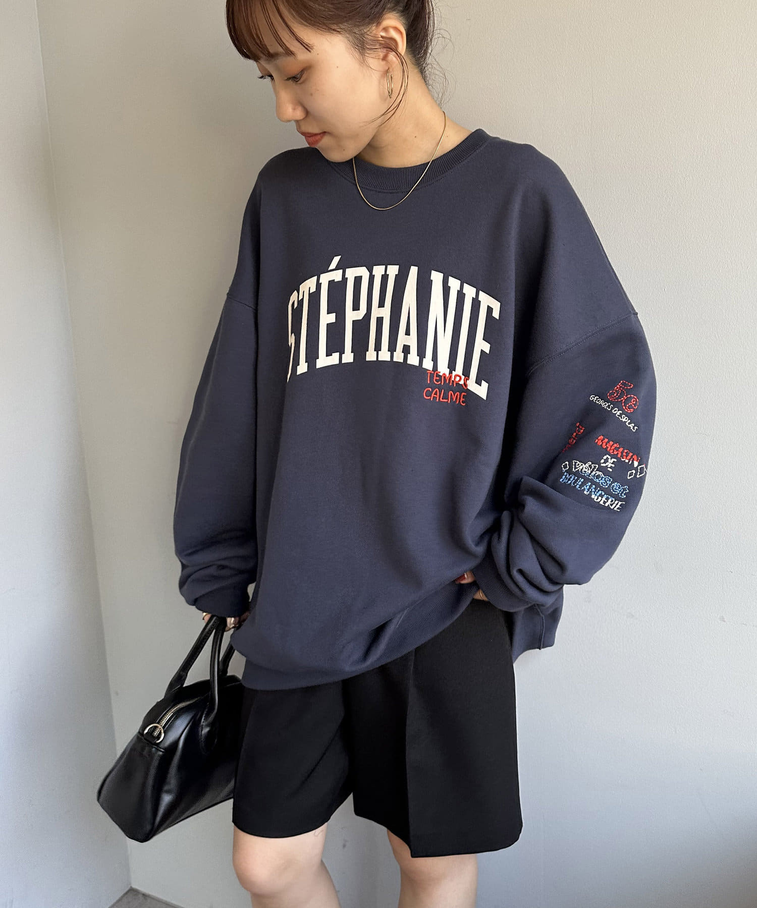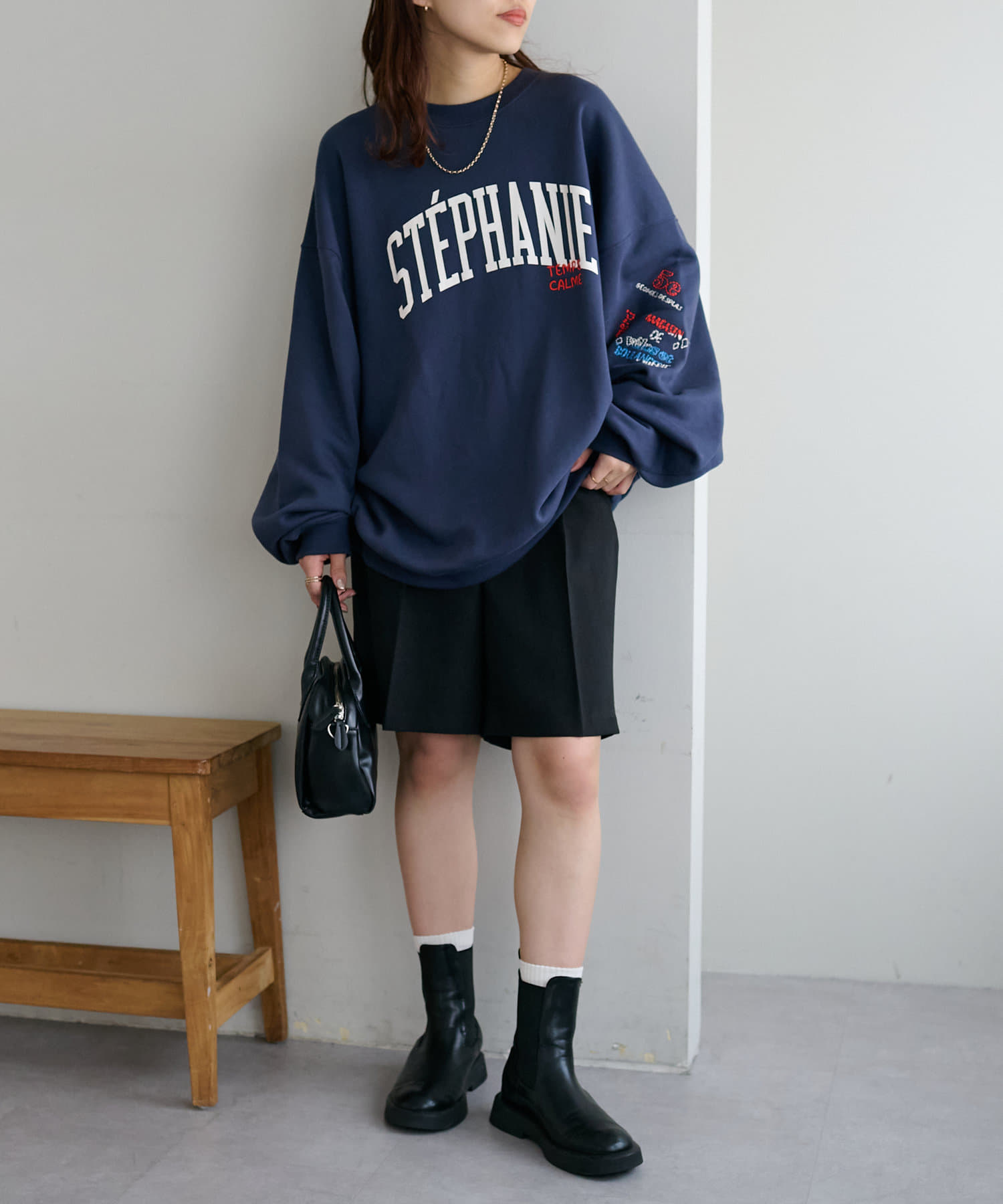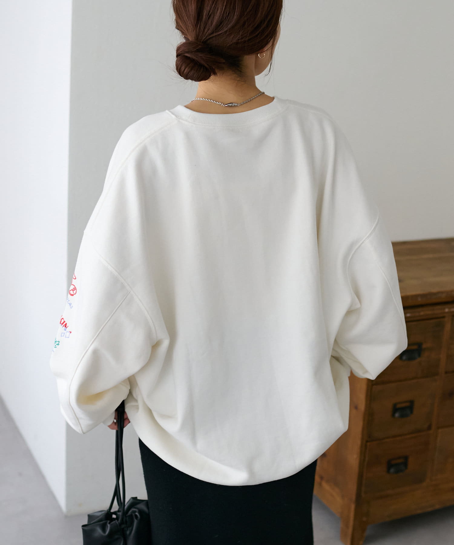 ほどよくワンポイントになるデザインが1枚着でもこなれ感のある着こなしに◎冬物のスウェットほど厚みはなく裏起毛ではない為、暑がりさんも春先にもぴったりのアイテムです。ユニセックスなのでペアルックでの着用もおすすめです♪