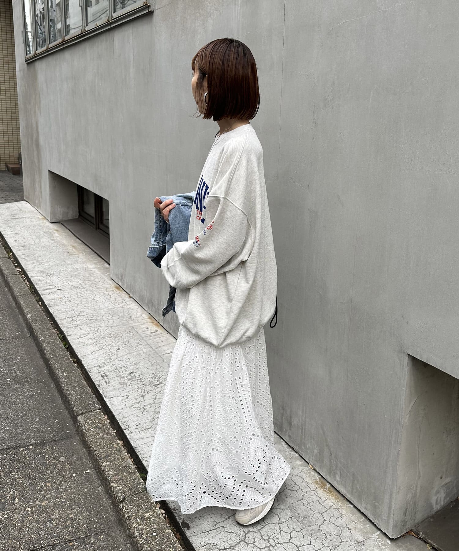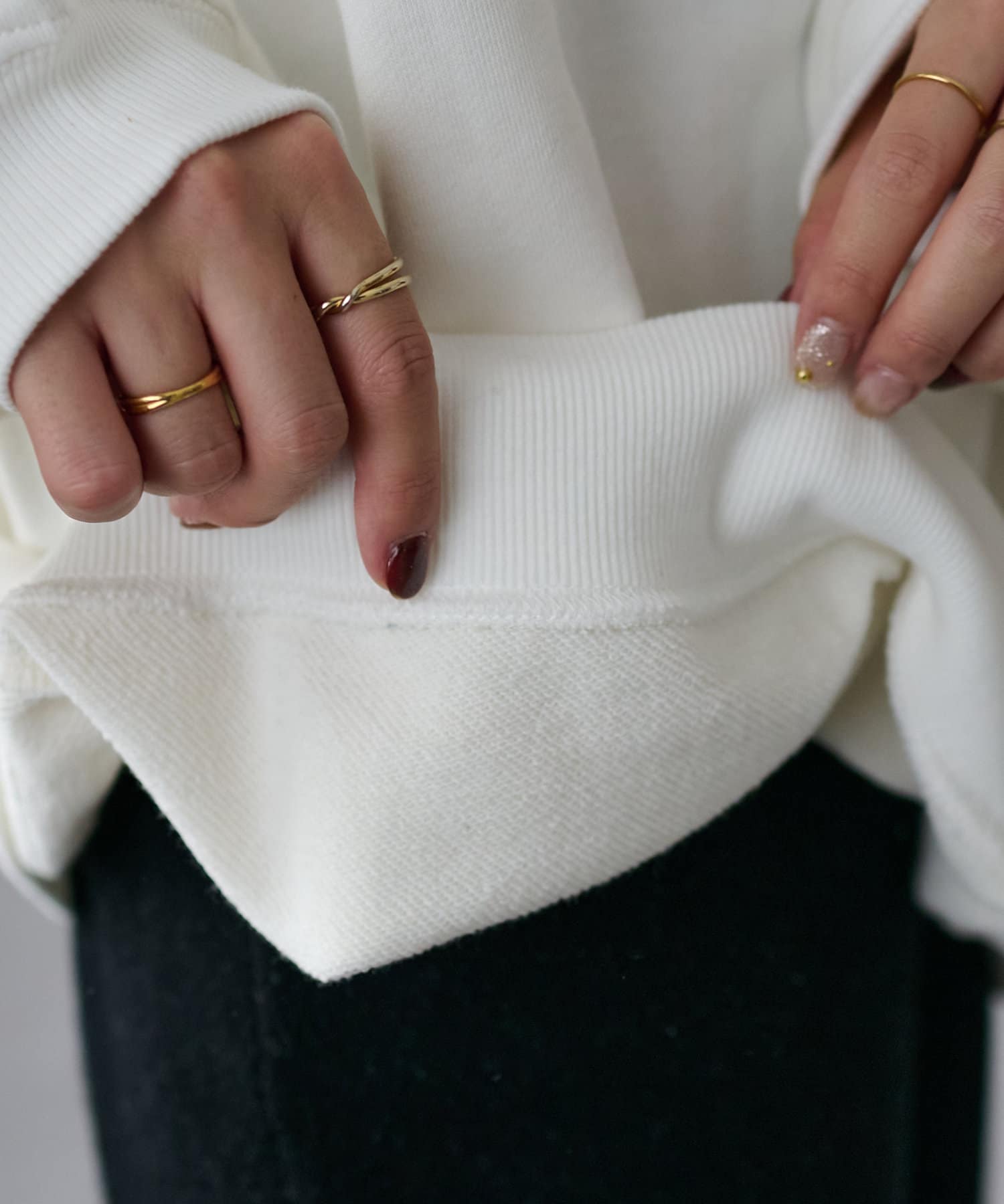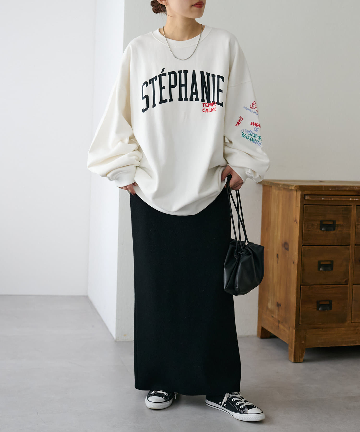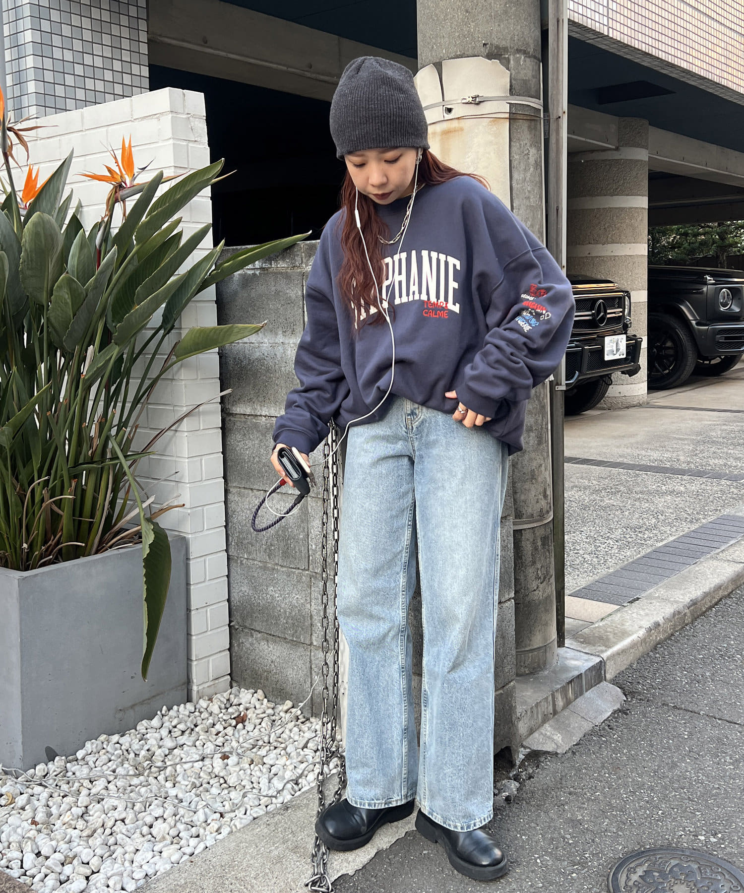 ほどよくワンポイントになるデザインが1枚着でもこなれ感のある着こなしに◎冬物のスウェットほど厚みはなく裏起毛ではない為、暑がりさんも春先にもぴったりのアイテムです。ユニセックスなのでペアルックでの着用もおすすめです♪