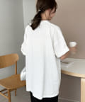 155cmレディーススタッフ:肘まで隠れる袖丈、お尻まで隠れる着丈です。ゆったりとしたサイズ感ですが、ボトムスにインすることですっきりとした印象で着用できます。