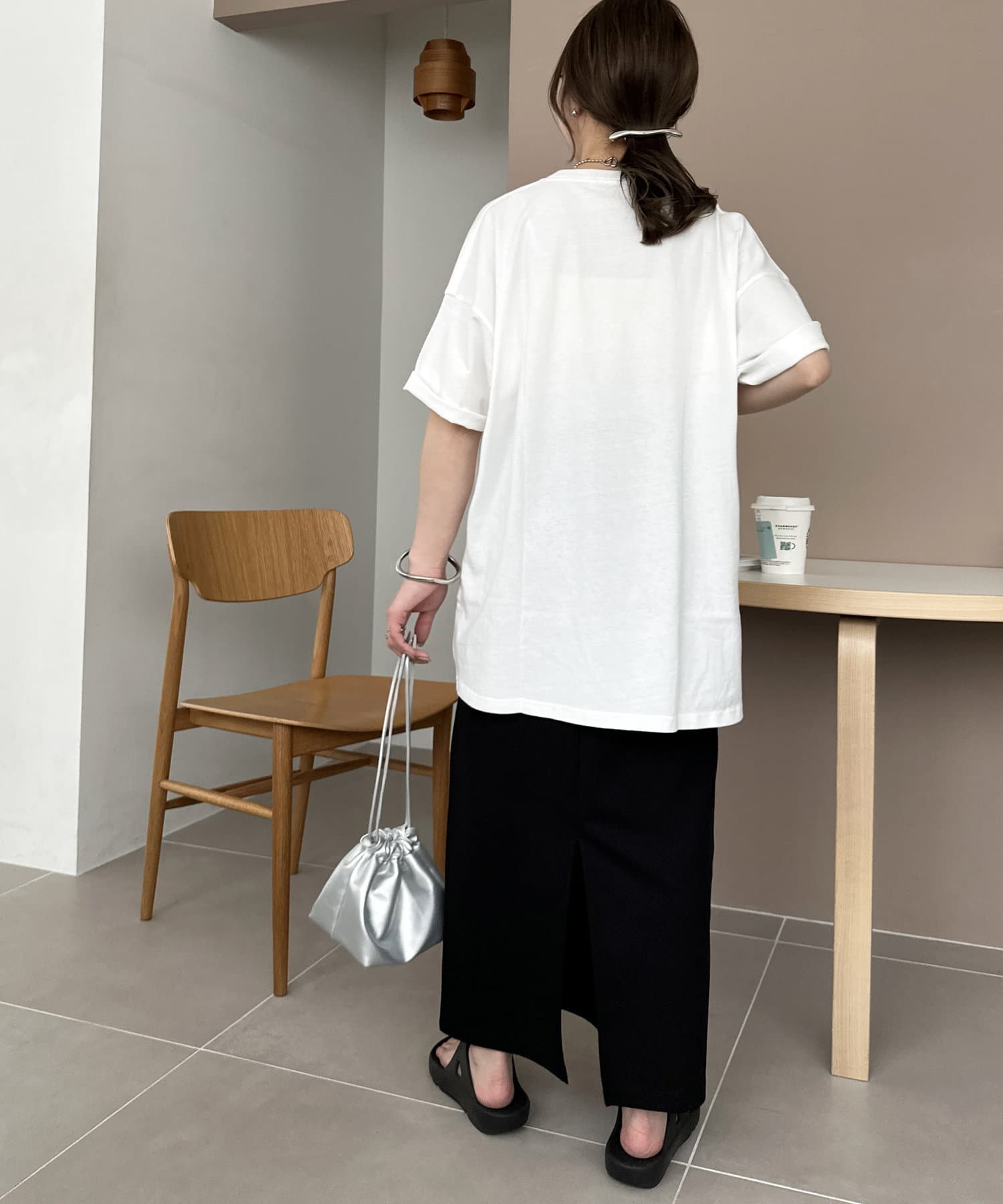 167cmレディーススタッフ:袖口をロールアップすることでこなれ感がでるのでおすすめです。ロゴの配色と同系色の小物を取り入れると統一感のあるスタイリングに◎