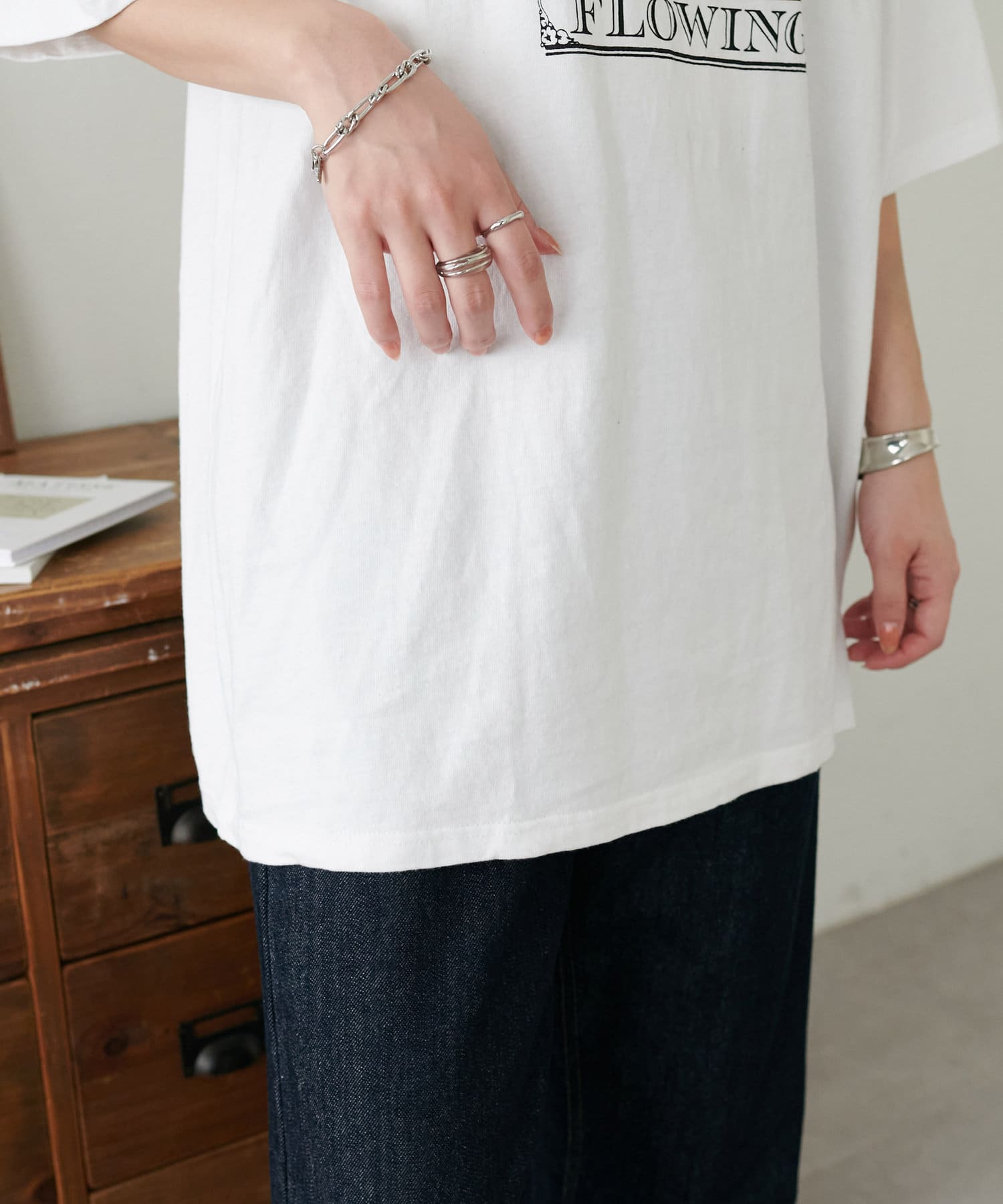 立体感のある刺繍と手書き風のプリントグラフィックがコーデに映えるTシャツ。男女問わず着用できるユニセックスアイテムで、ゆったりとしたサイズ感がトレンドライクな着こなしを叶えます。