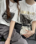 モノクロのフォトプリントにゴールドとシルバーのロゴデザインで雰囲気のある魅力的なTシャツ。