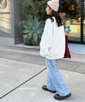 ゆとりのあるシルエットなので、インナーにシャツ合わせやタートルネックを合わせたコーデも楽しめます〇