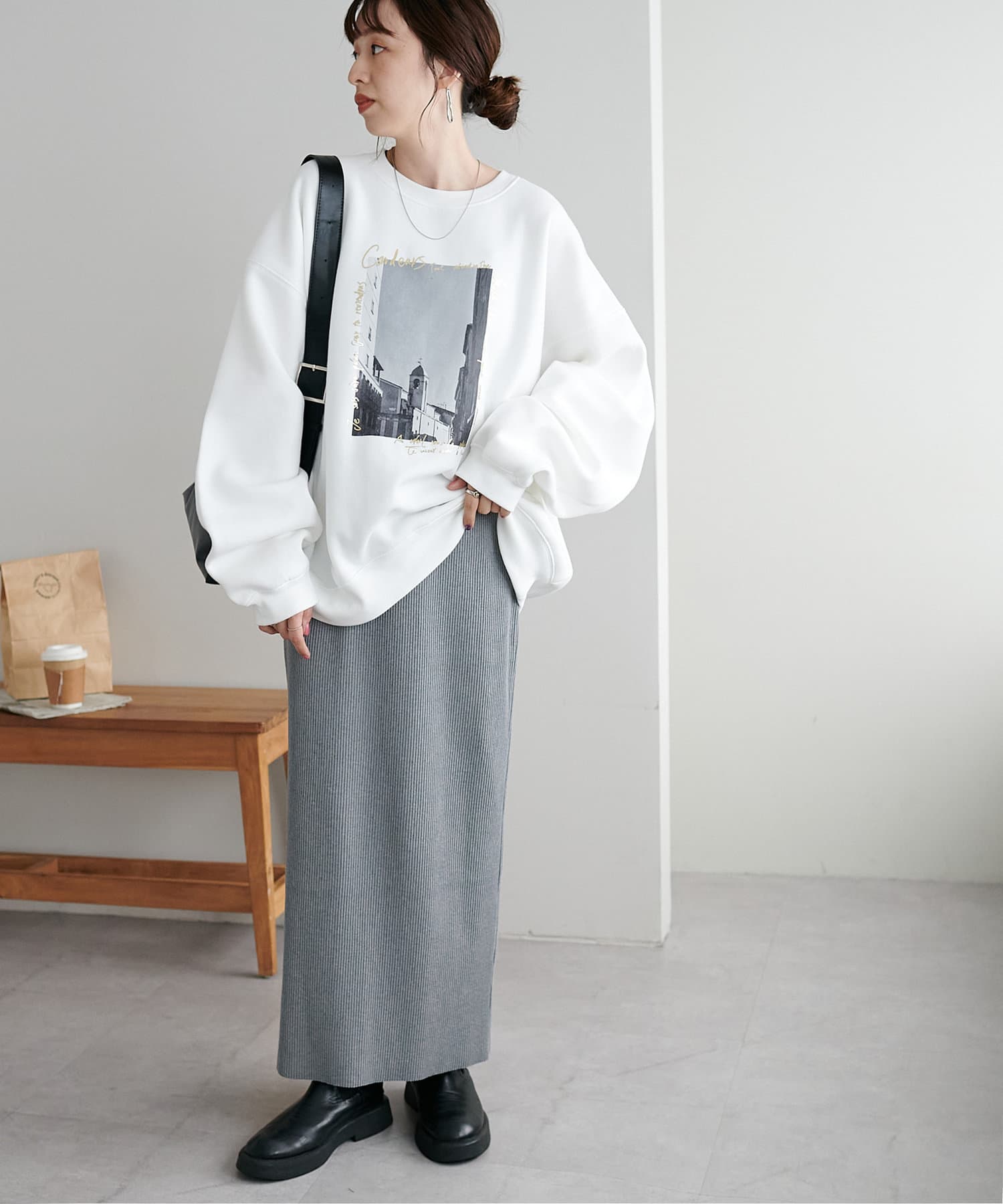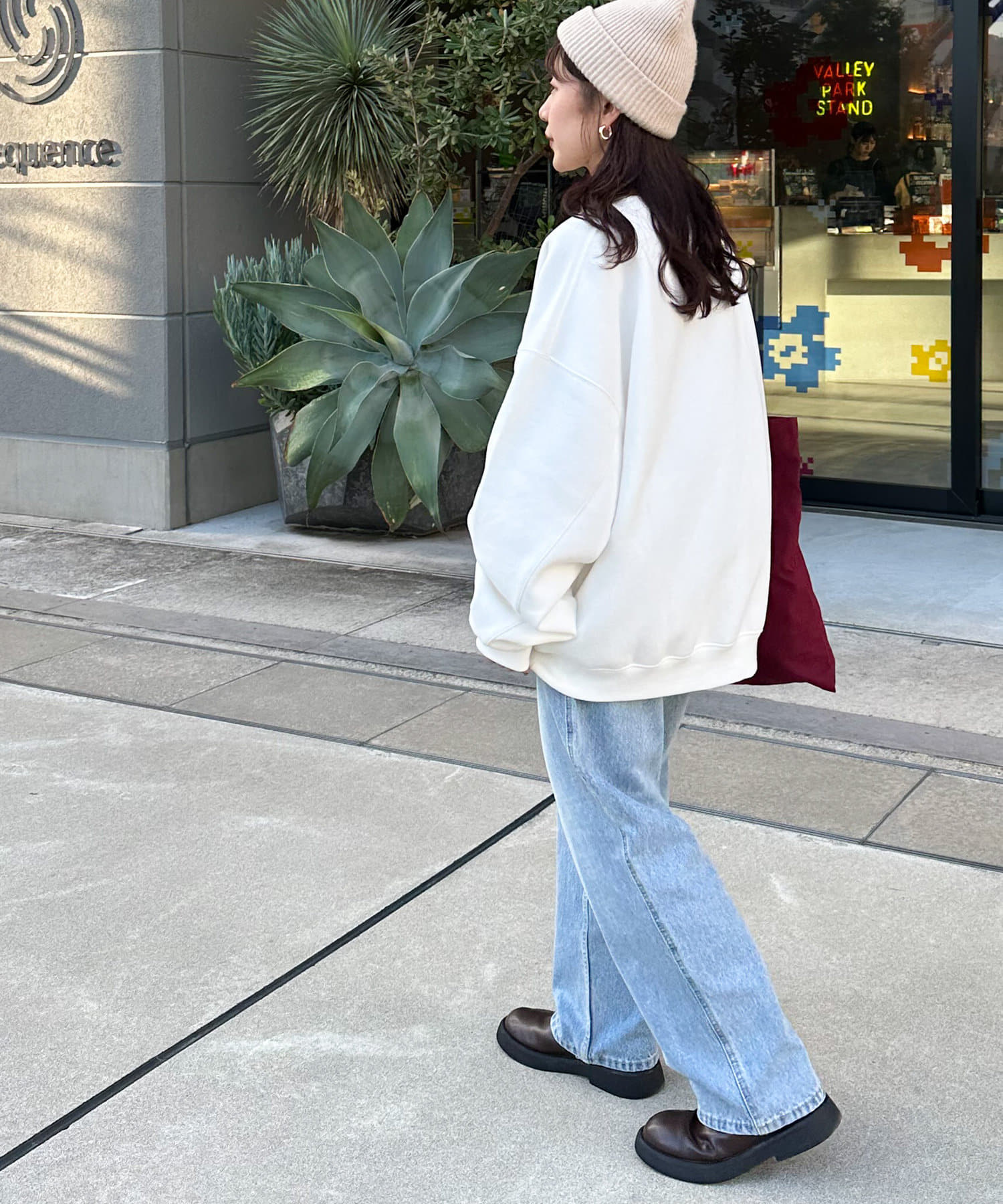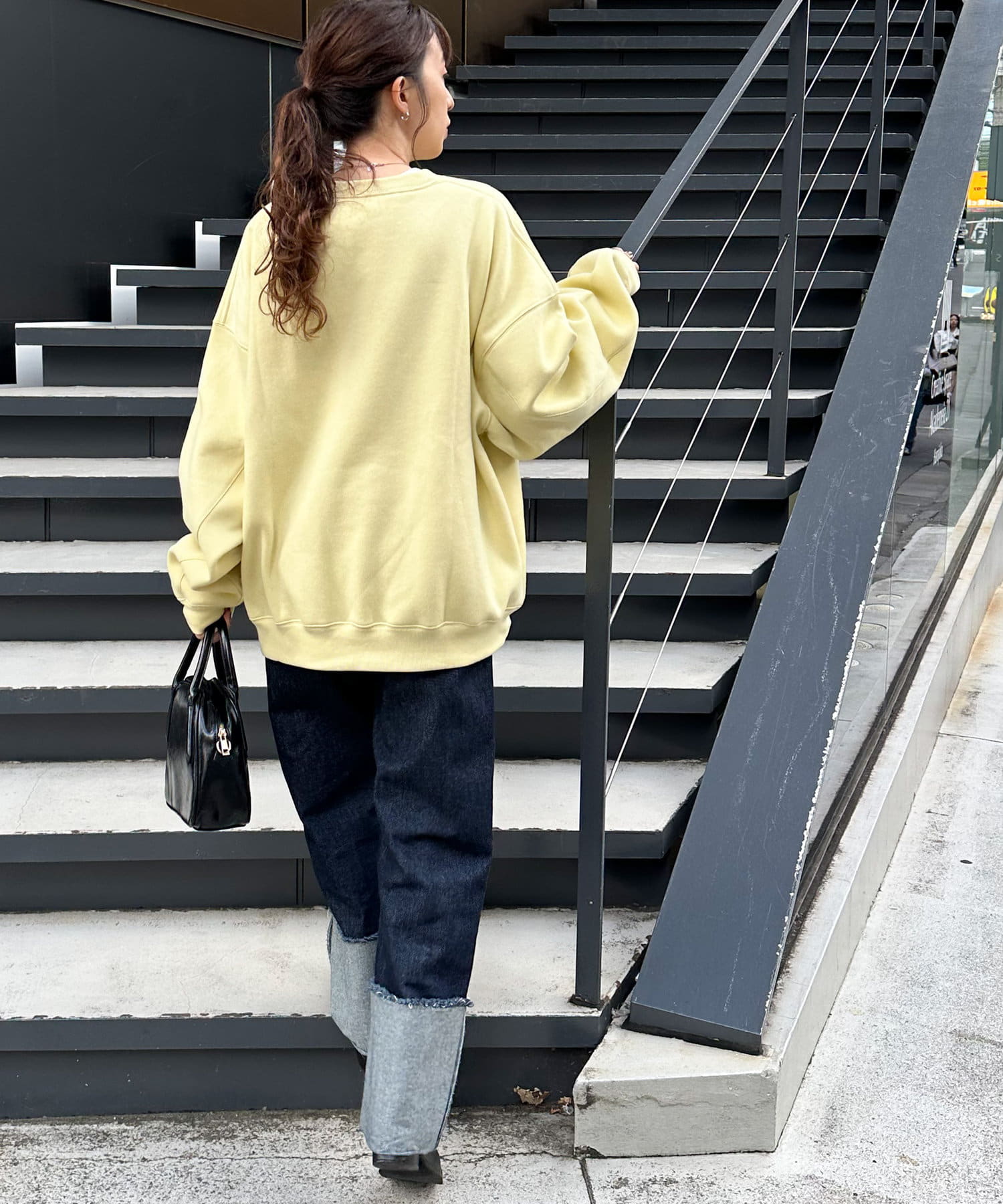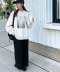 149cmスタッフ:お尻回りが隠れる丈感なので、ショートパンツと合わせても安心〇少し丸みのあるシルエットが柔らかい雰囲気になりスウェットですが、カジュアルになりすぎずコーデに取り入れやすいです!