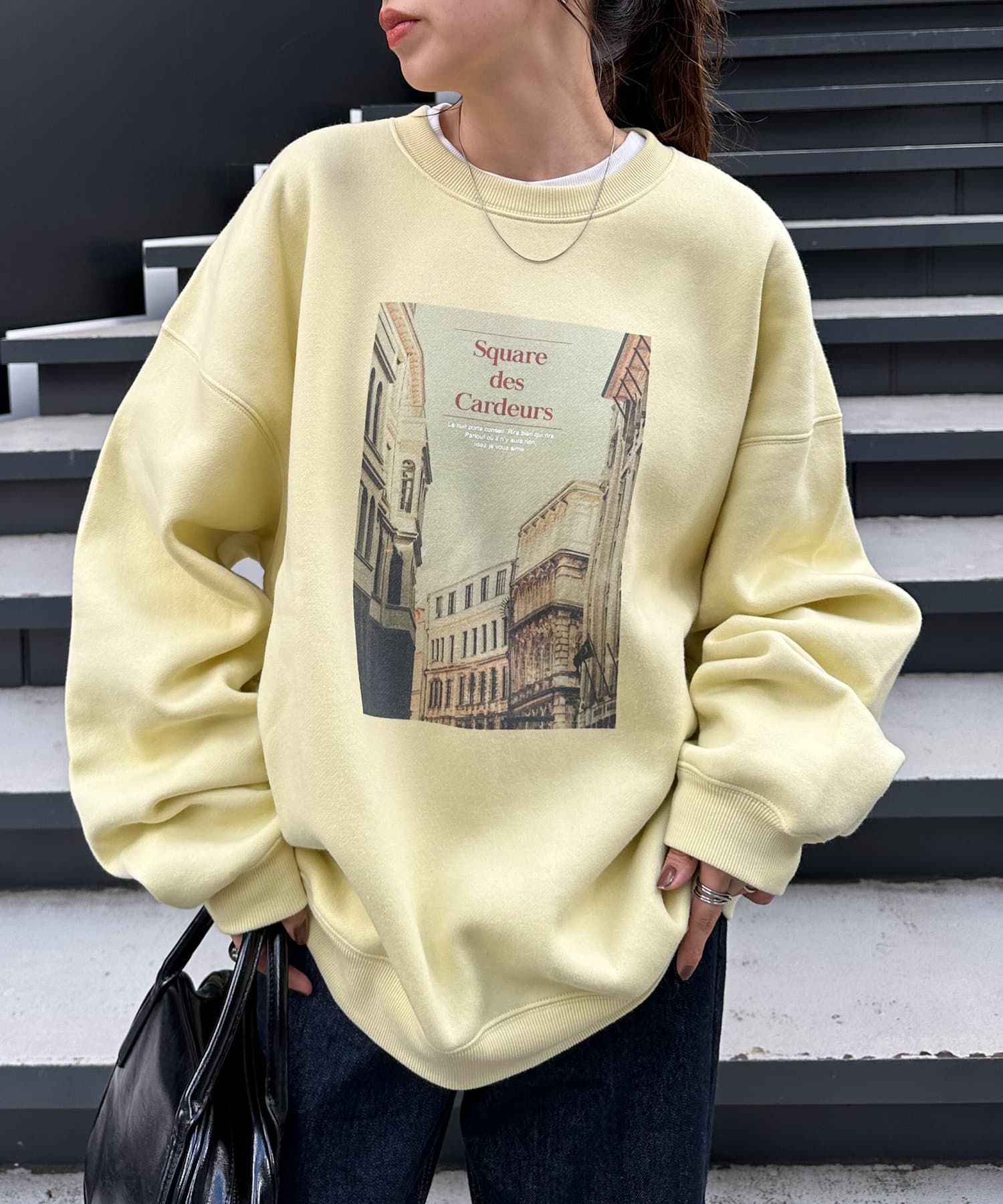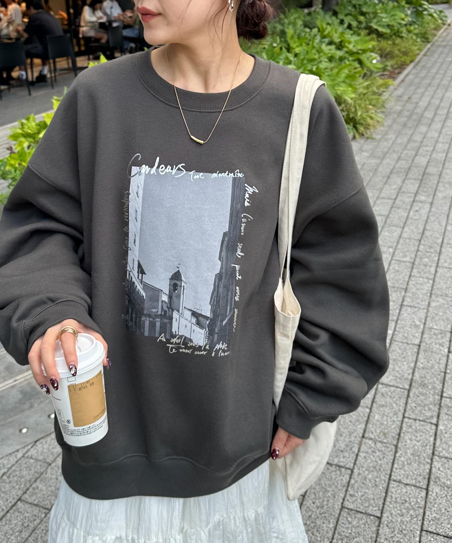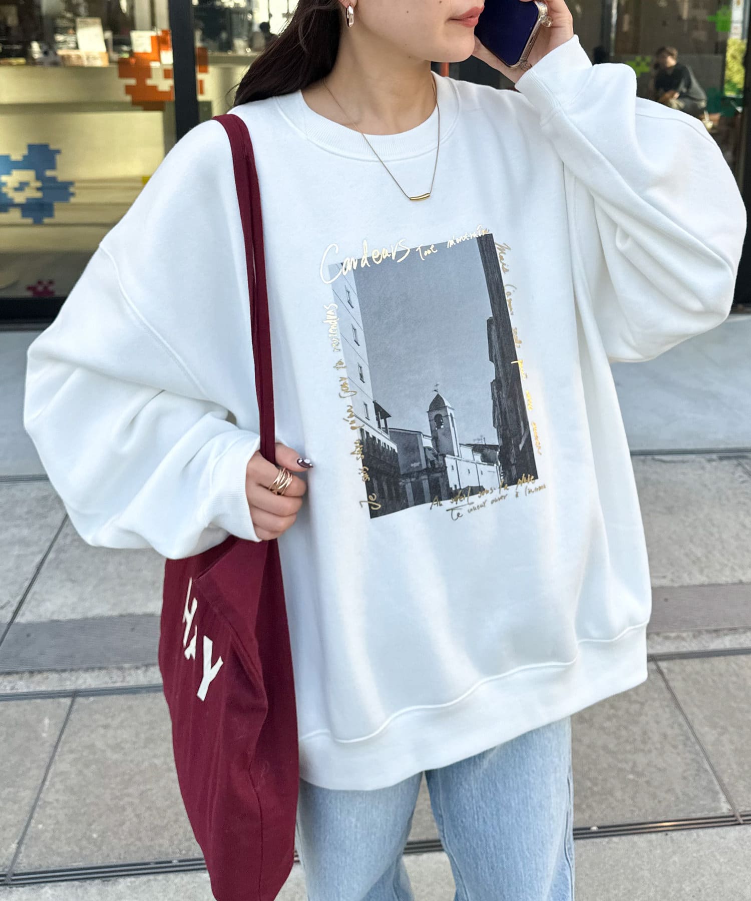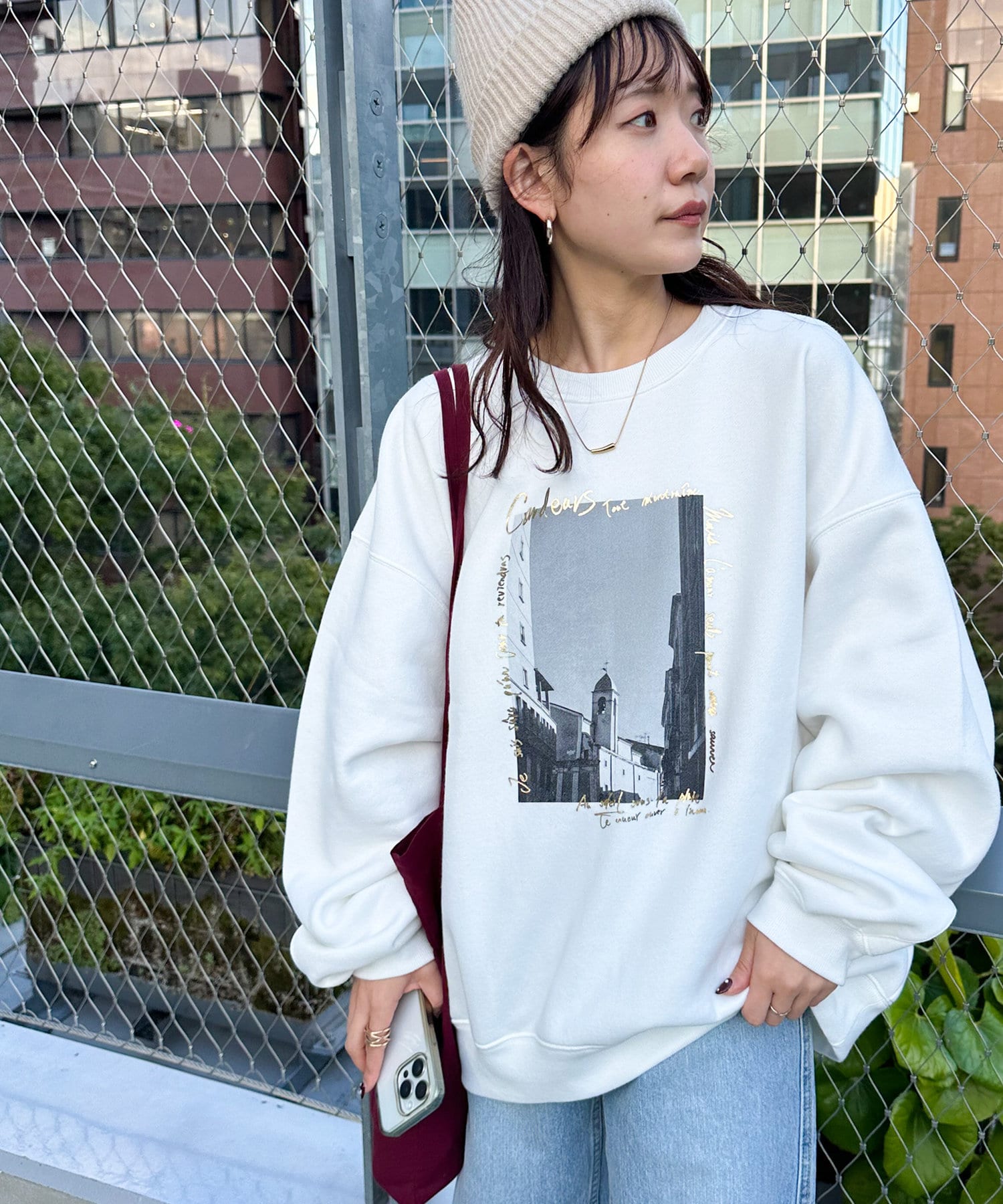 フロントのフォトプリントや箔プリントがコーデにアクセントをプラスします!