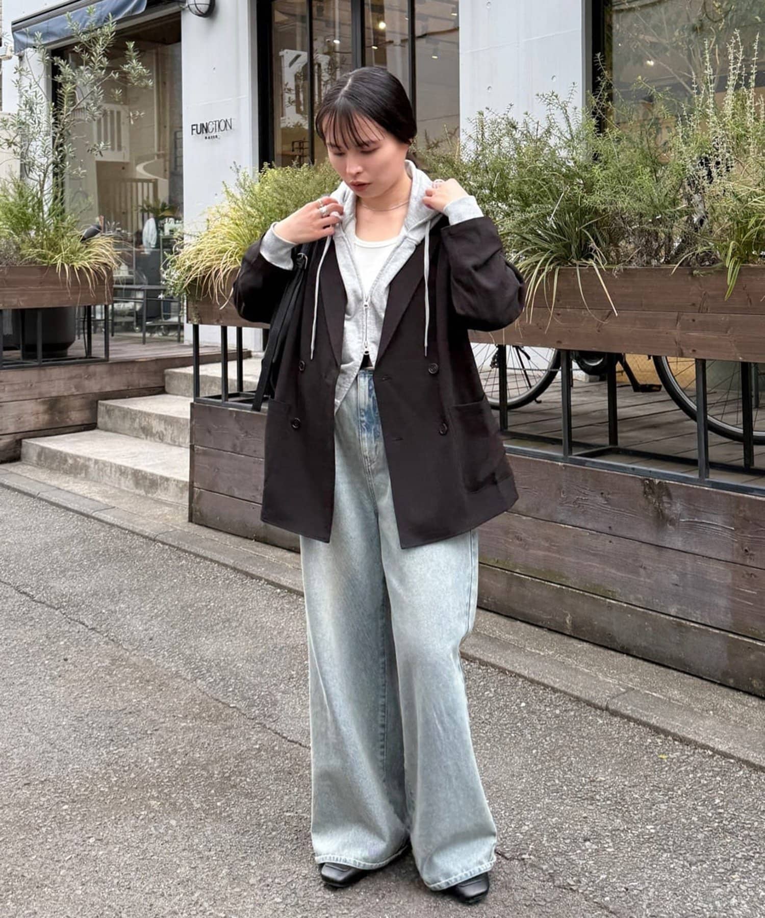 169cmメンズスタッフ:メンズが着用してもお尻がにかかるくらいの丈感で、ゆったりとしたサイズ感なのでかっちりしすぎずコーデに取り入れやすいです◎