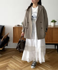 購入場所:店舗絶妙なトーンの『グレージュ』にしました。ブラウン系とブルーの合わせを今年はしたくて。ケンカしあわないこの色が気に入りました。テックリネンはシワにならず家で洗濯できるのも魅力(去年も春夏大活躍)。