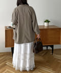 肌触りの良いさらっとした素材が魅力のテックリネンを使用したシャツジャケット。春から秋にかけてロングシーズン着用していただけるアイテムで、男女共に羽織ることができるゆとりのあるシルエットはリラックス感を演出してくれます♪きちんと感のあるカジュアルなテーラードカラーに、節々のワイドなシルエットが抜け感をプラスしてくれます◎