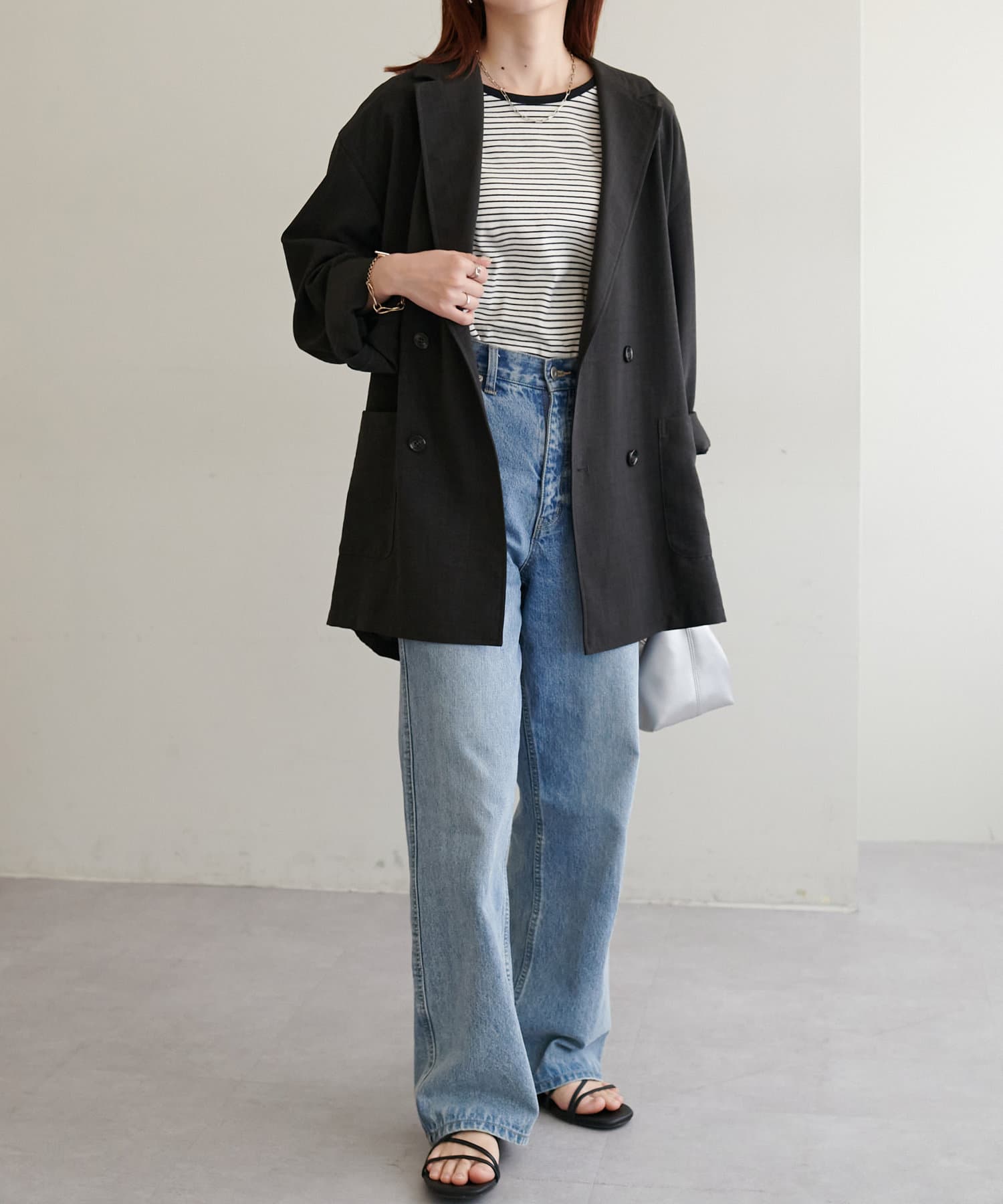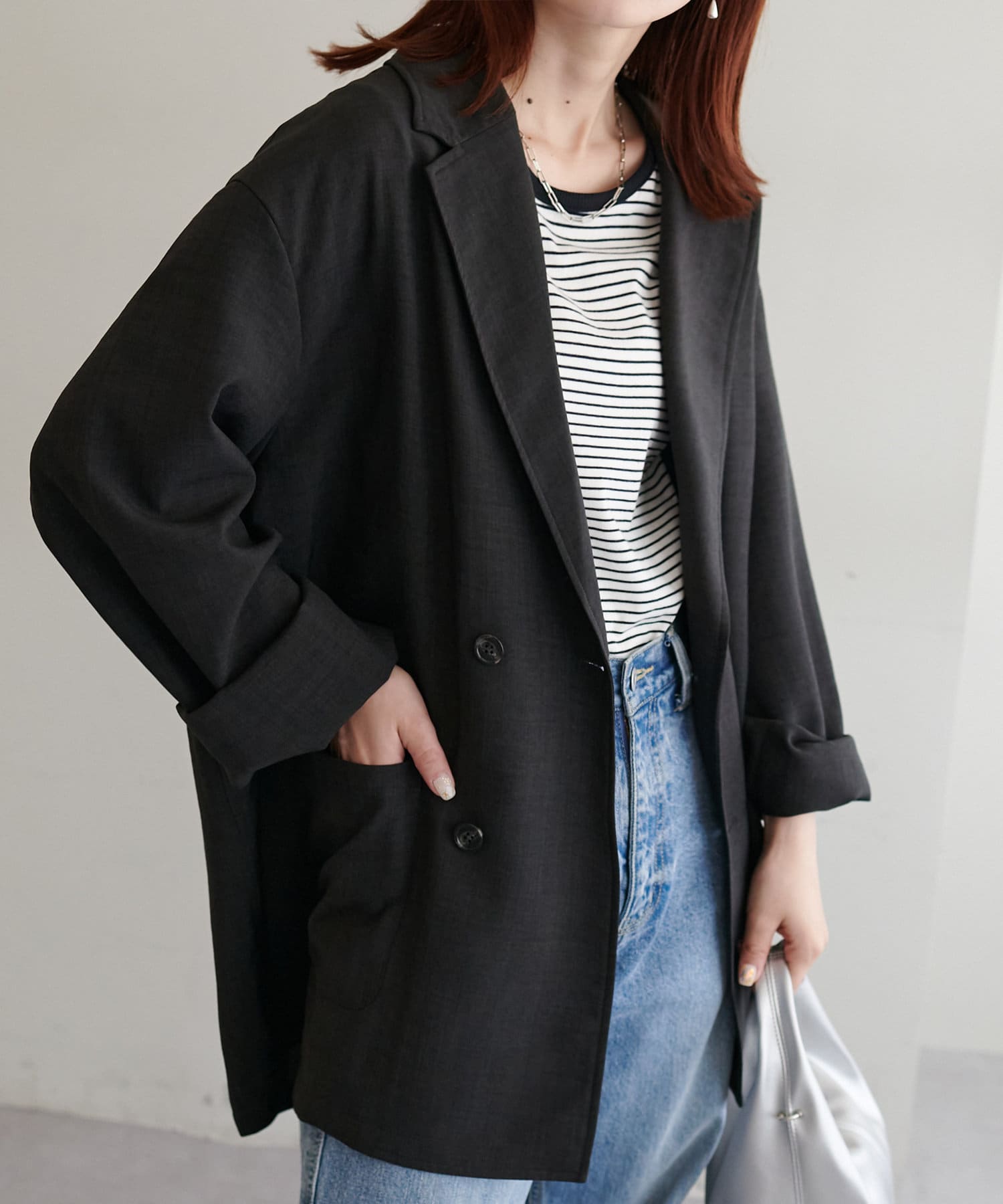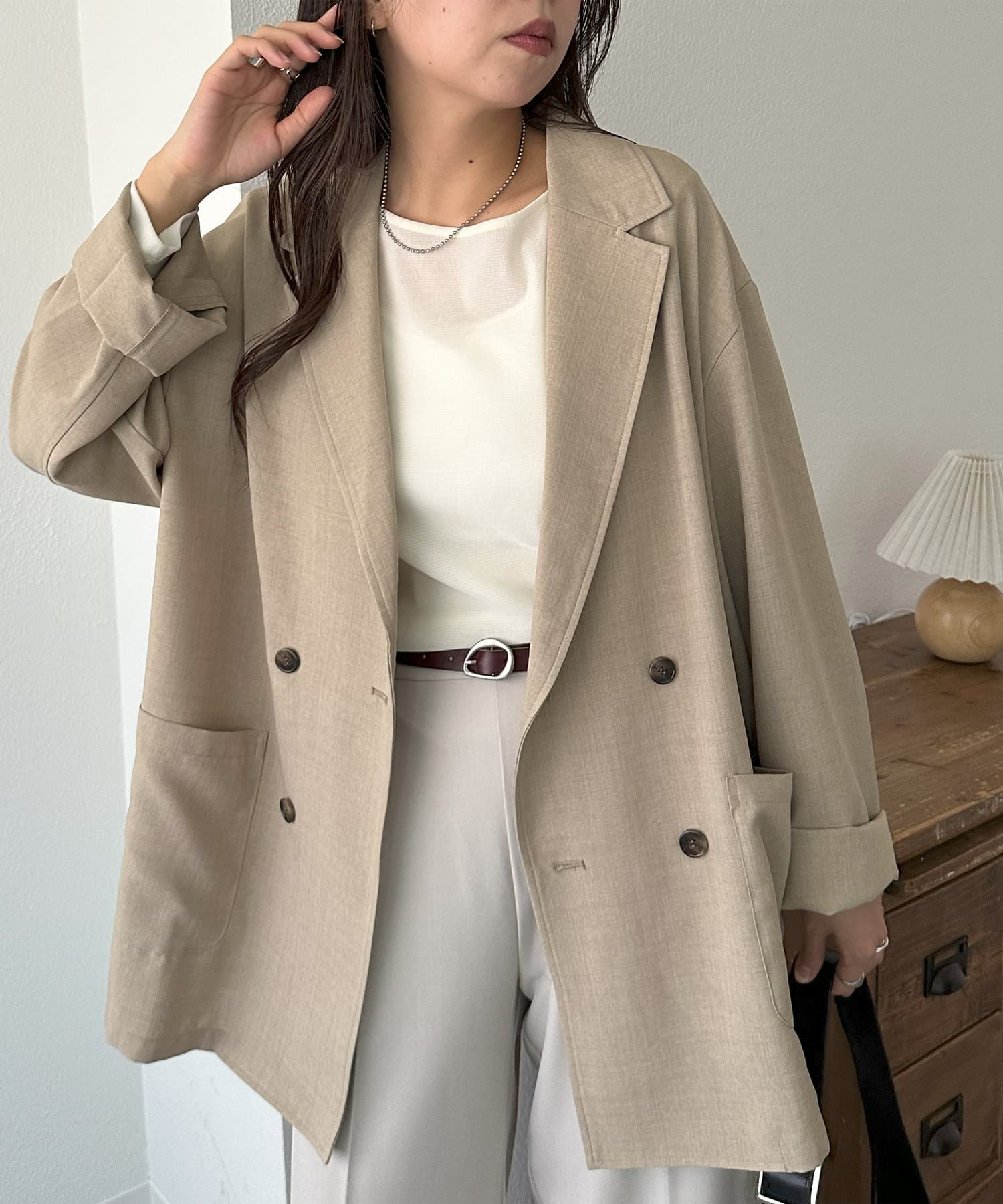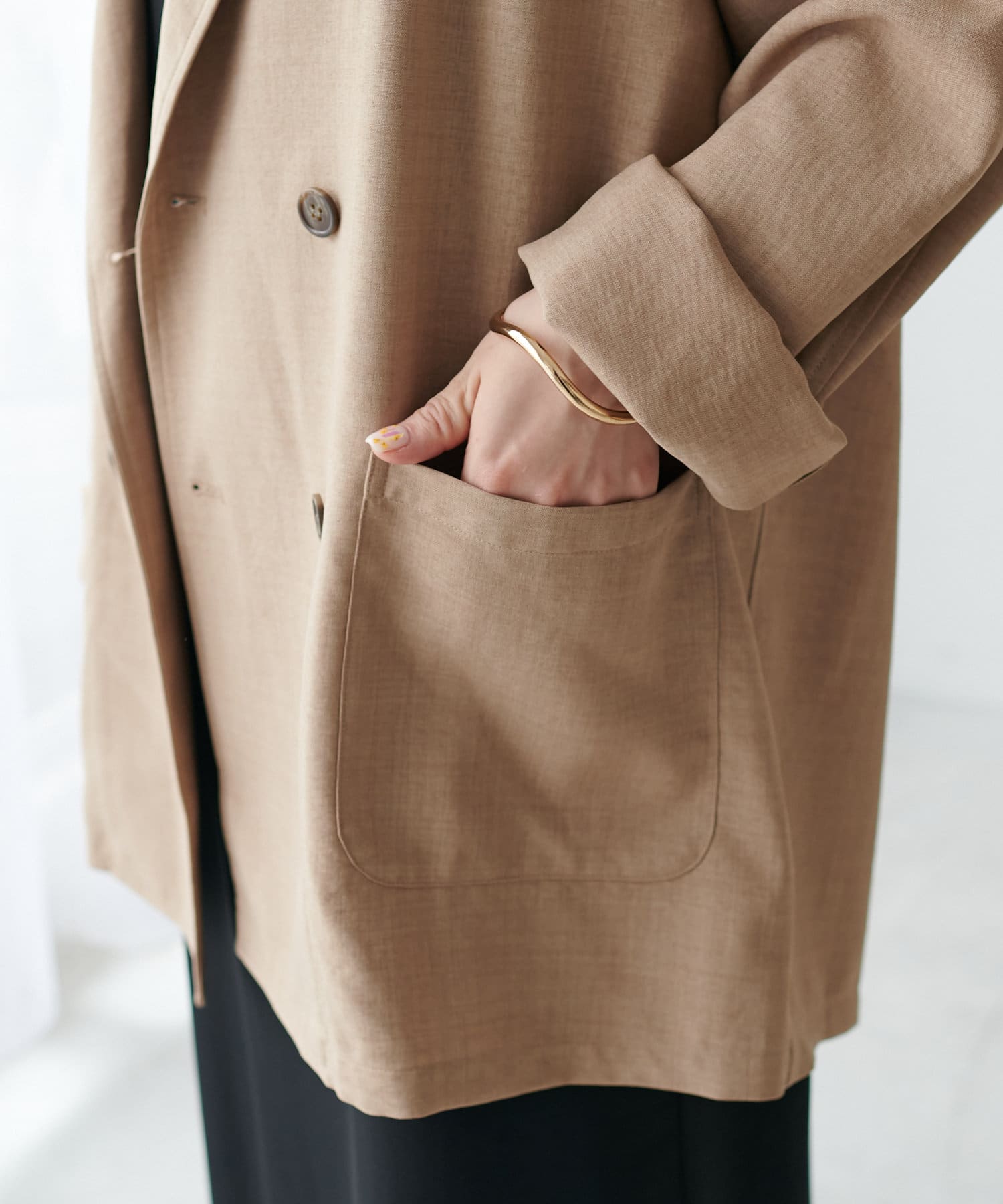 軽くてシワになりにくくてカジュアルにも綺麗めにもできるジャケットだと思います。