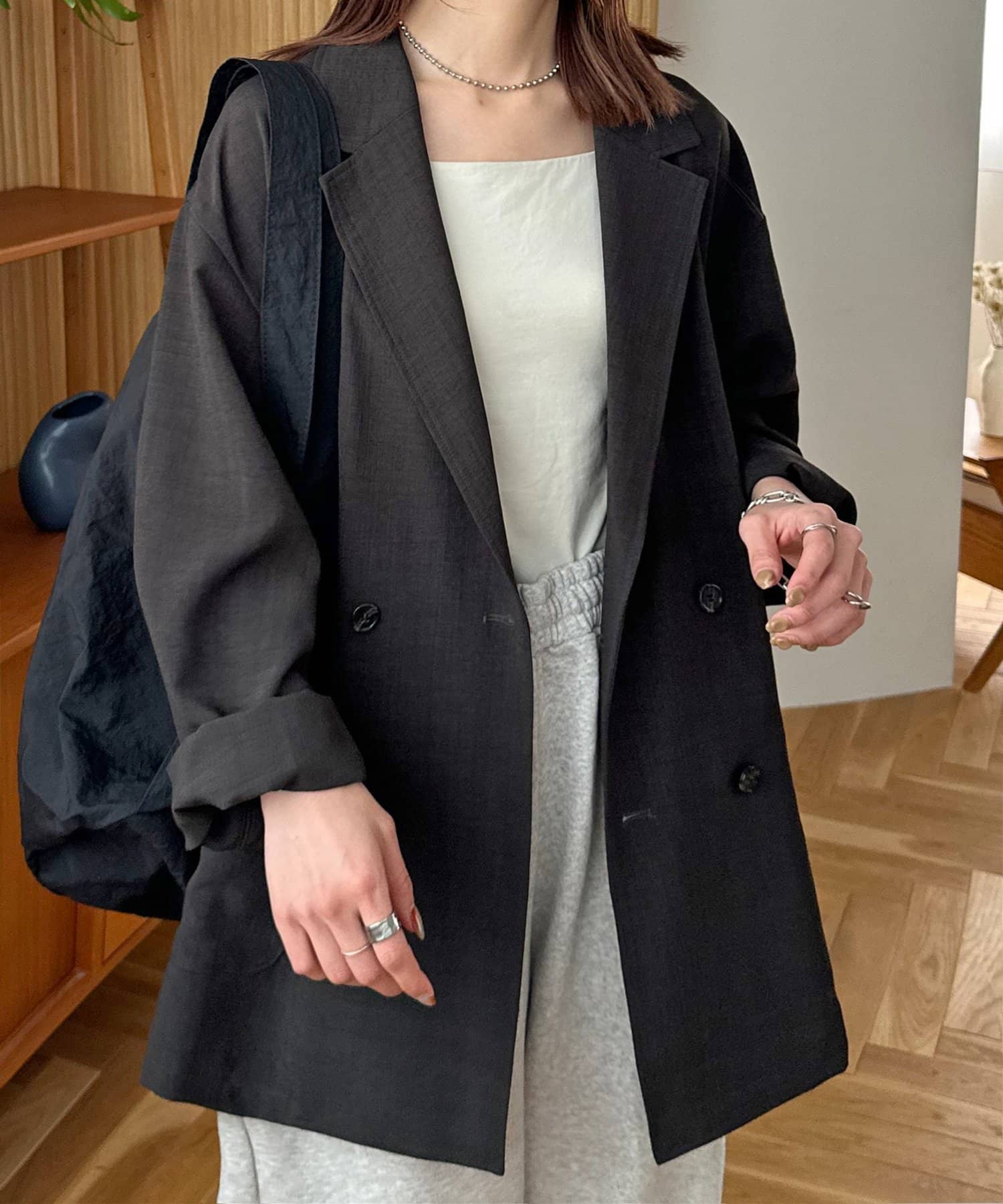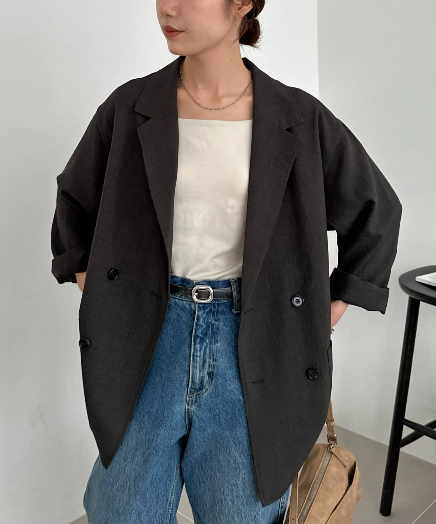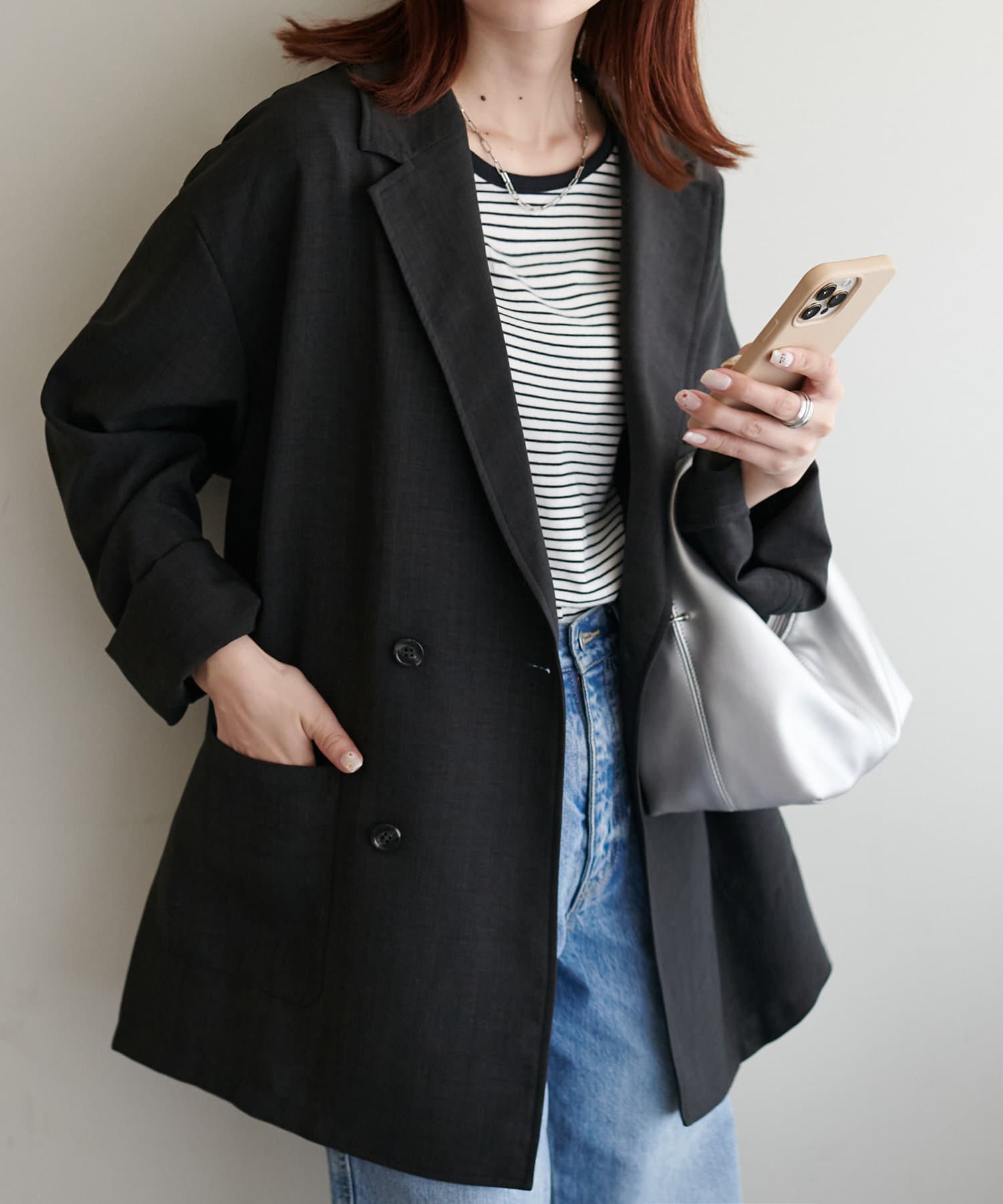 軽くてシワになりにくくてカジュアルにも綺麗めにもできるジャケットだと思います。