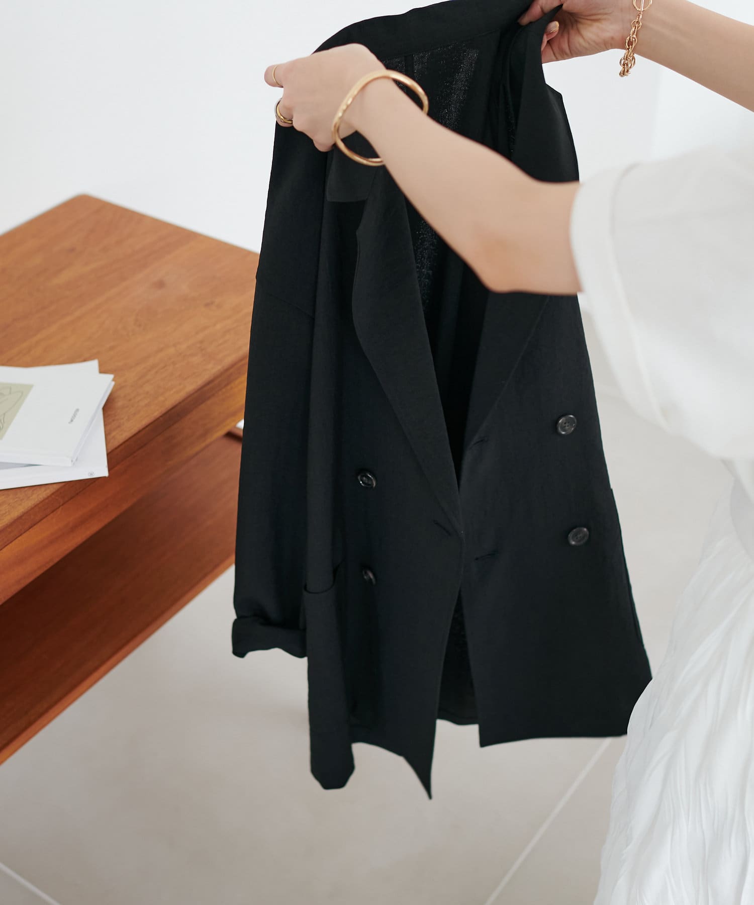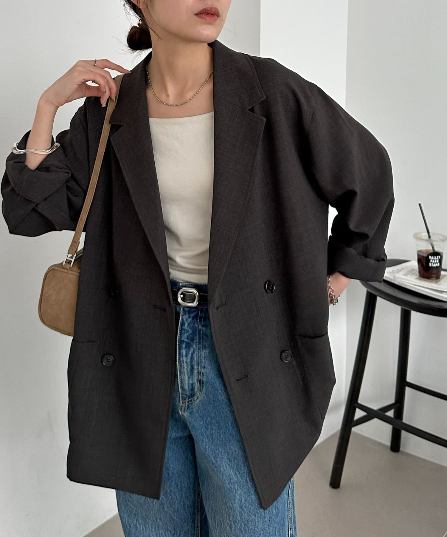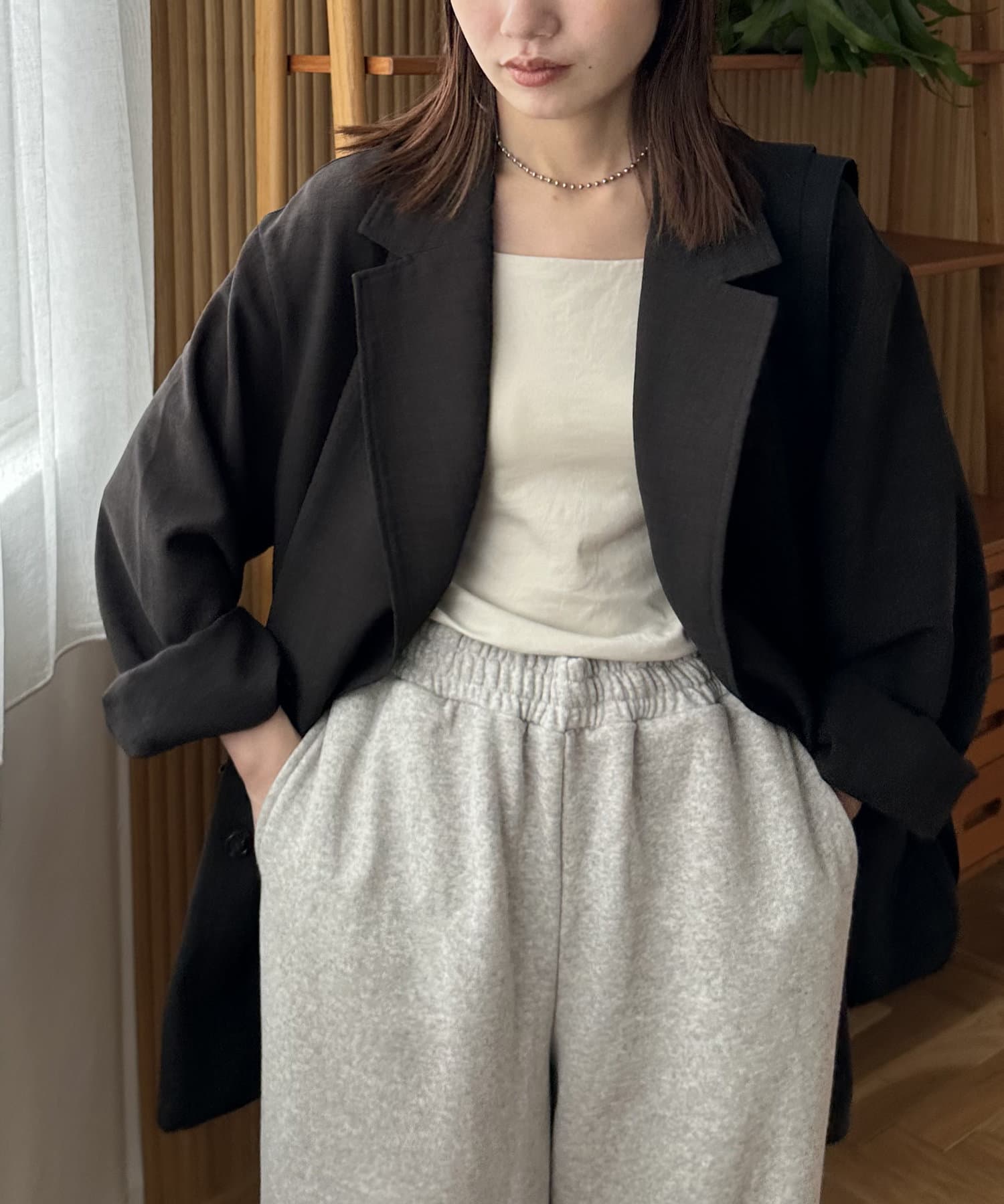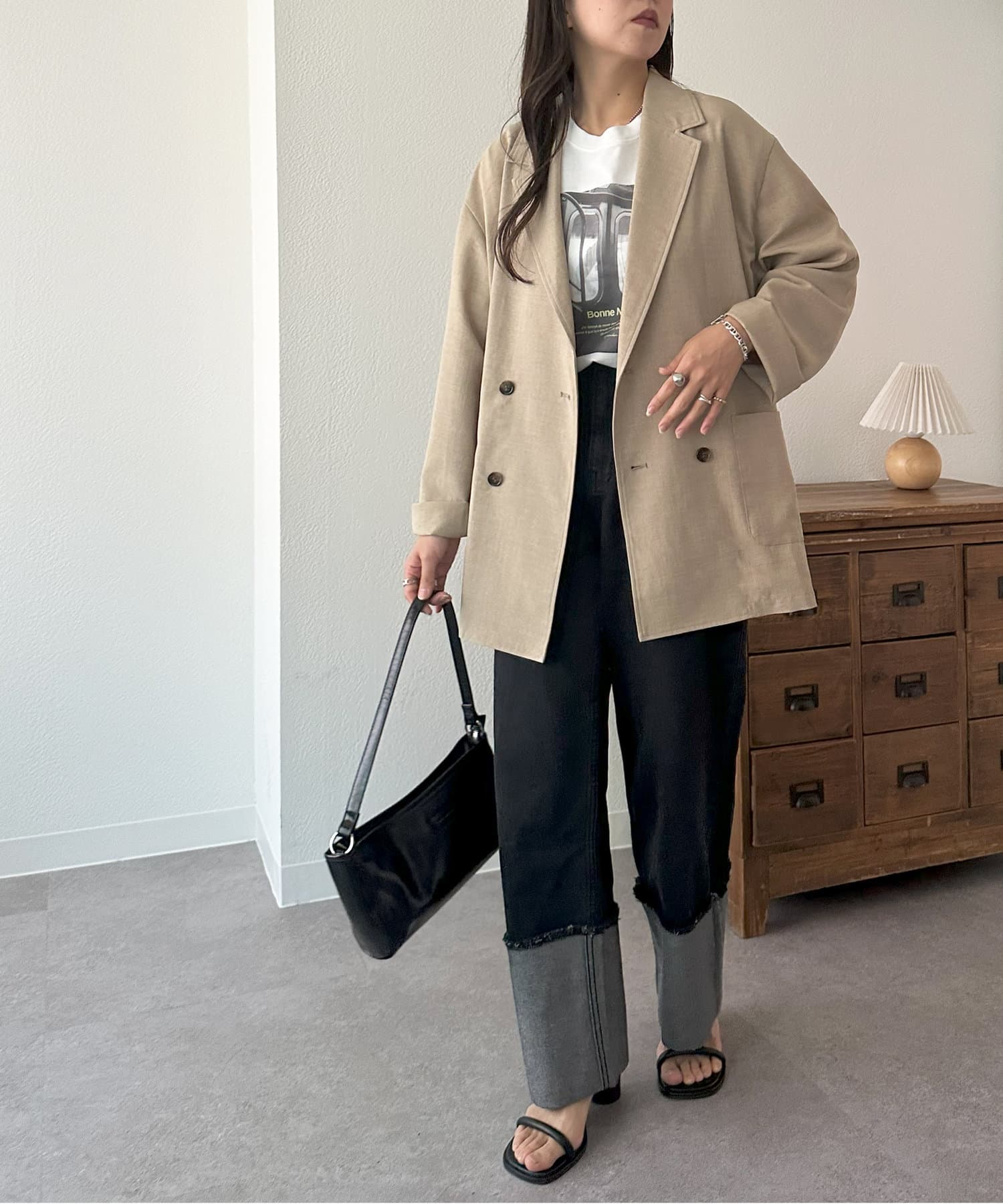 軽くてシワになりにくくてカジュアルにも綺麗めにもできるジャケットだと思います。