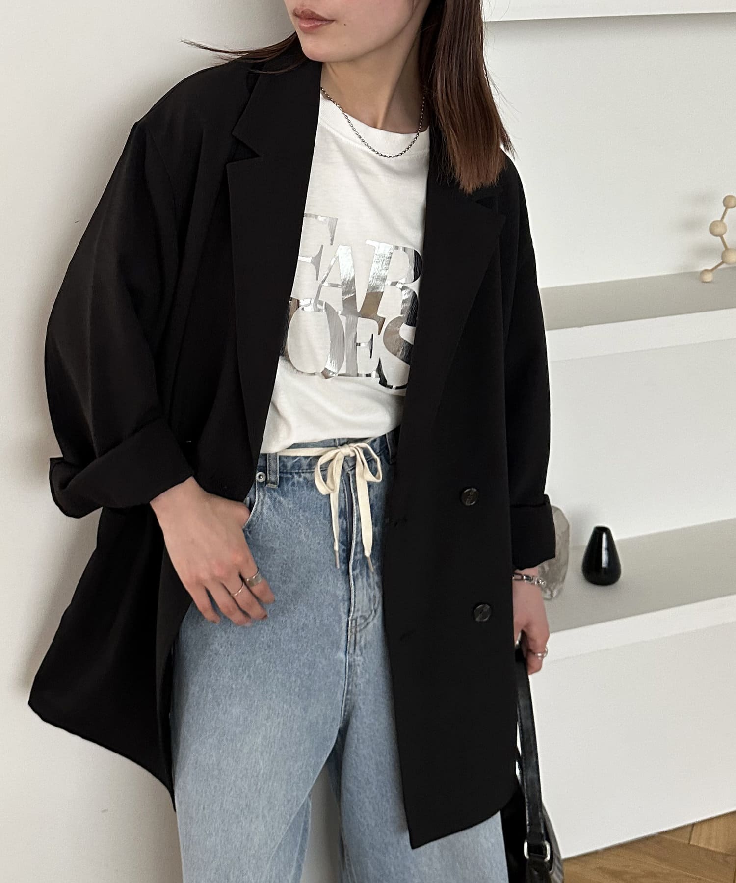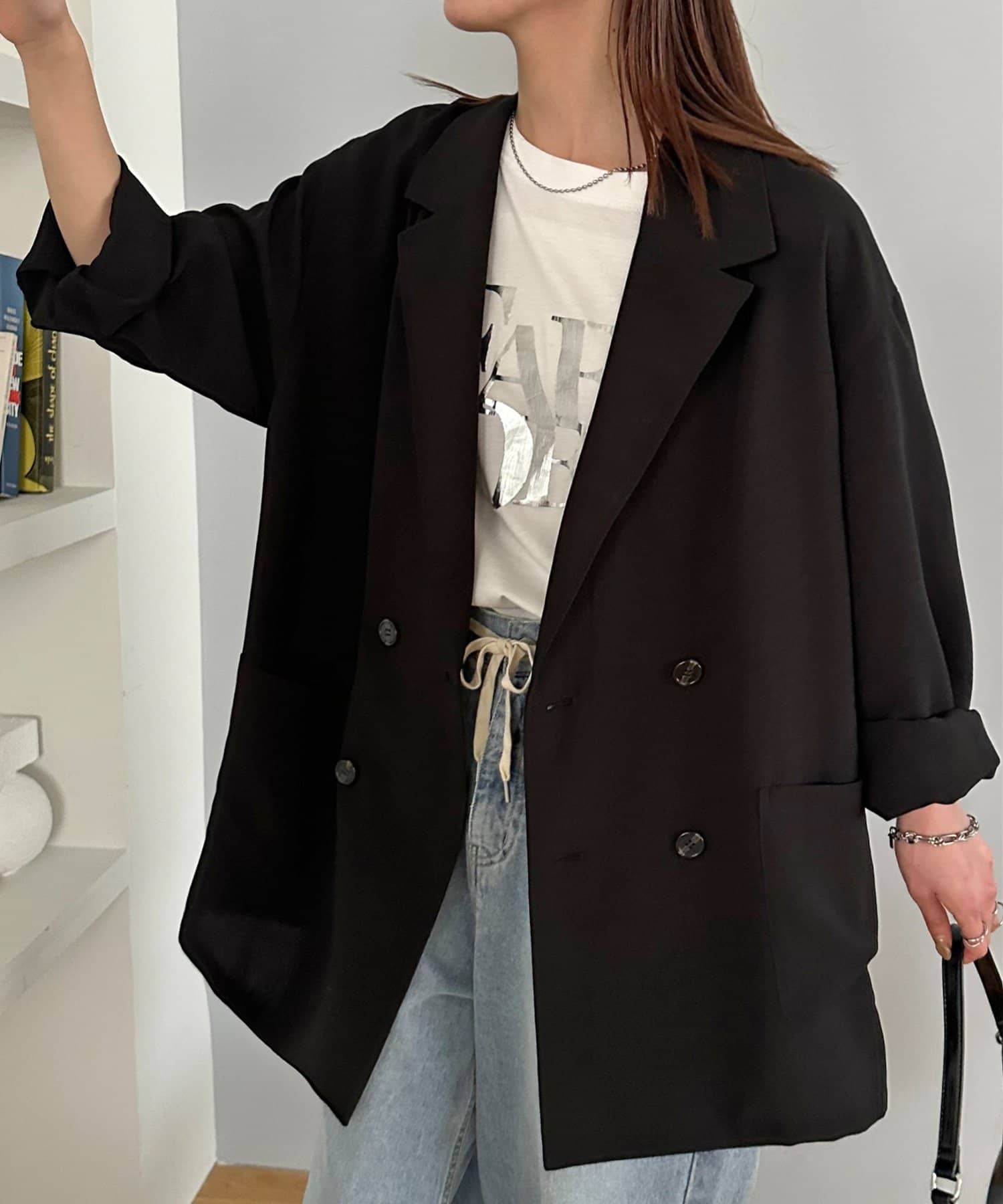 ジャケットはカチッとしすぎてしまいあまり似合わなかったのでパーカー等にしようかなぁと思っていましたが、こちらはユニセックスのため大きめですし、サラッとした素材なのでオチ感があり素敵に着れました!