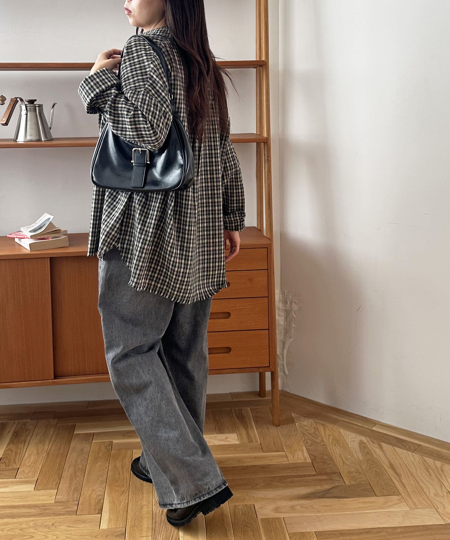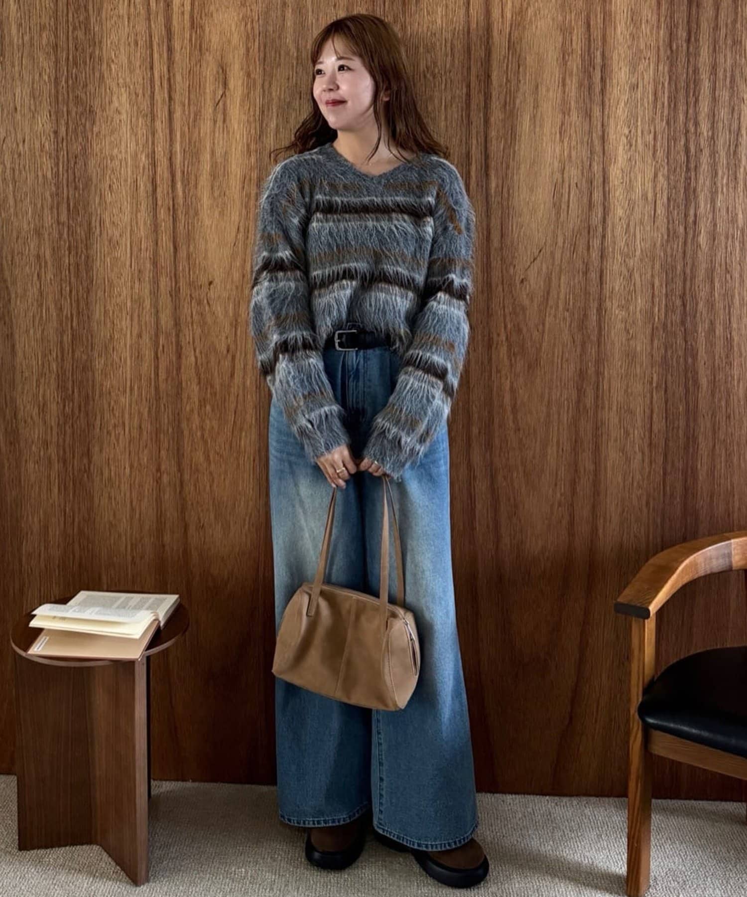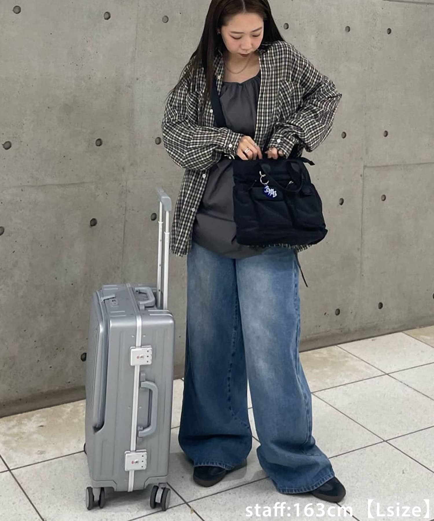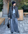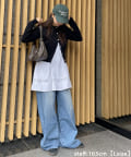 157cmスタッフ(Mサイズ着用):長めの着丈なのでブーツや少し高めのスニーカー合わせがおすすめ!甘めなブラウスと合わせてカジュアルダウンさせた着こなしも可愛い♡