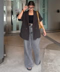 162cmスタッフ(Mサイズ着用):腰回りがかなりゆったりしているのでストレスなく着用できるのも嬉しいです!タックが入っていることで綺麗なシルエットで美脚効果も◎
