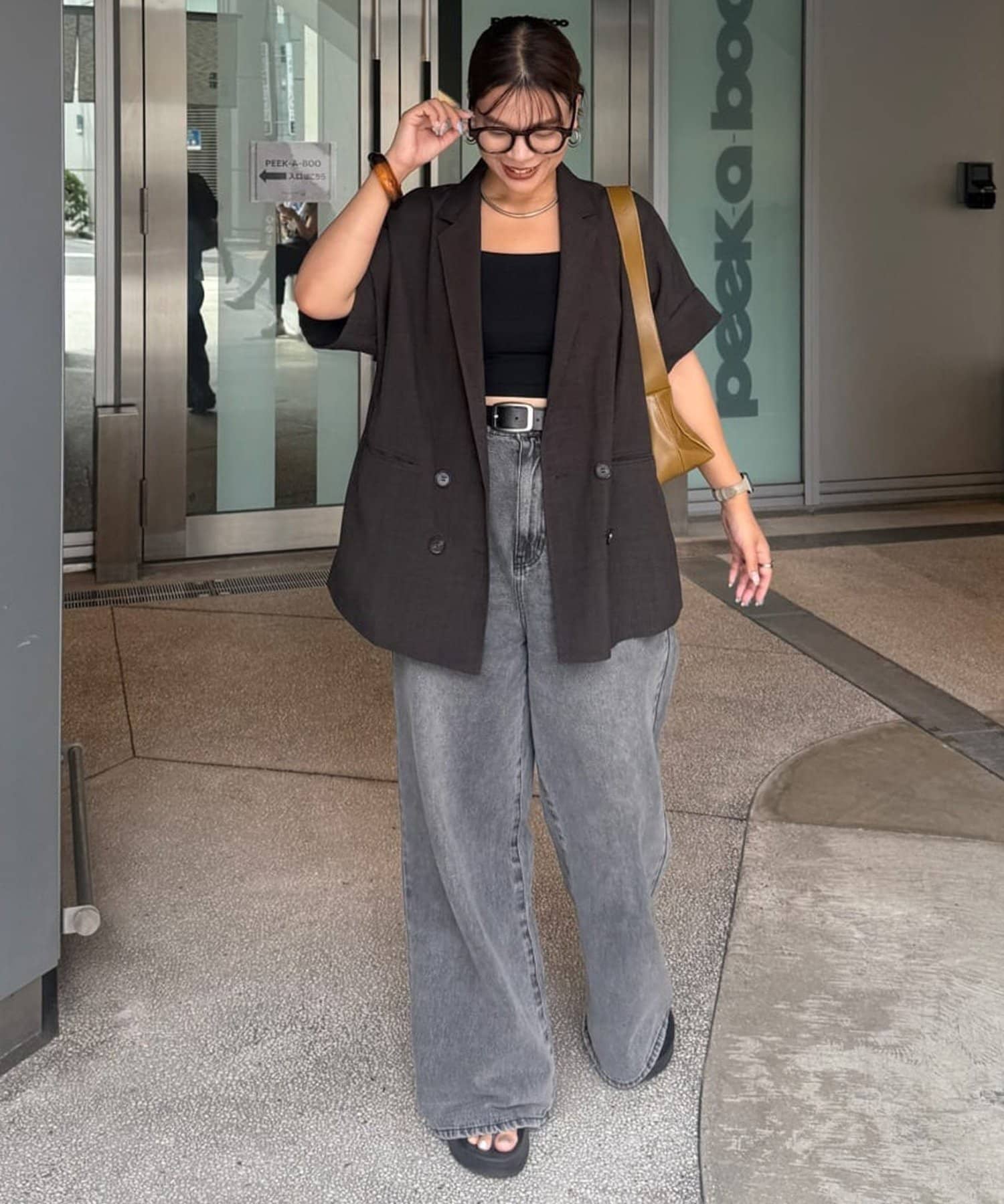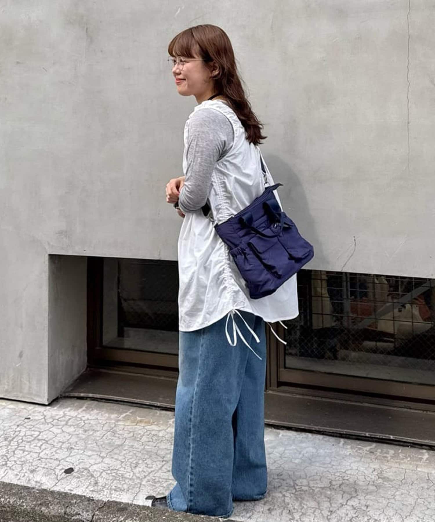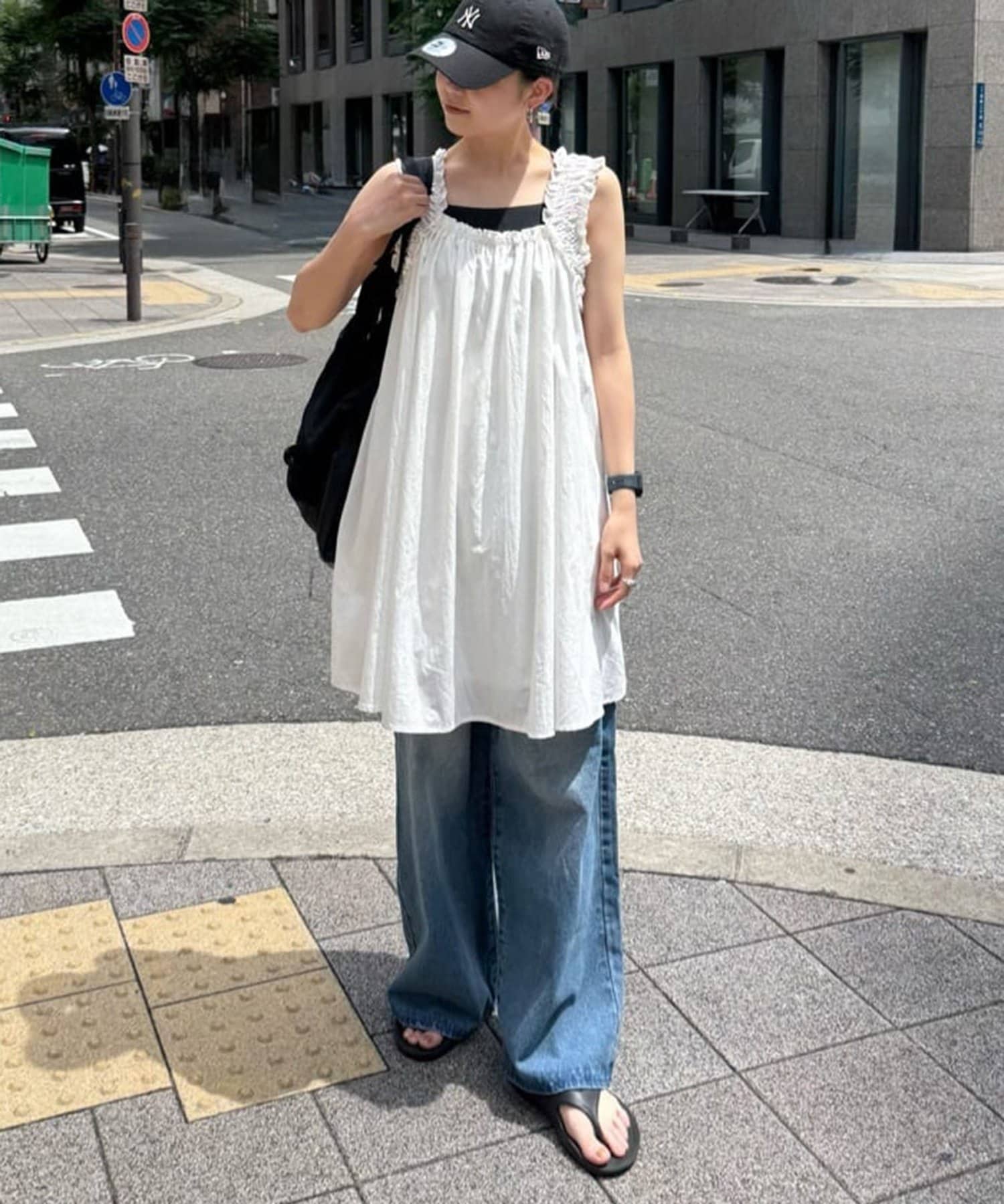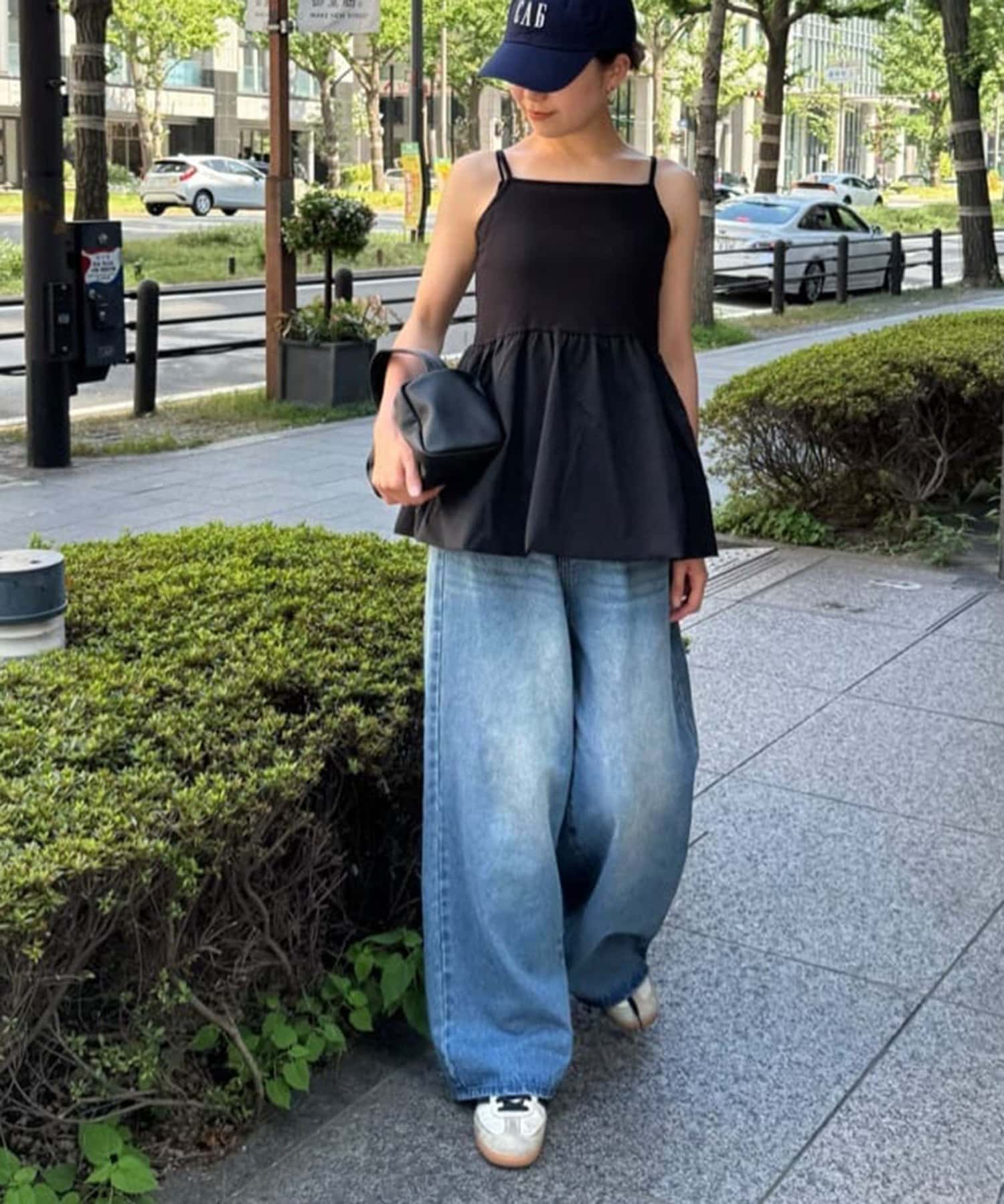 シャツやロゴTに合わせたカジュアルコーデや、ブラウスやトレンド感のあるキャミチュニック合わせも◎様々なテイストのコーディネートに活躍します。ボリューム感のあるシルエットを活かしてトップスはコンパクトにまとめるとバランスが良く、スタイルアップが叶います◎