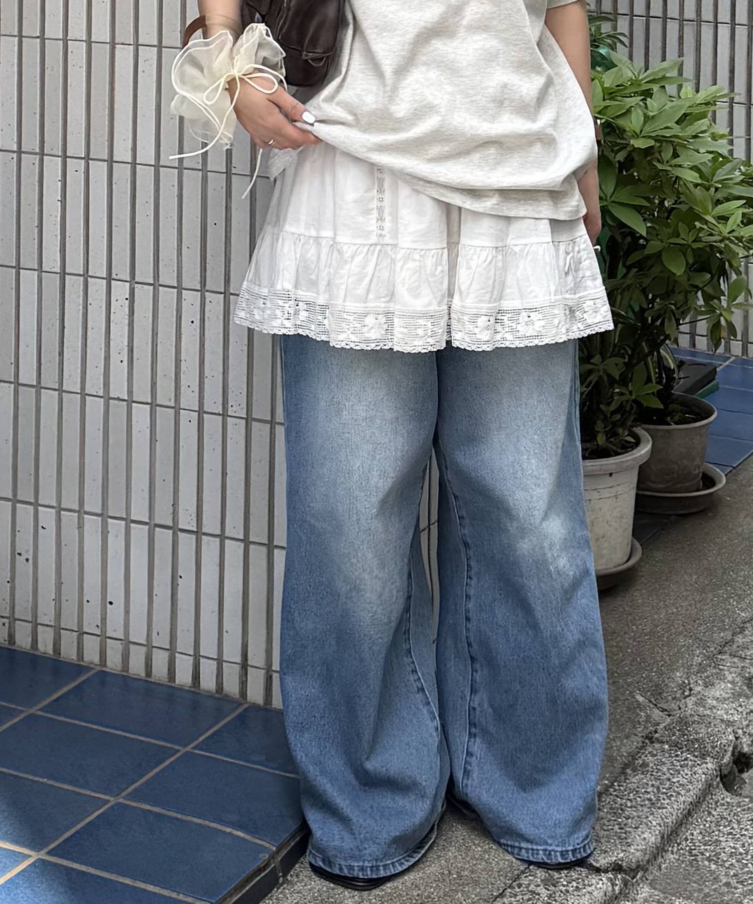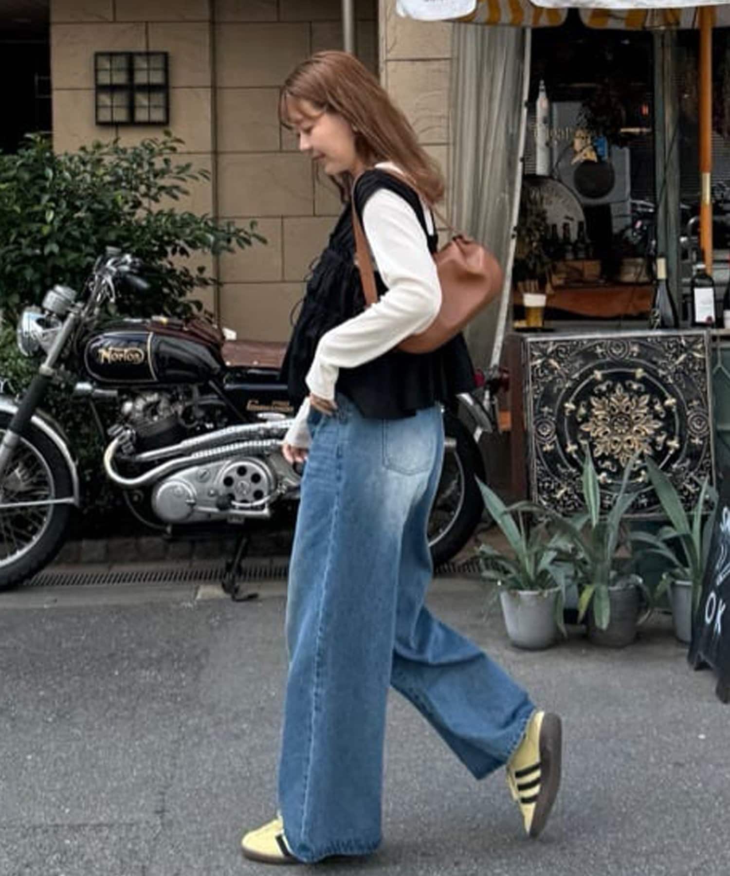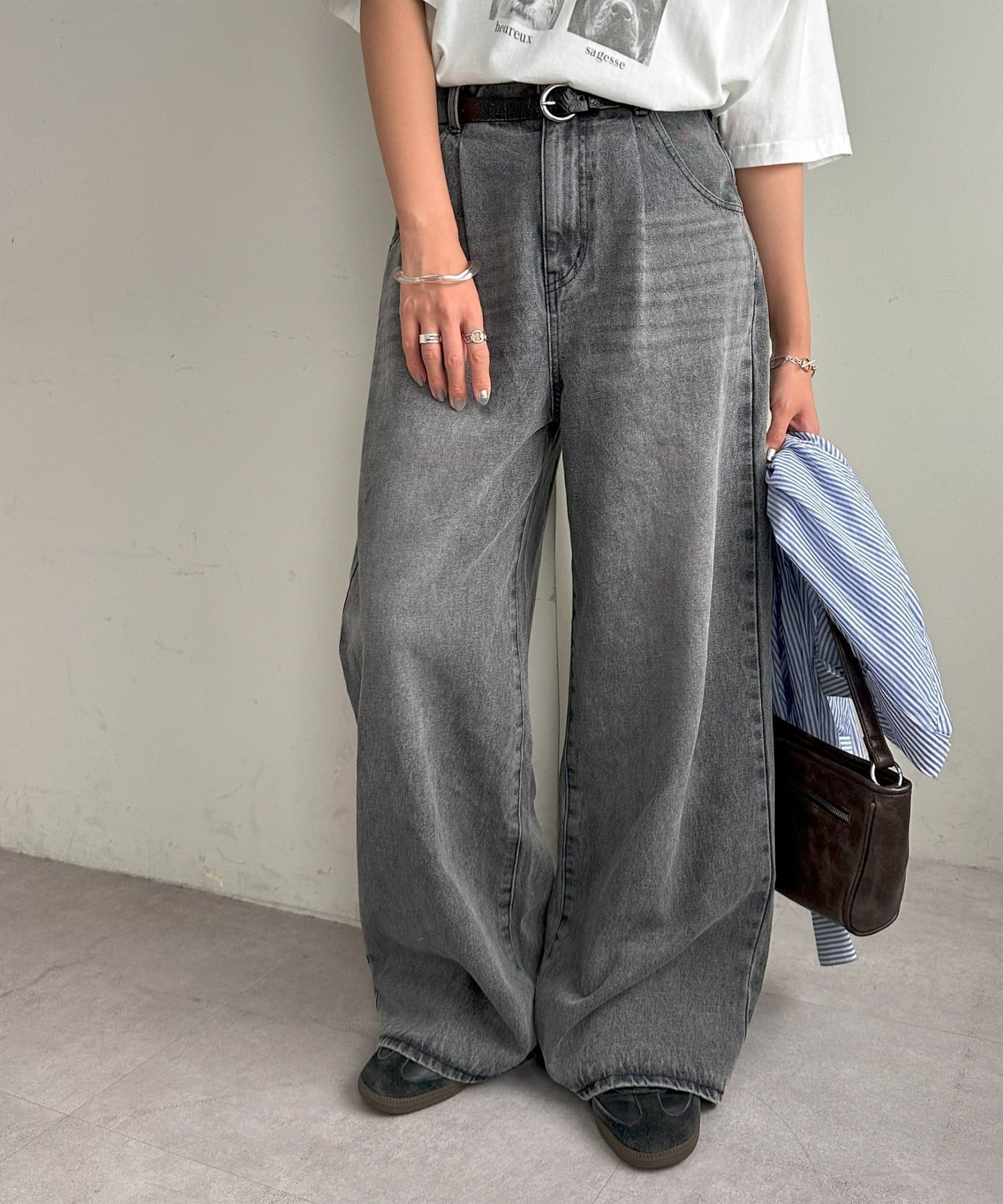綺麗なシルエットでどんなスタイルにもマッチするワイドデニムパンツ