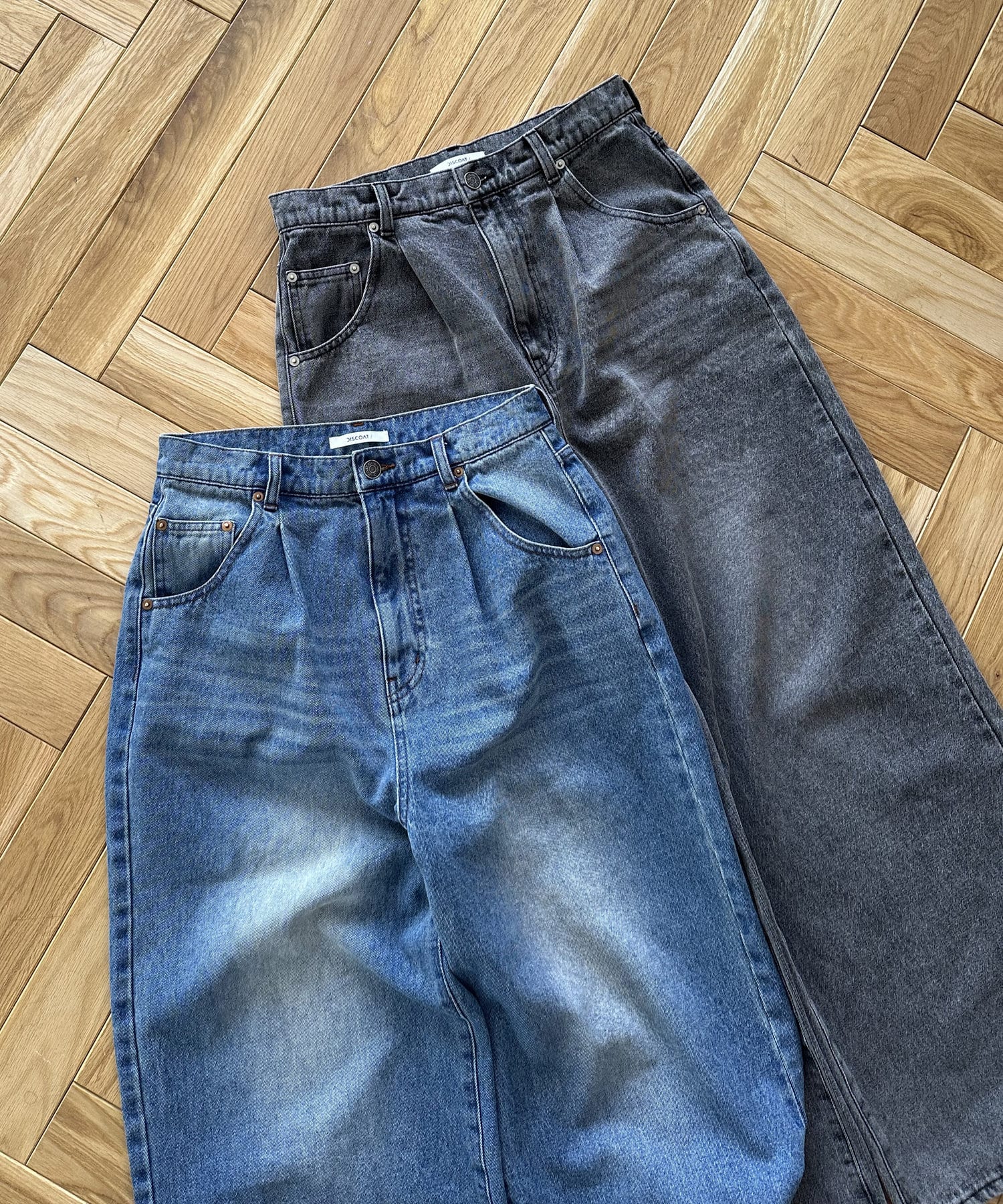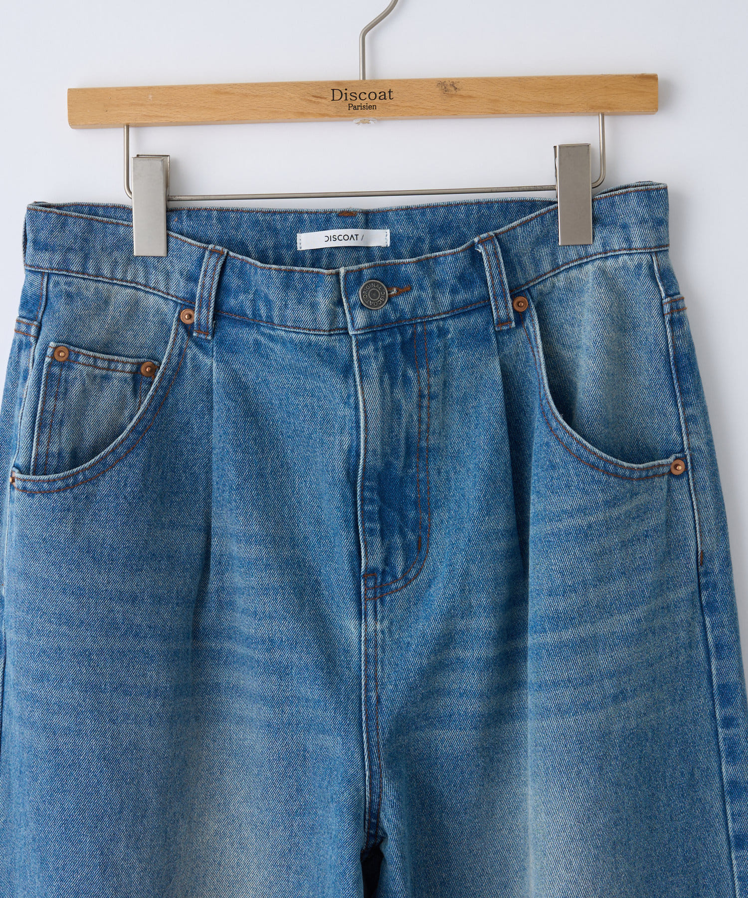【サイズ追加!/ユニセックス】デニムタックワイドパンツ