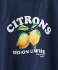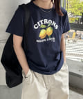 フロントに大きくプリントされたレモンのグラフィックが目を惹くTシャツ。