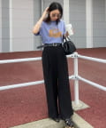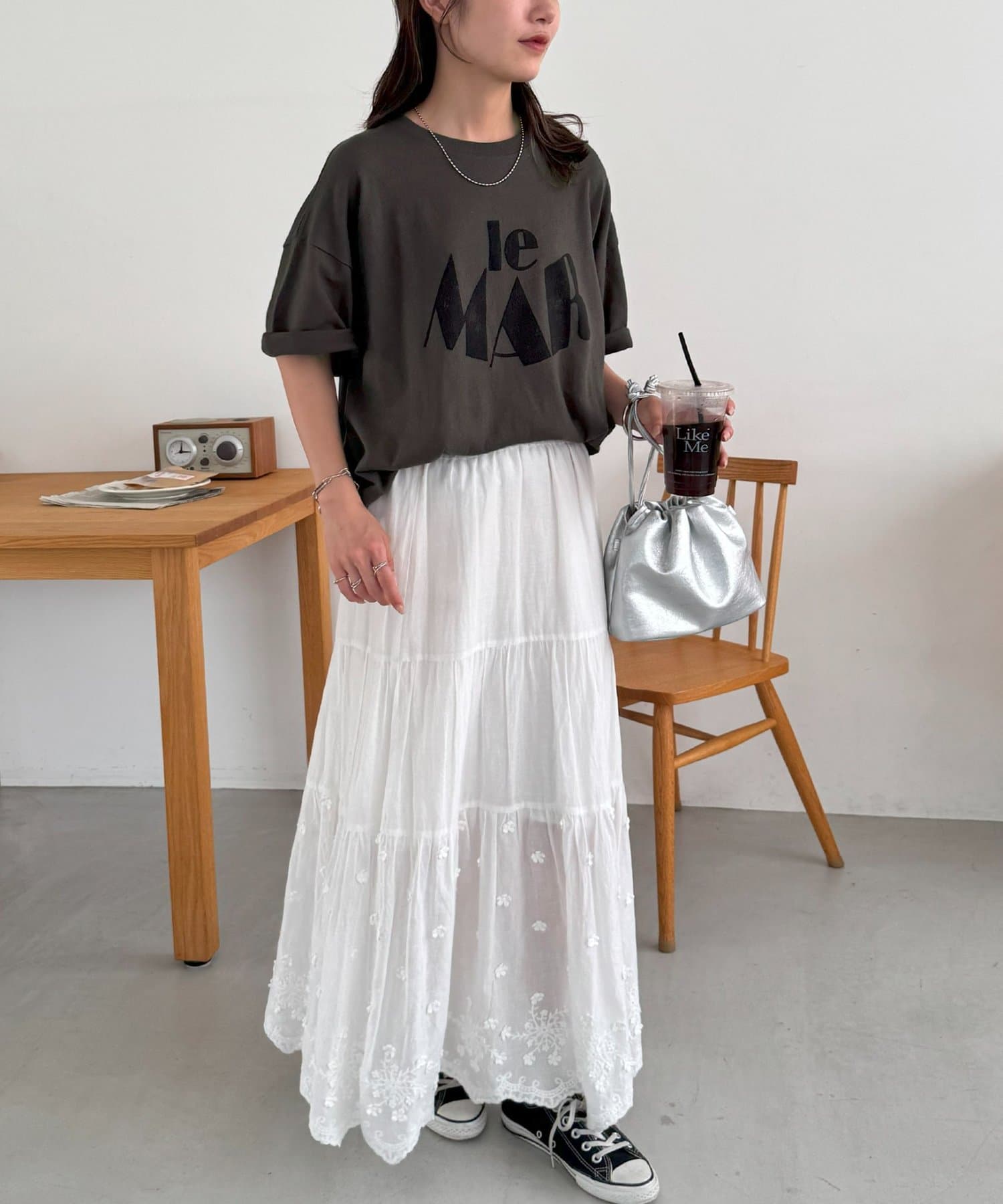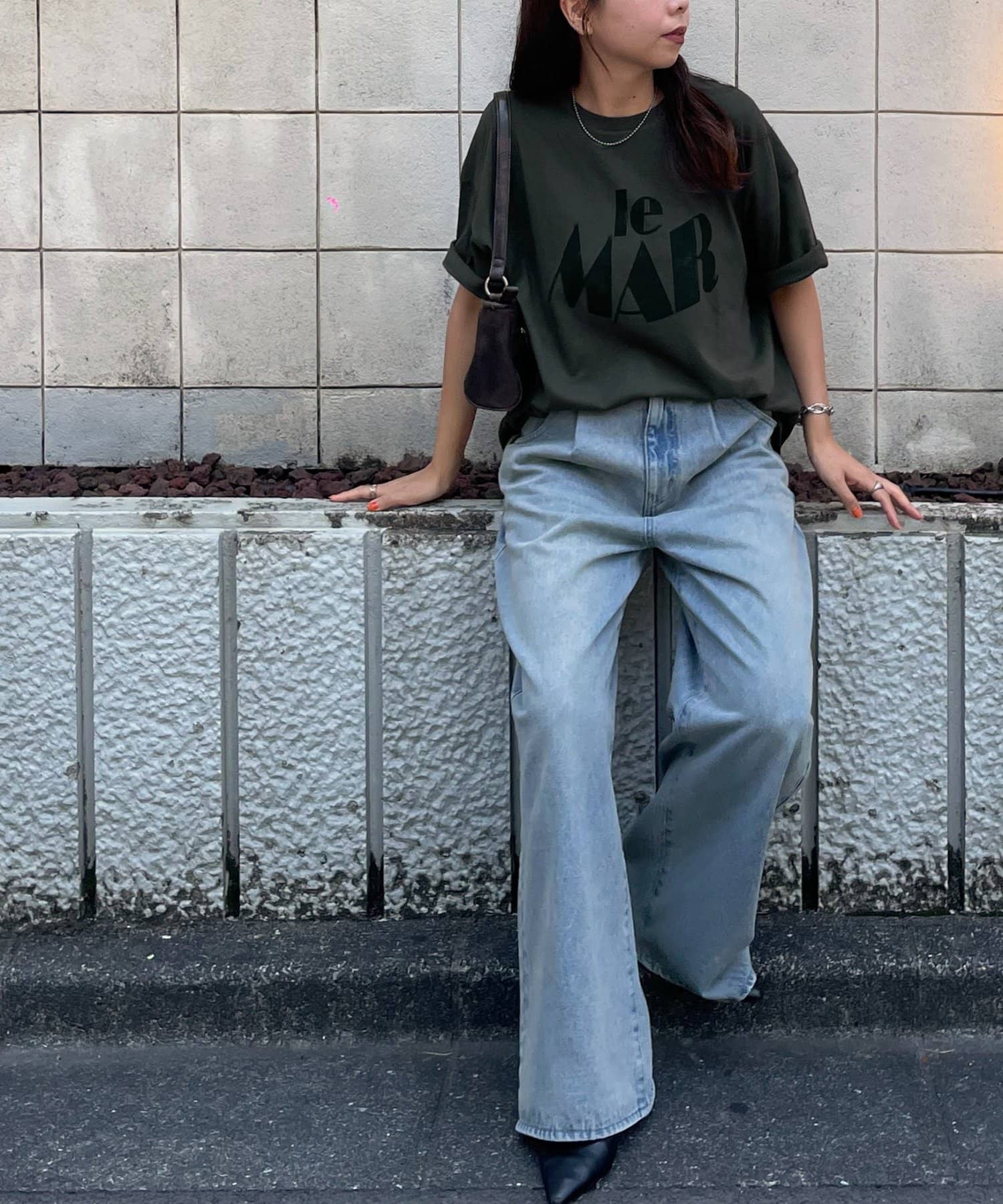 シンプルなデニムパンツと合わせるだけでコーデが決まります。ゆるめのストレートジーンズやワイドパンツと合わせて、抜け感を出すのもおすすめ。スラックスやカーゴパンツと合わせると、モード感のある大人っぽい印象に。フェミニンなフレアスカートやティアードスカート合わせも◎