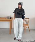 163cmレディーススタッフ(Mサイズ着用):全体的に程よくゆとりがあり、リラックス感のある着心地。ヒップまですっぽり隠れる着丈で体型カバーにも◎