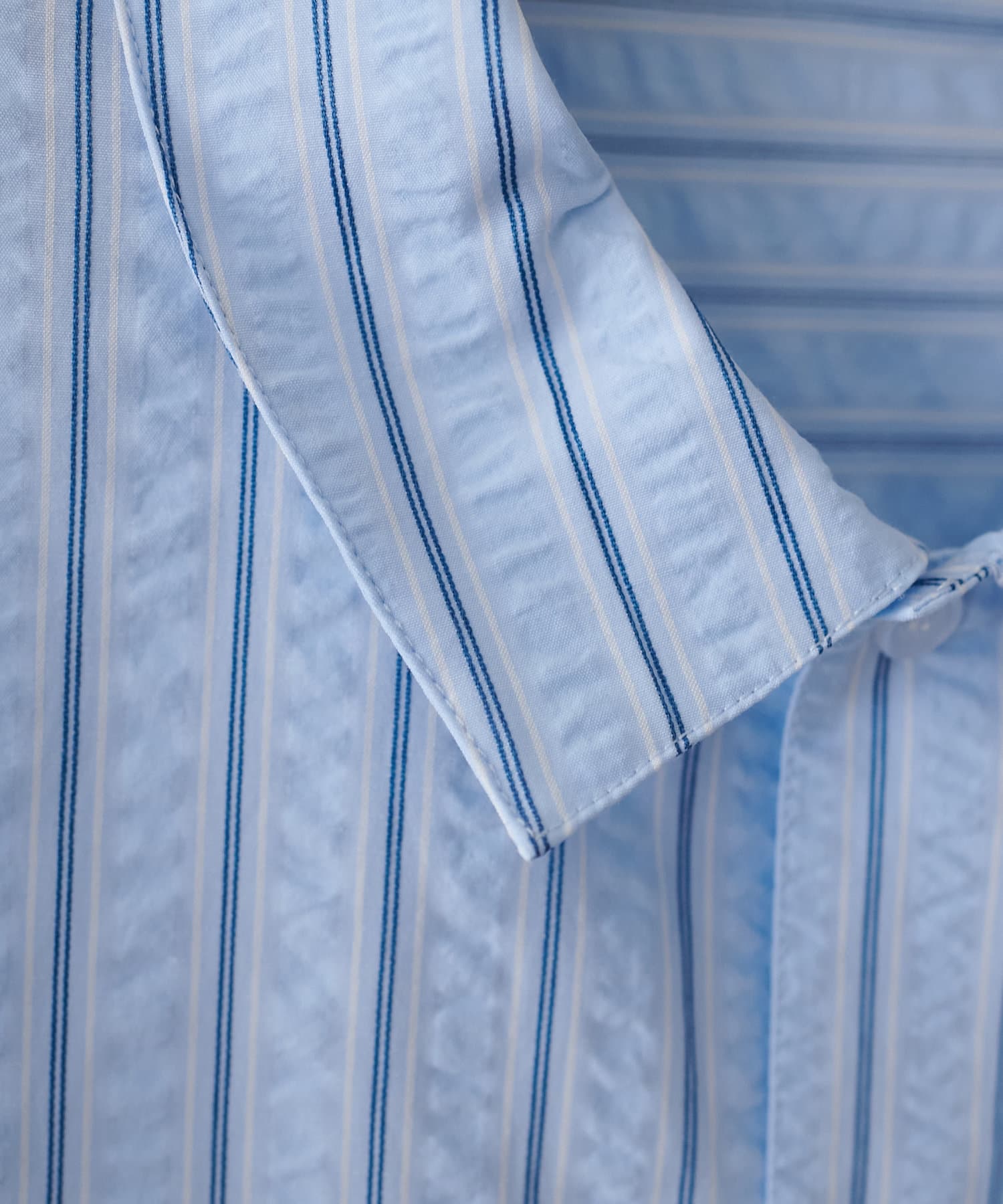 ナチュラルなストライプ柄と凹凸感のあるサッカー生地が、爽やかで涼しげな印象を与えてくれます。