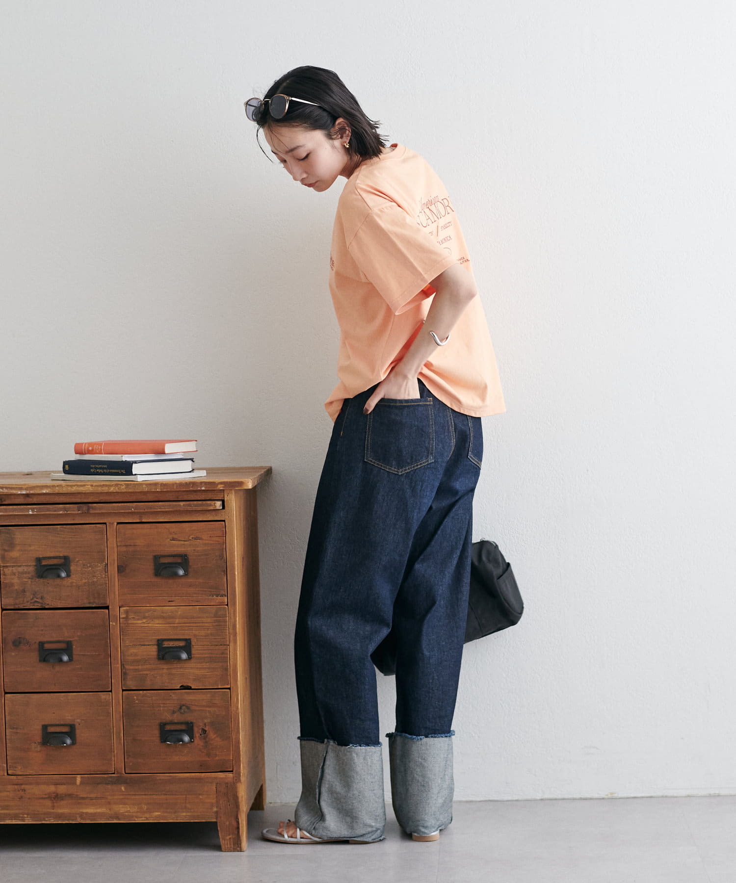 サイズ感が大きい場合は、袖をロールアップするとよりこなれ感のあるスタイリングに◎