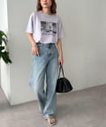 ライトデニムクラッシュワイドパンツ