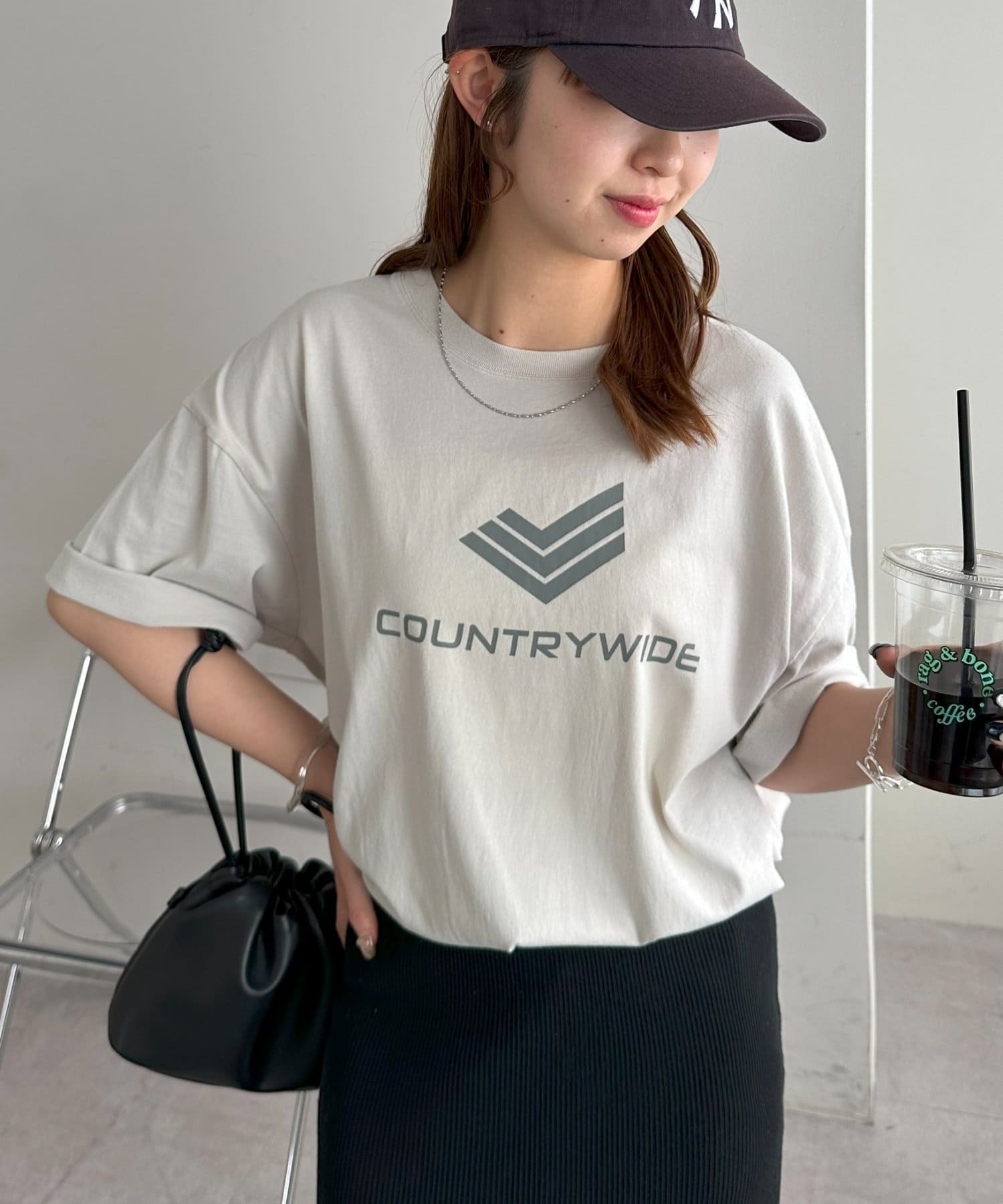 TOP > OUTLET > レディース > トップス > Tシャツ/カットソー > 【Discoat】スプレー加工コーポレートグラフィックTシャツ