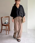 ワイドなスラックスパンツと合わせたきれいめな着こなしや、デニムパンツやチノパンツと合わせたカジュアルな着こなしがおすすめ◎