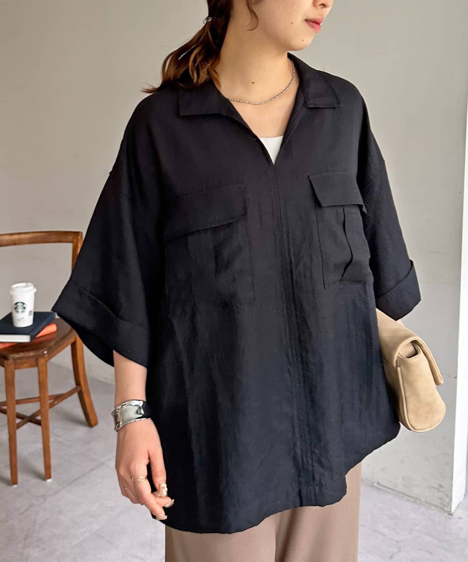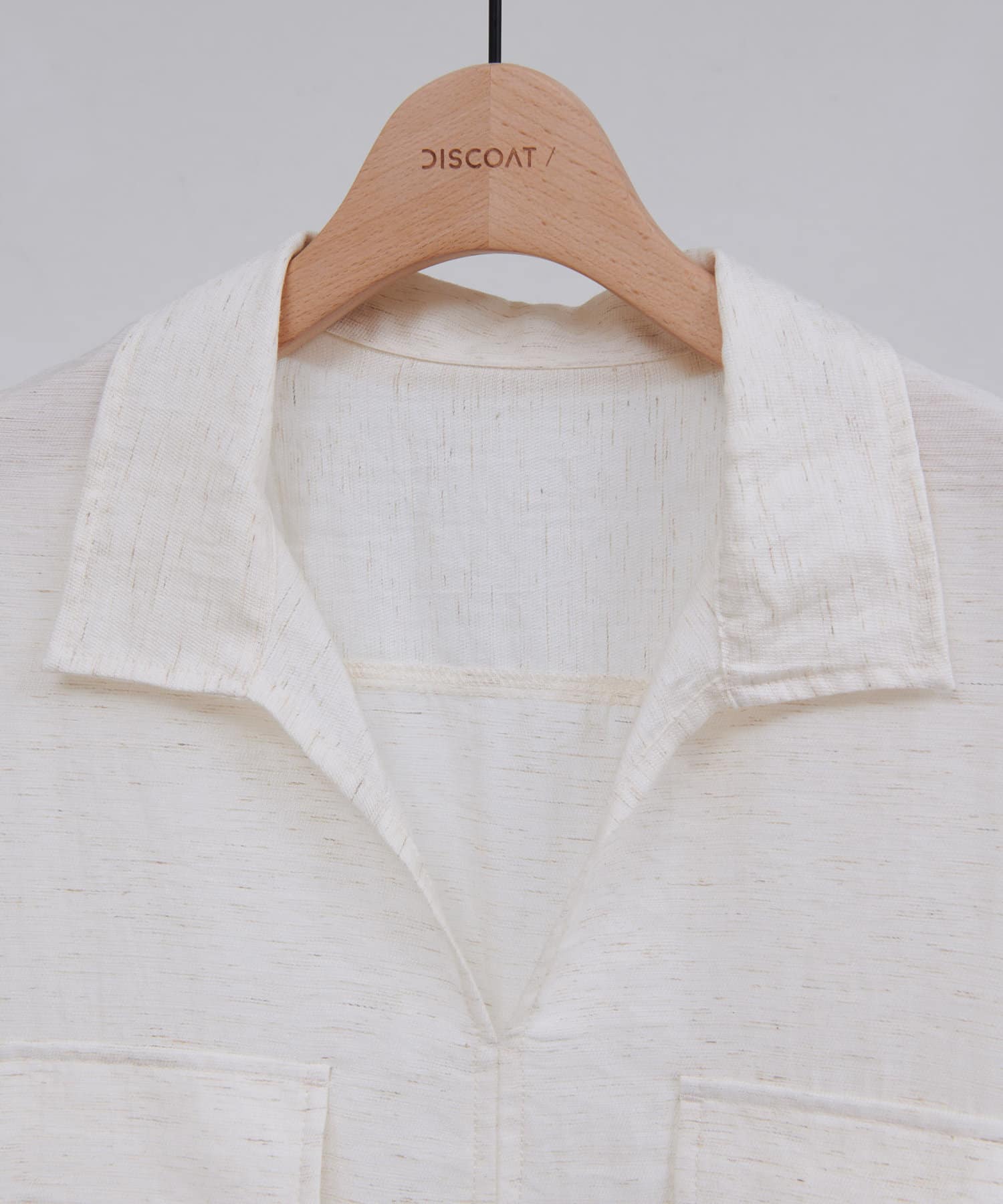 首元は抜け感のあるスキッパーデザインで、顔まわりをすっきり見せながらも大人の抜け感を演出。