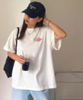 ロゴとグラフィックには発泡プリントを使用し、表面がふっくらと浮き上がるような立体感のある仕上がりに。この立体的な表情が、Tシャツ全体にアクセントを加え、より一層グラフィックの存在感を引き立てます。