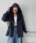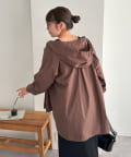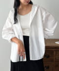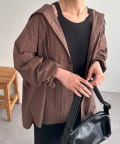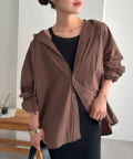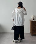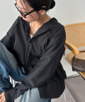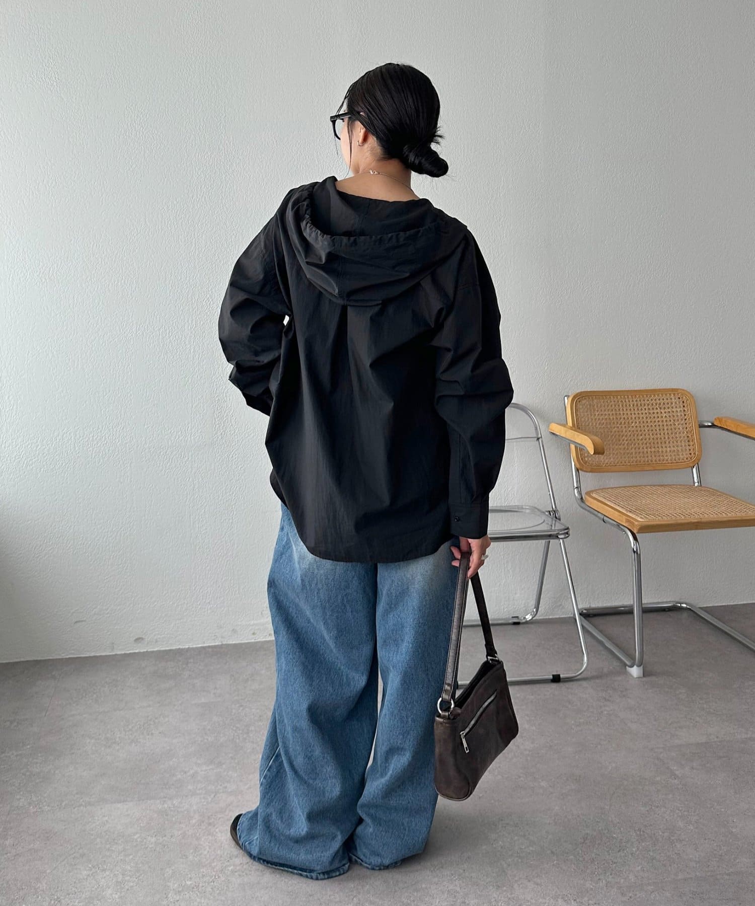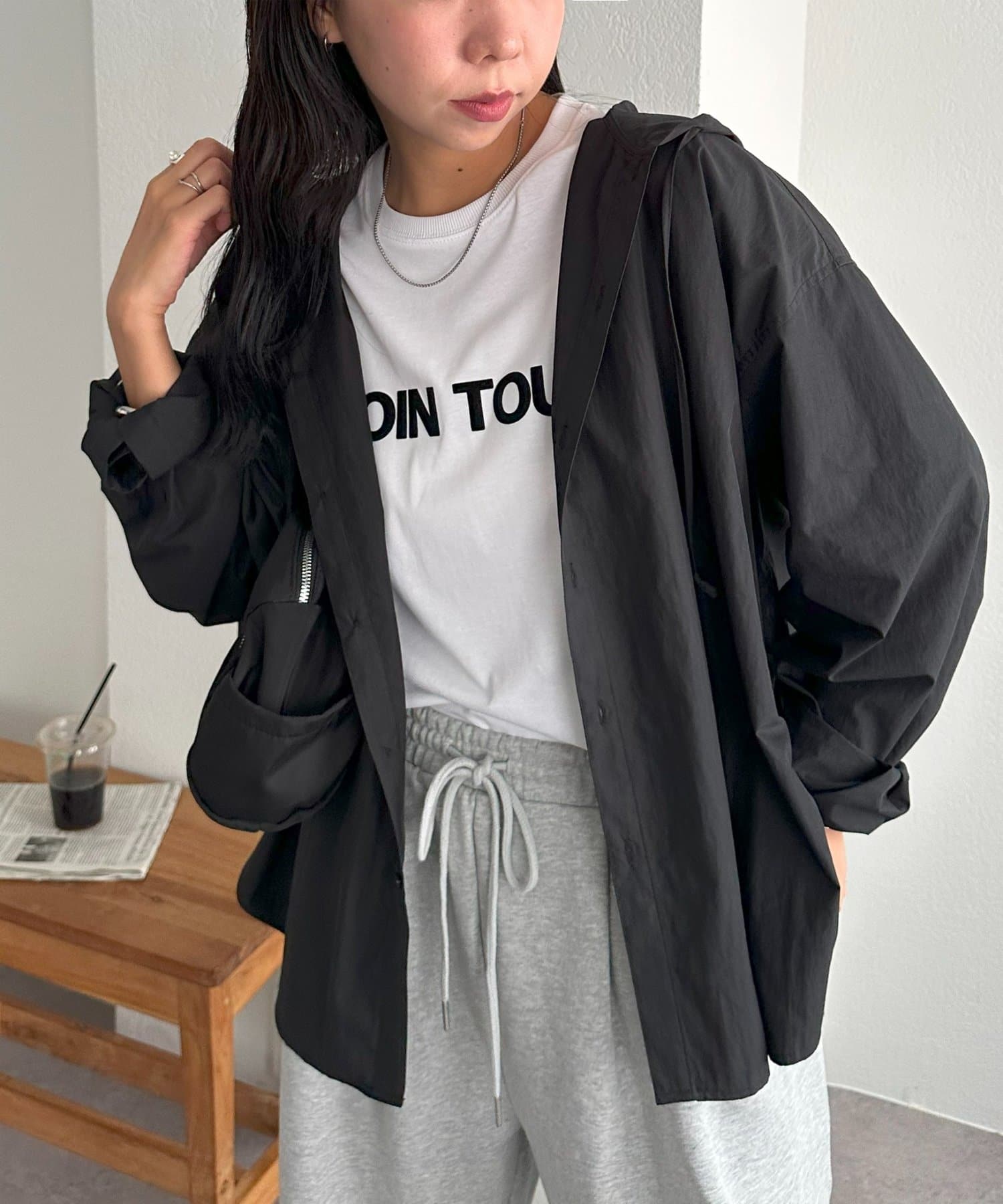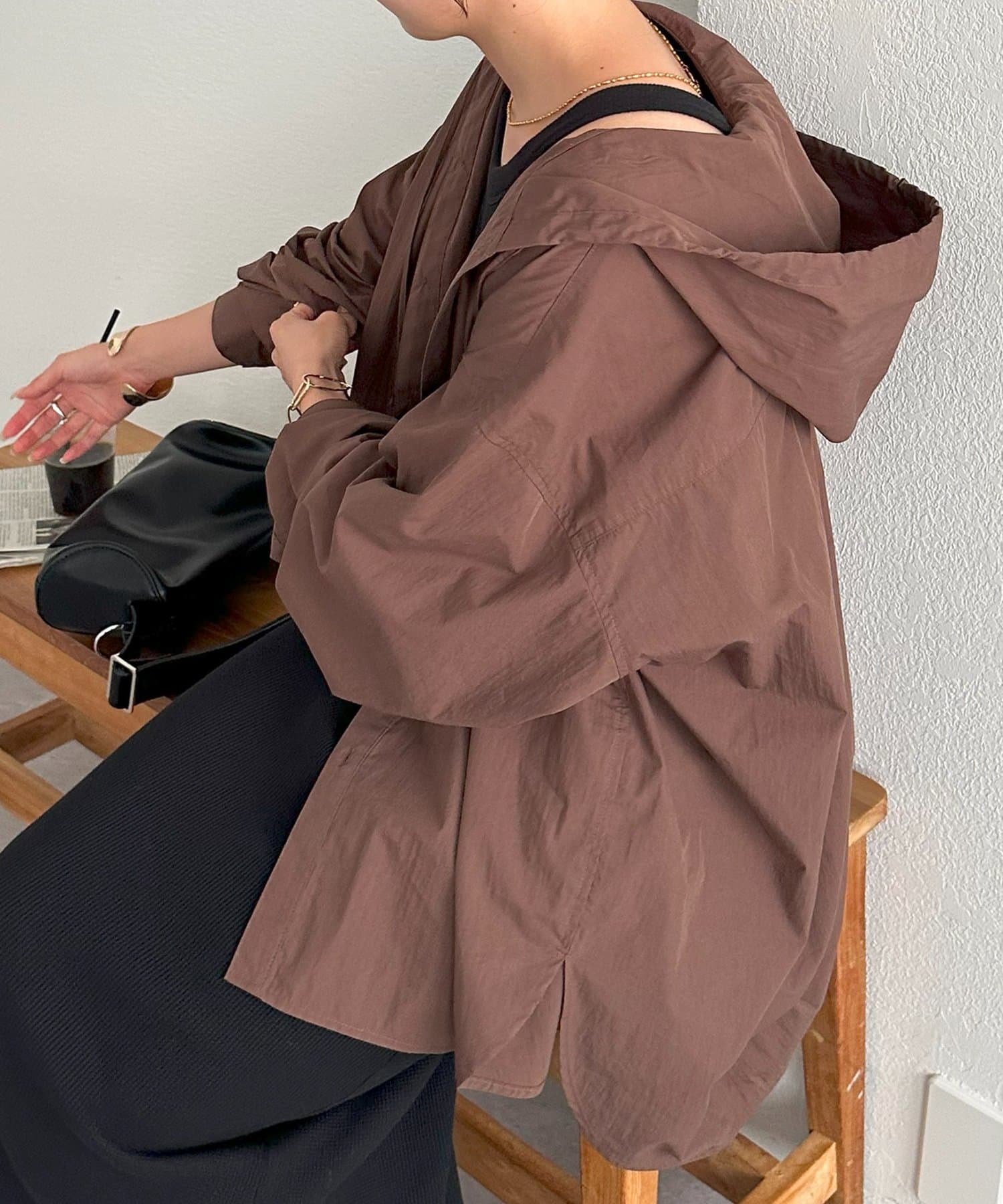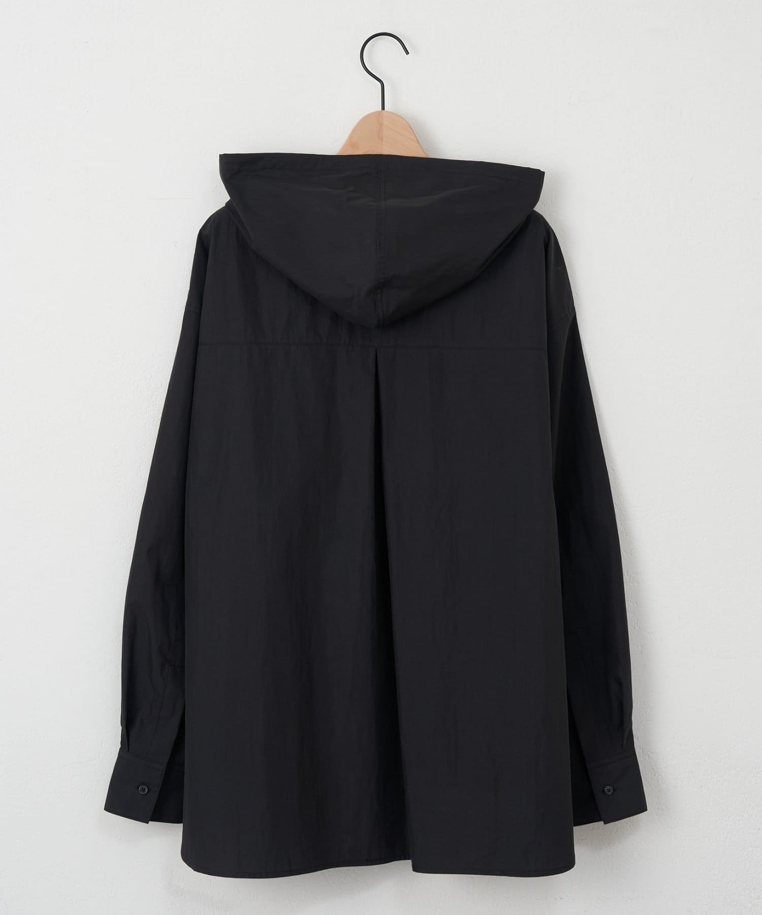 程よい抜け感を演出できる、オーバーシルエットのフード付きシャツ。