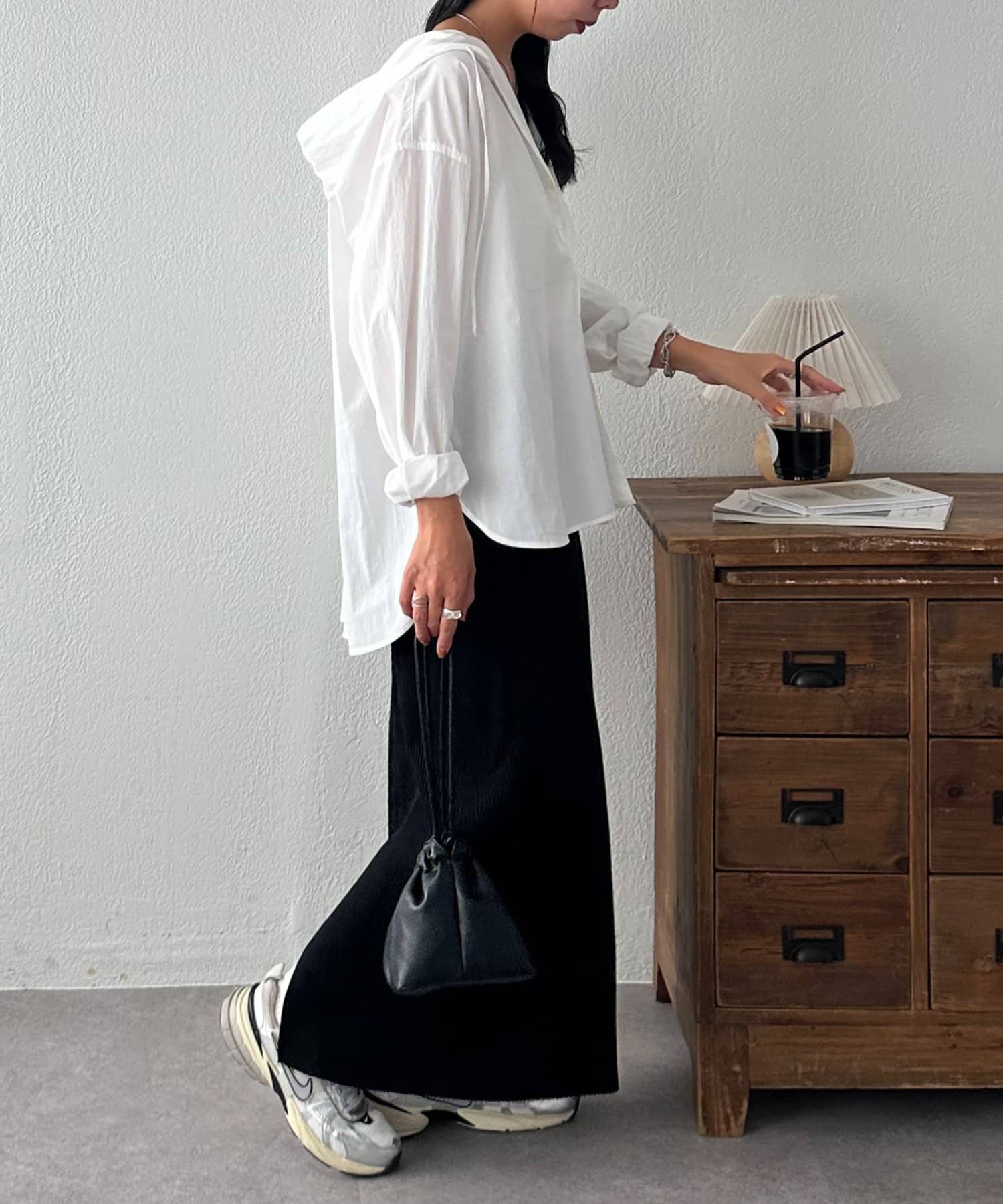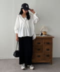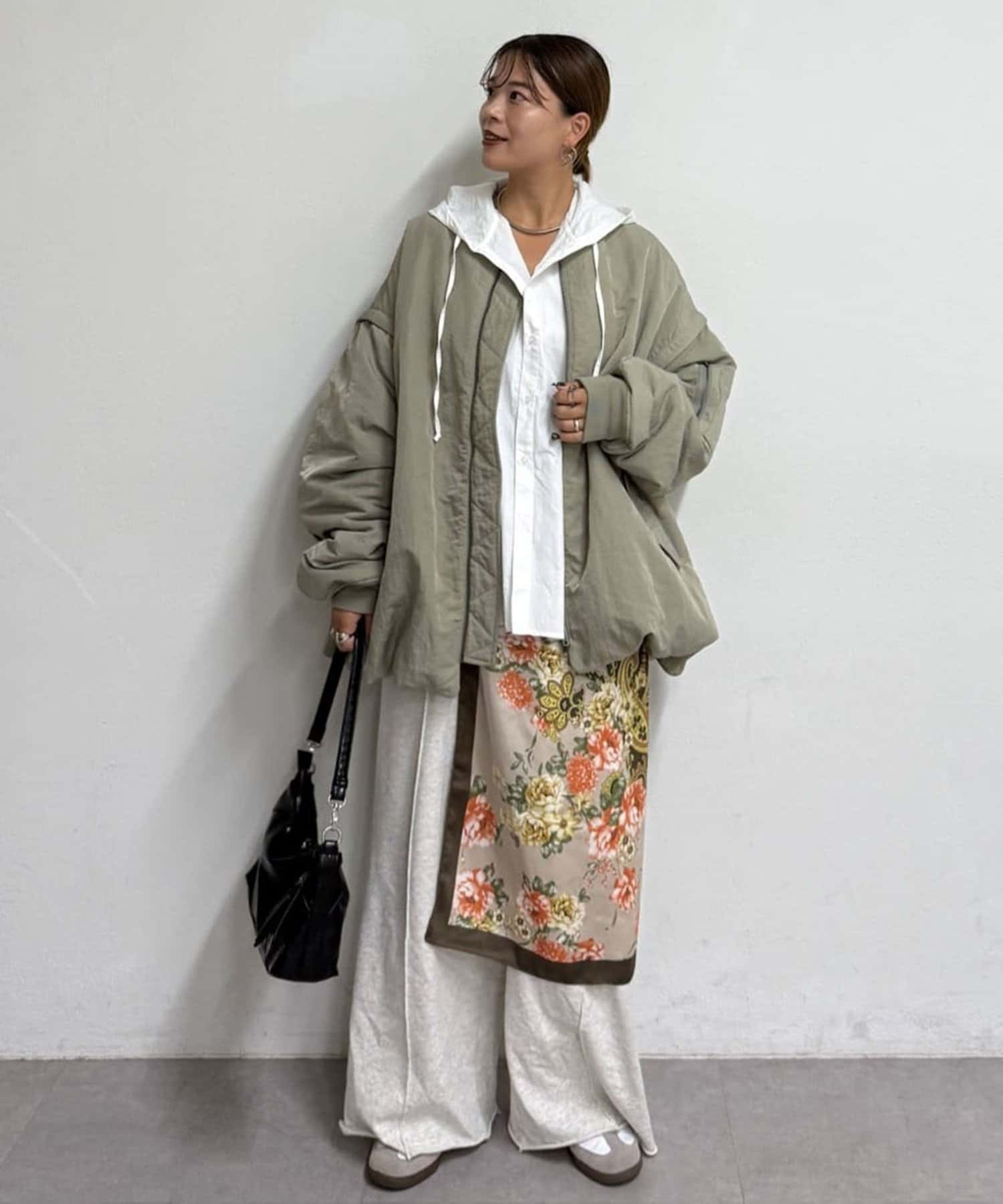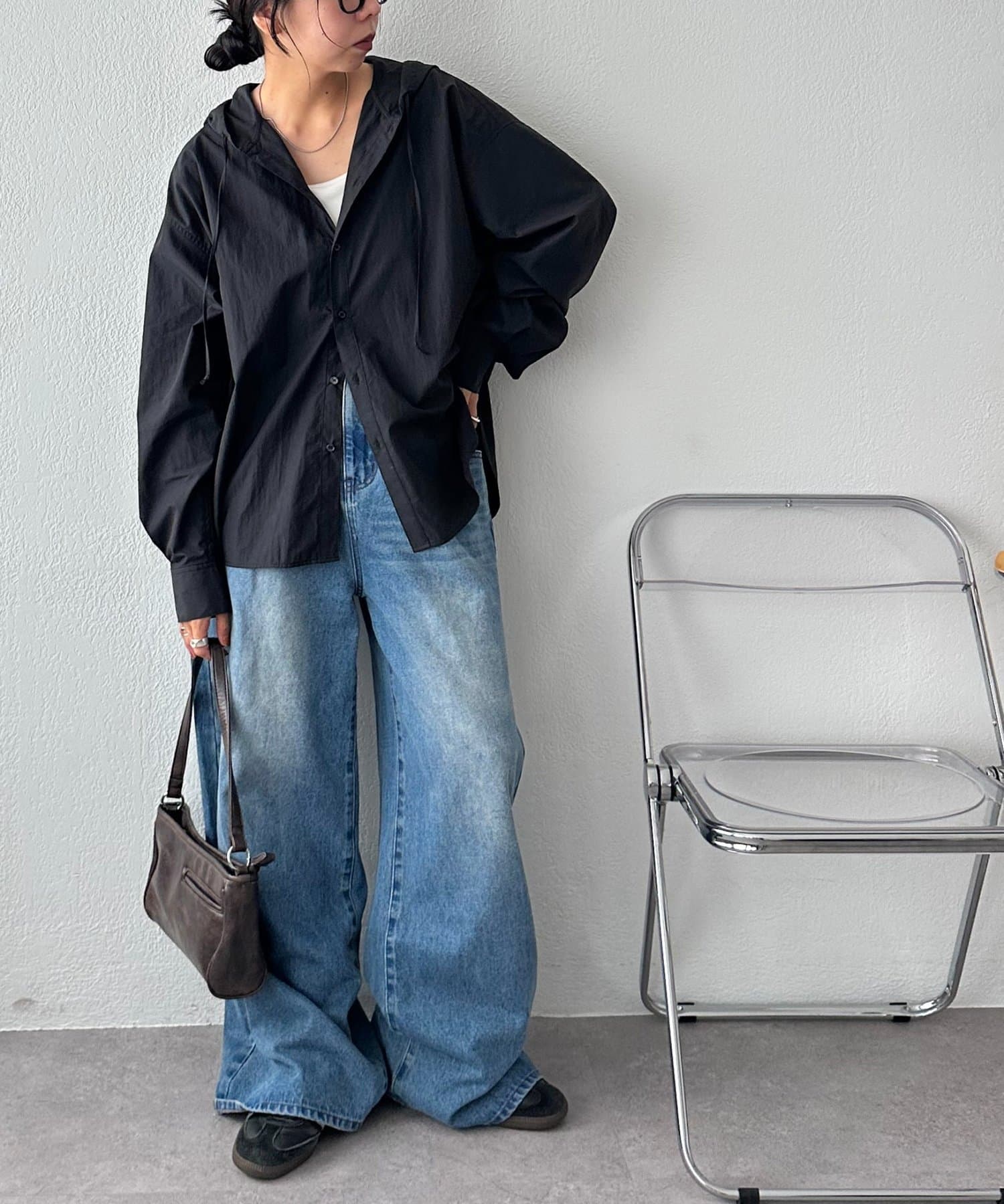全体はゆとりのあるオーバーサイズシルエットで、体型カバーもしながらトレンド感のある着こなしが楽しめます!