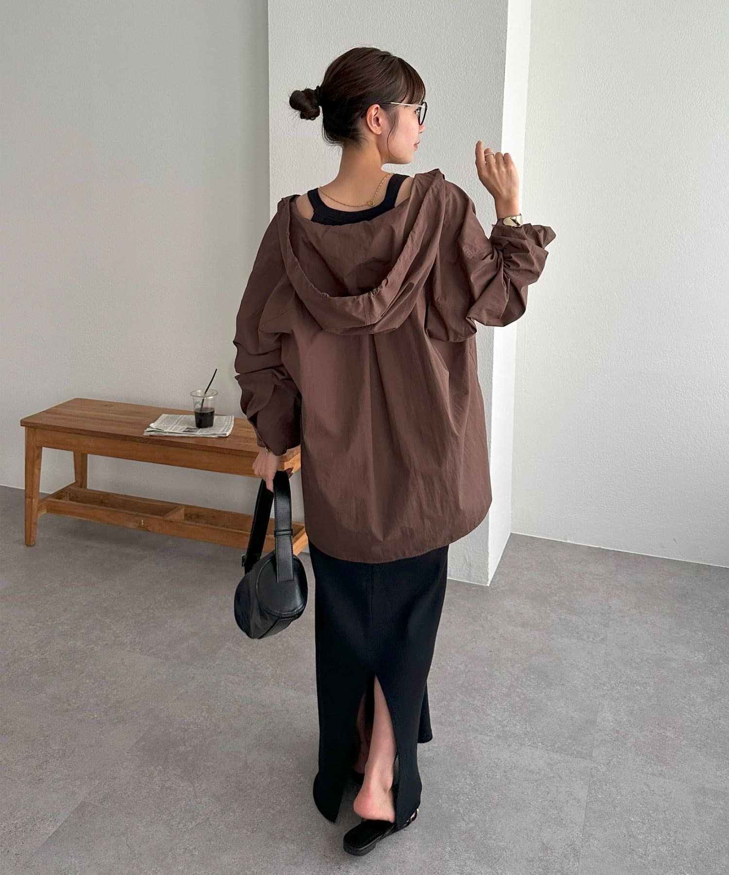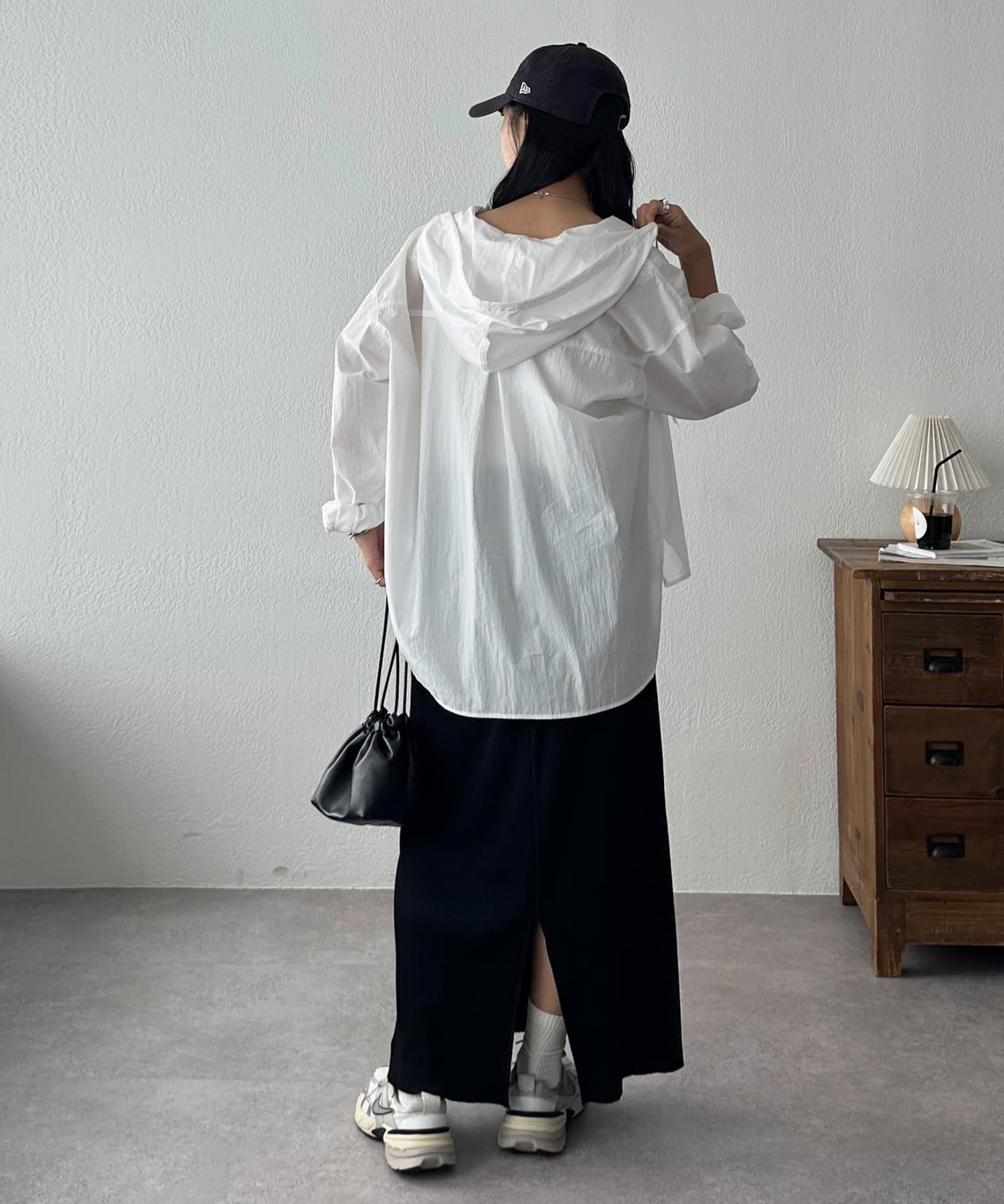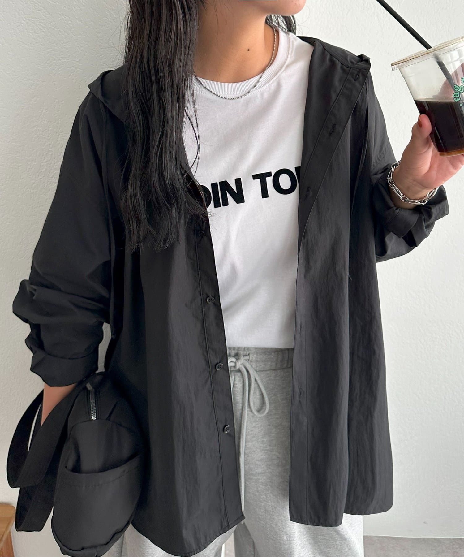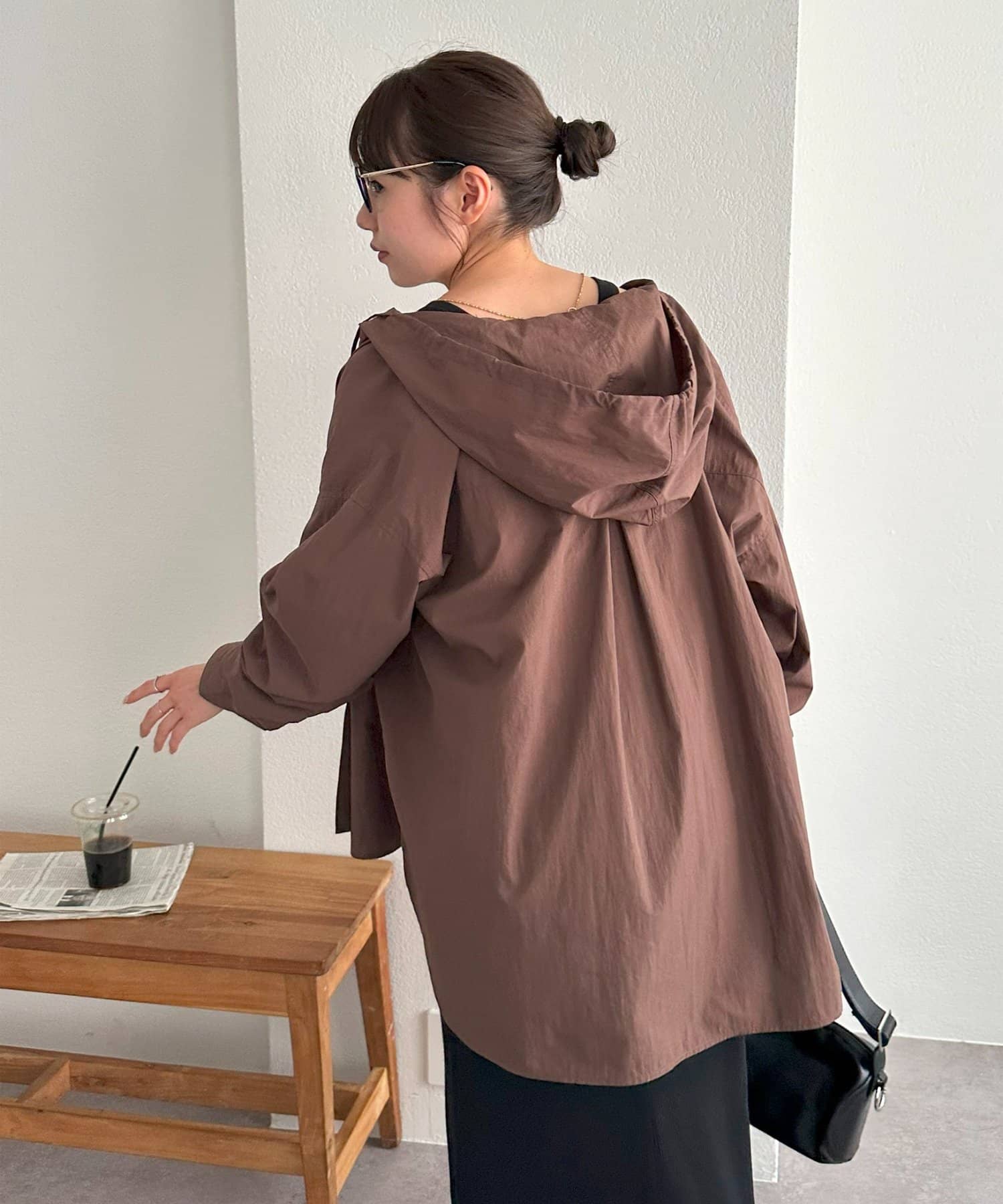 【1枚で仕上がる♪/日焼け・冷房対策にも◎】ワッシャーナイロンフード付きシャツ《ユニセックス》