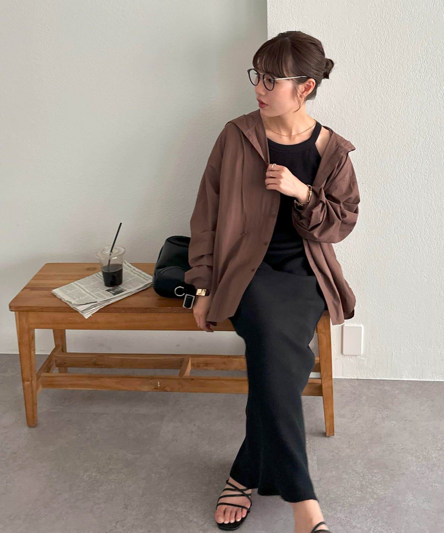 ワンピースやスカートに羽織れば、全体のバランスを引き締めつつ、女性らしさを残した大人カジュアルなスタイルに仕上がります。