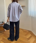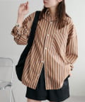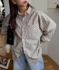 ピッチの異なるランダムストライプ柄で、一枚で着映えするアイテムです。