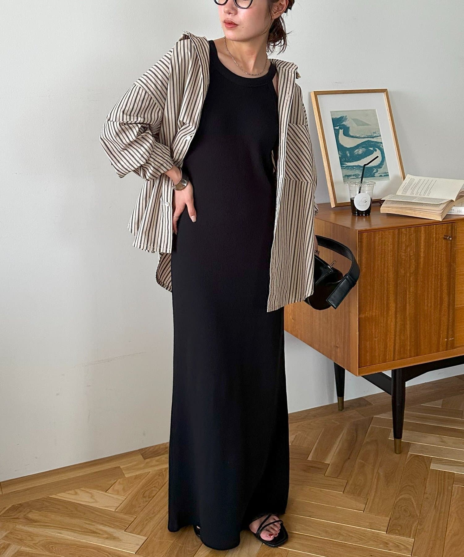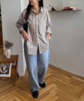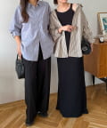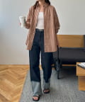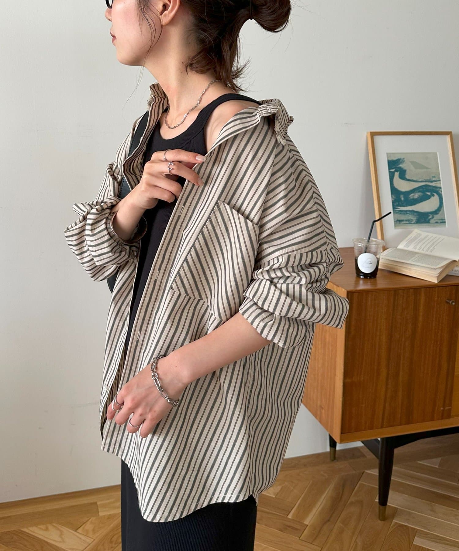 157cmレディーススタッフ:ランダムストライプが縦ラインを強調してくれるので、すっきり見えします!春夏は羽織りとして、秋はニットベストなどとのレイヤードも楽しめます♪