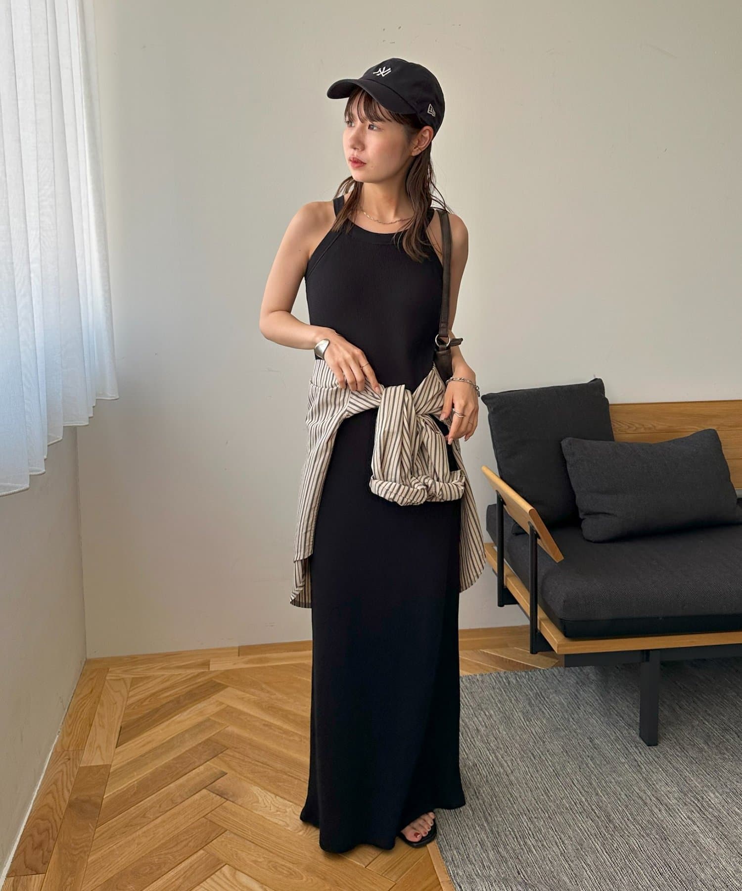 ワンピースなどに腰巻してコーデのアクセントにするのもおすすめ◎