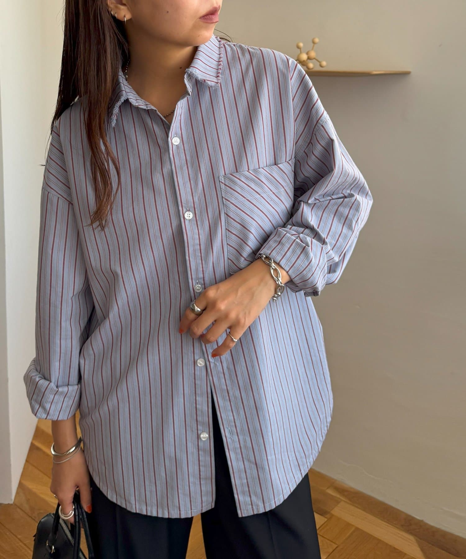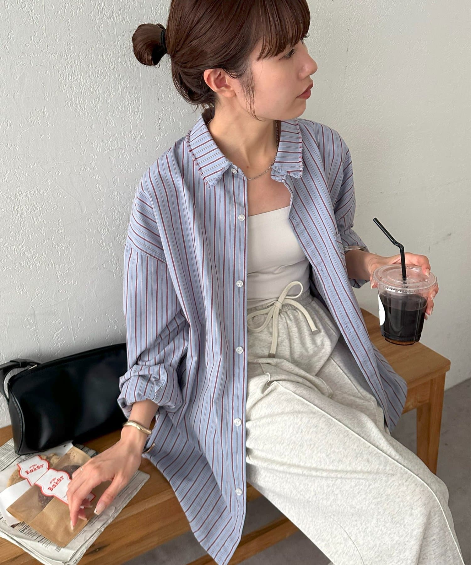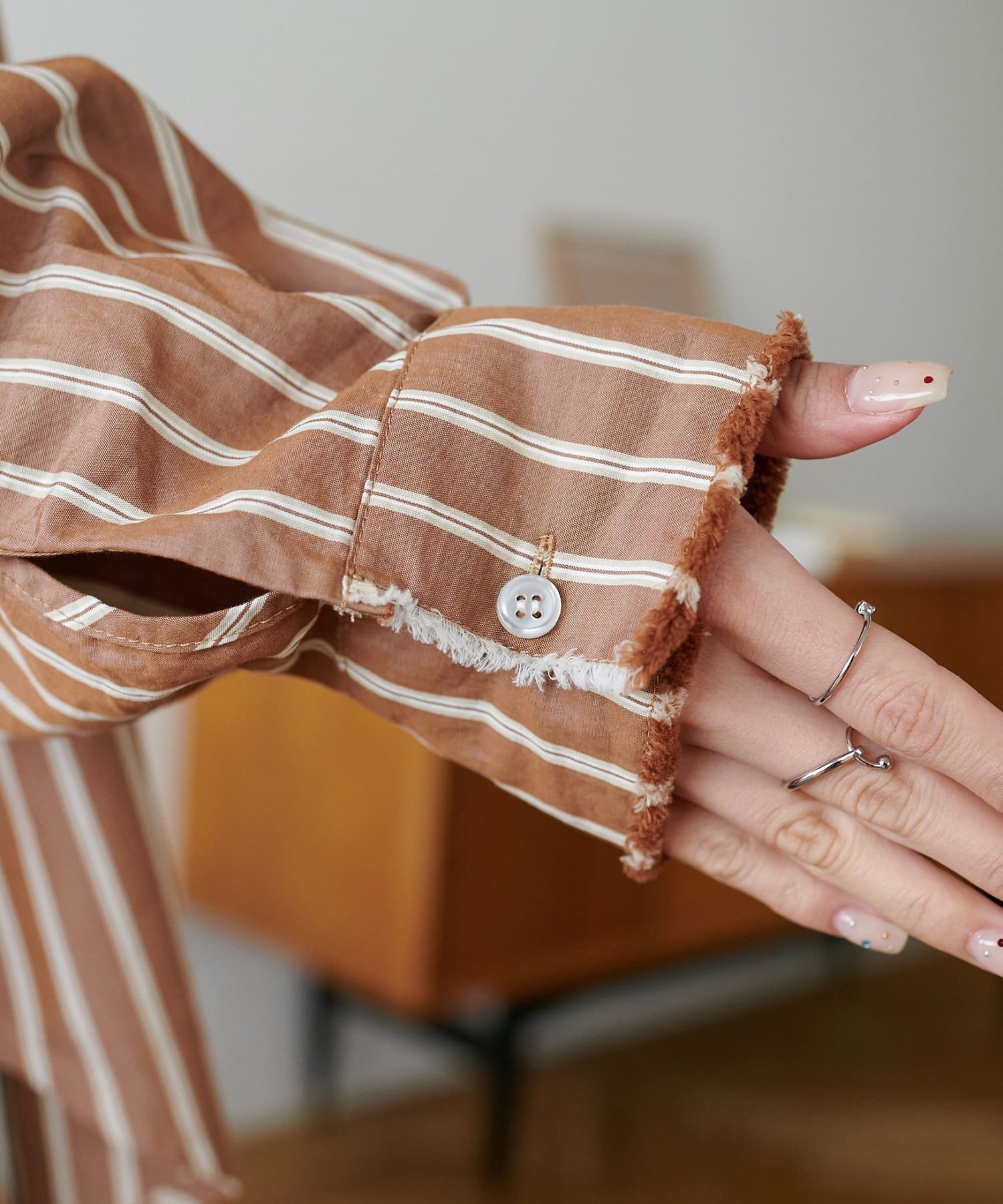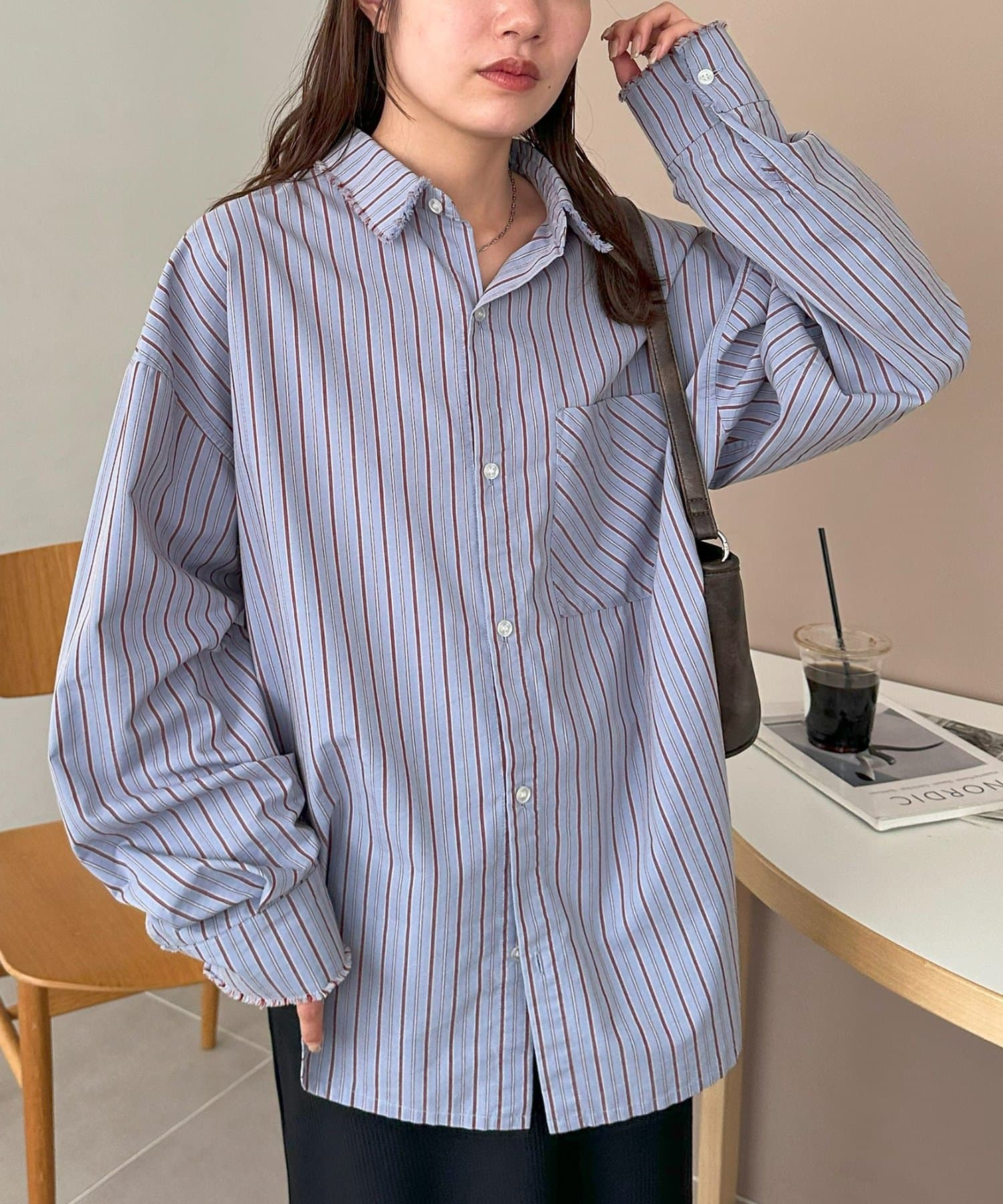 【迷ったらコレ! /ユニセックス】ランダムストライプフリンジオーバーシャツ