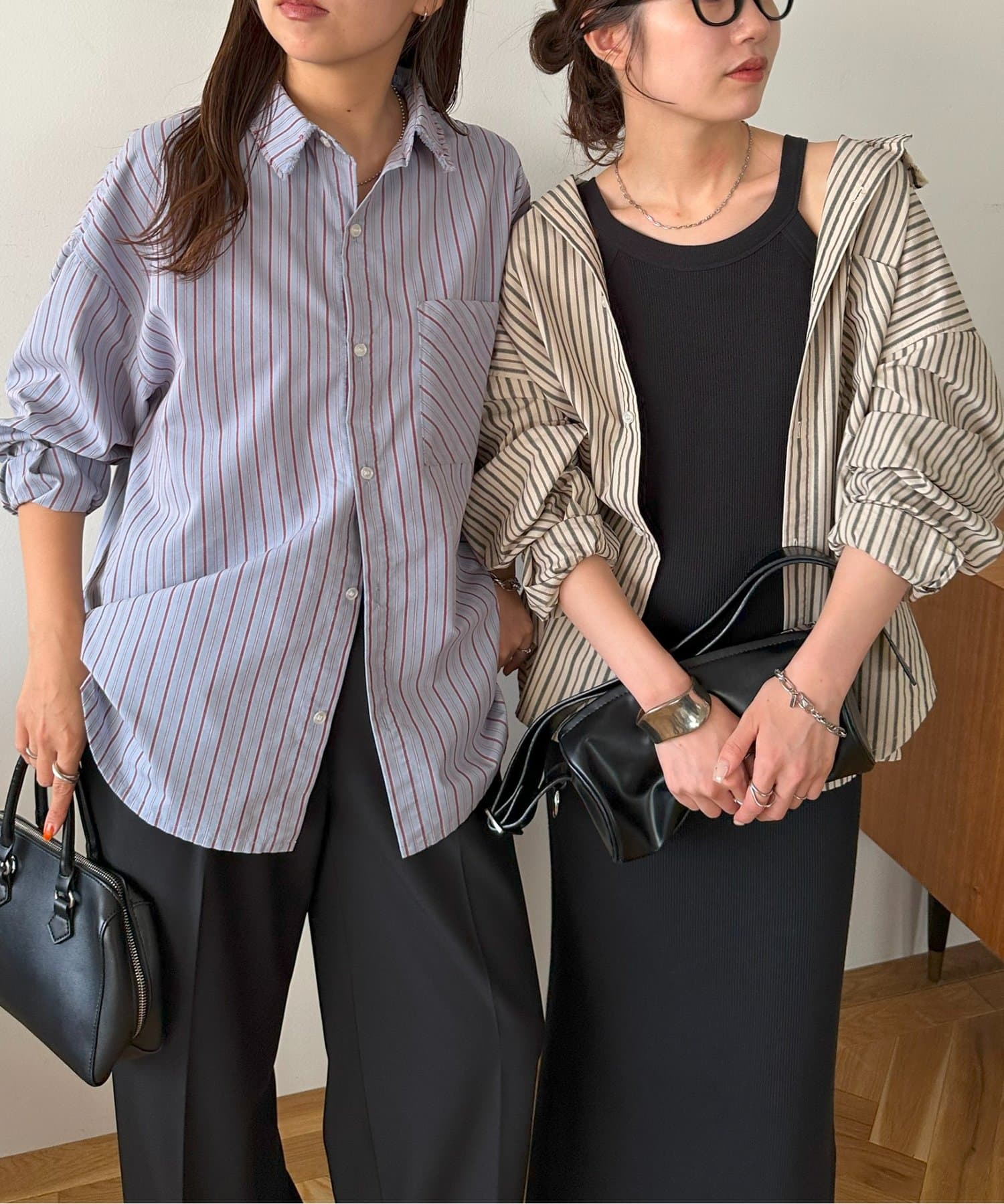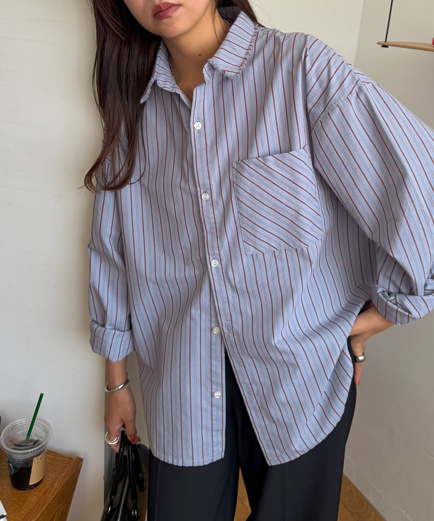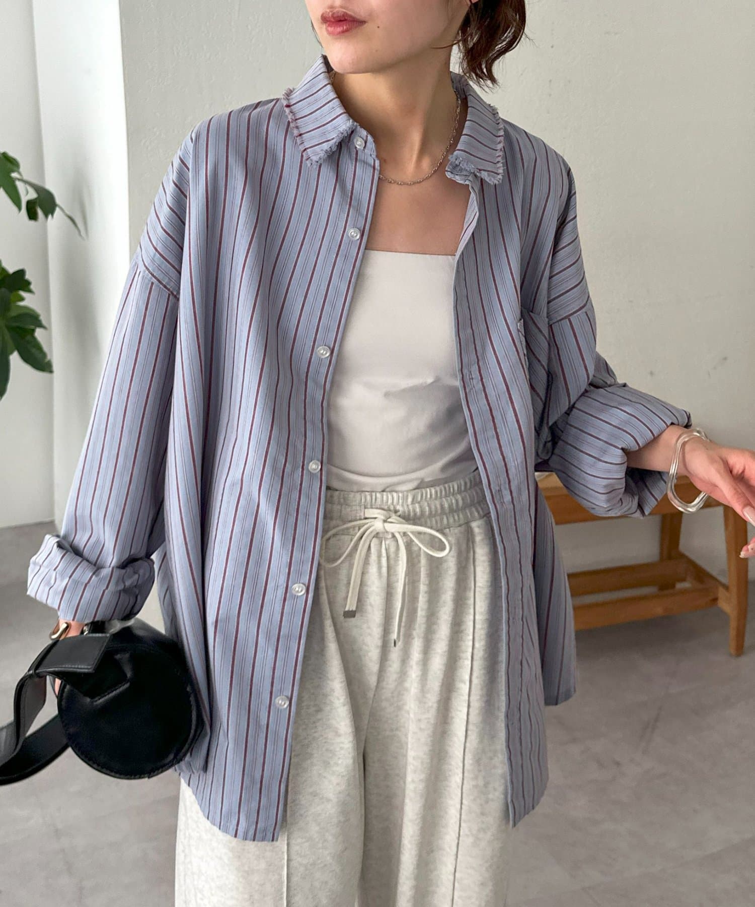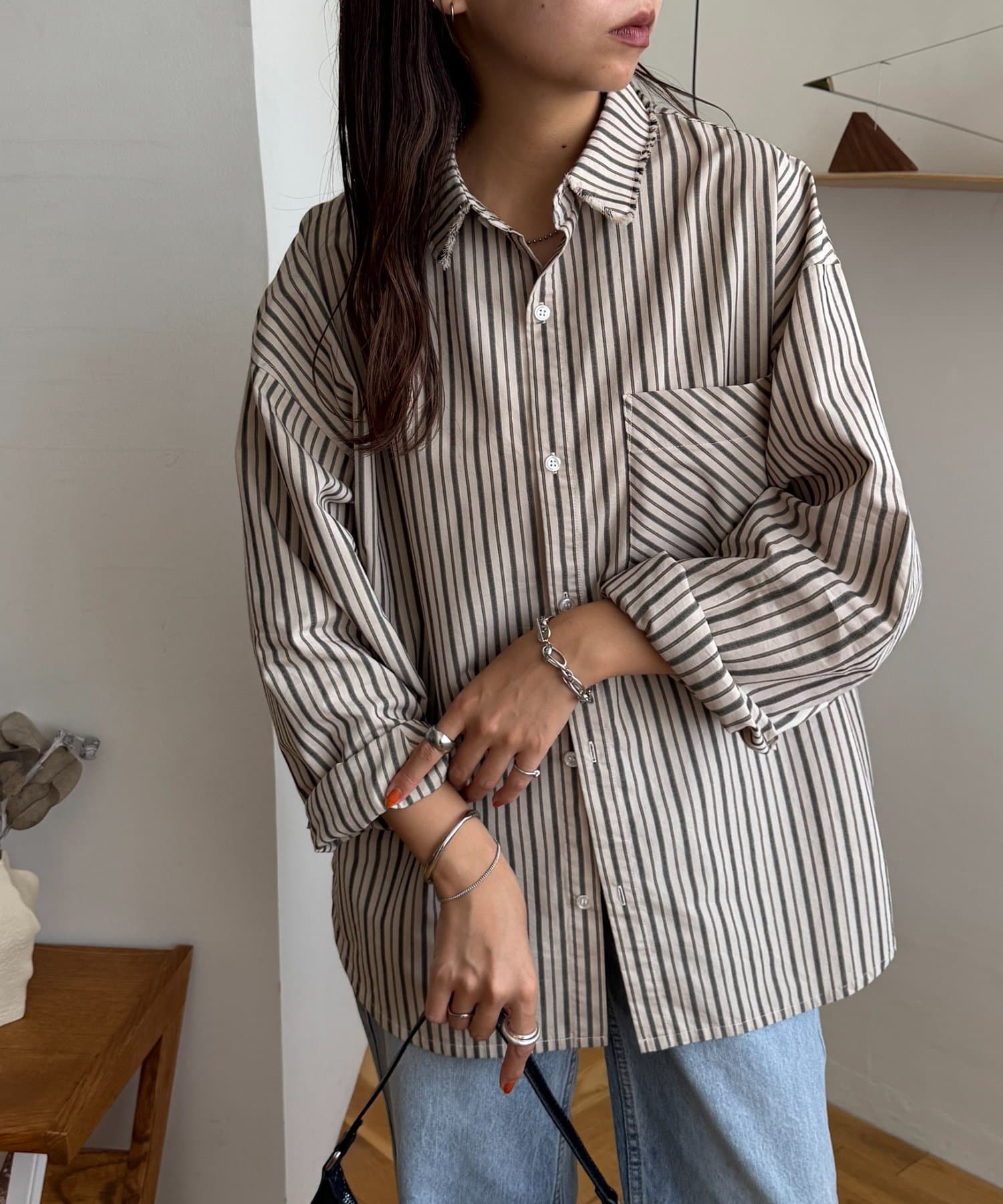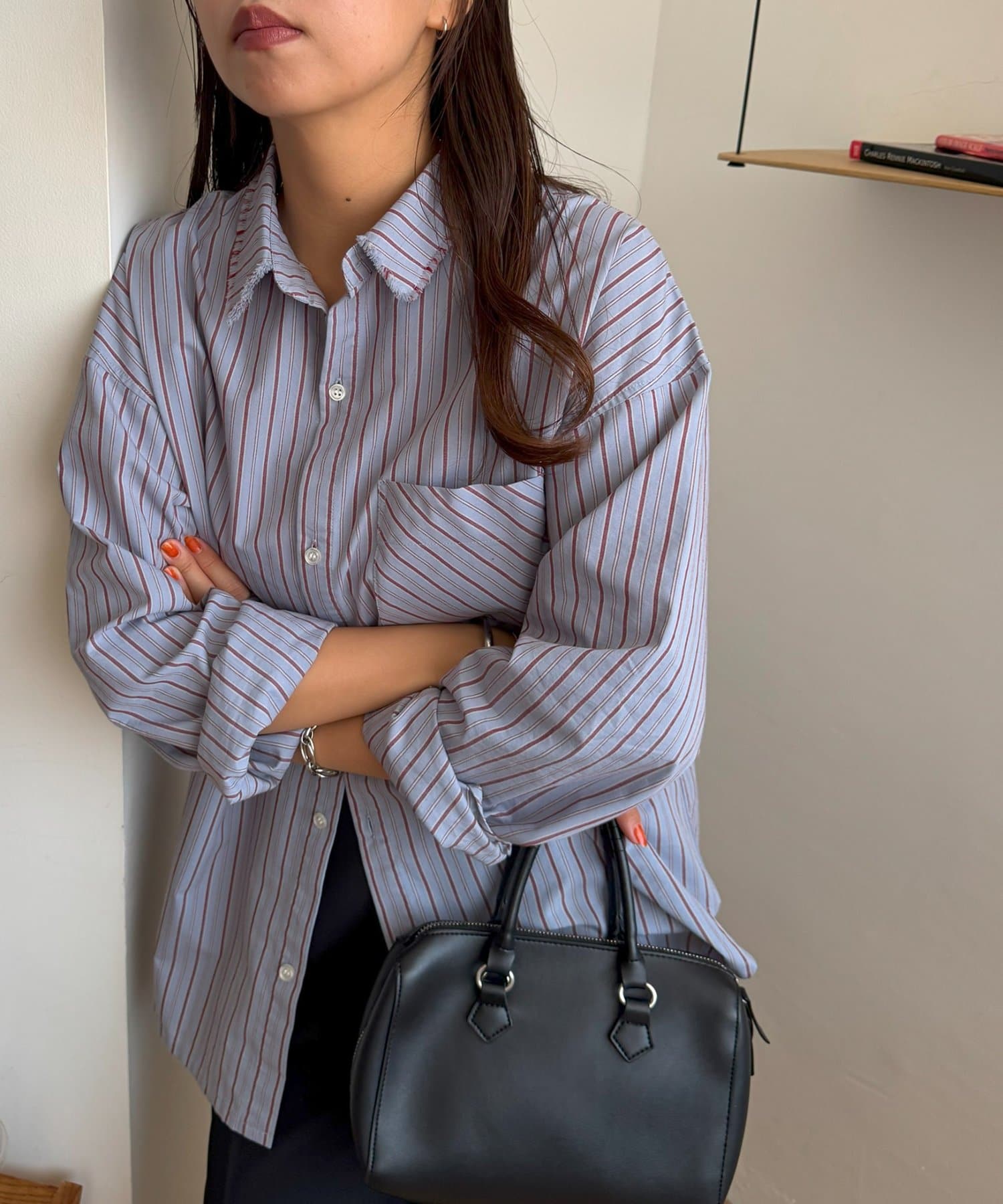 【迷ったらコレ! /ユニセックス】ランダムストライプフリンジオーバーシャツ