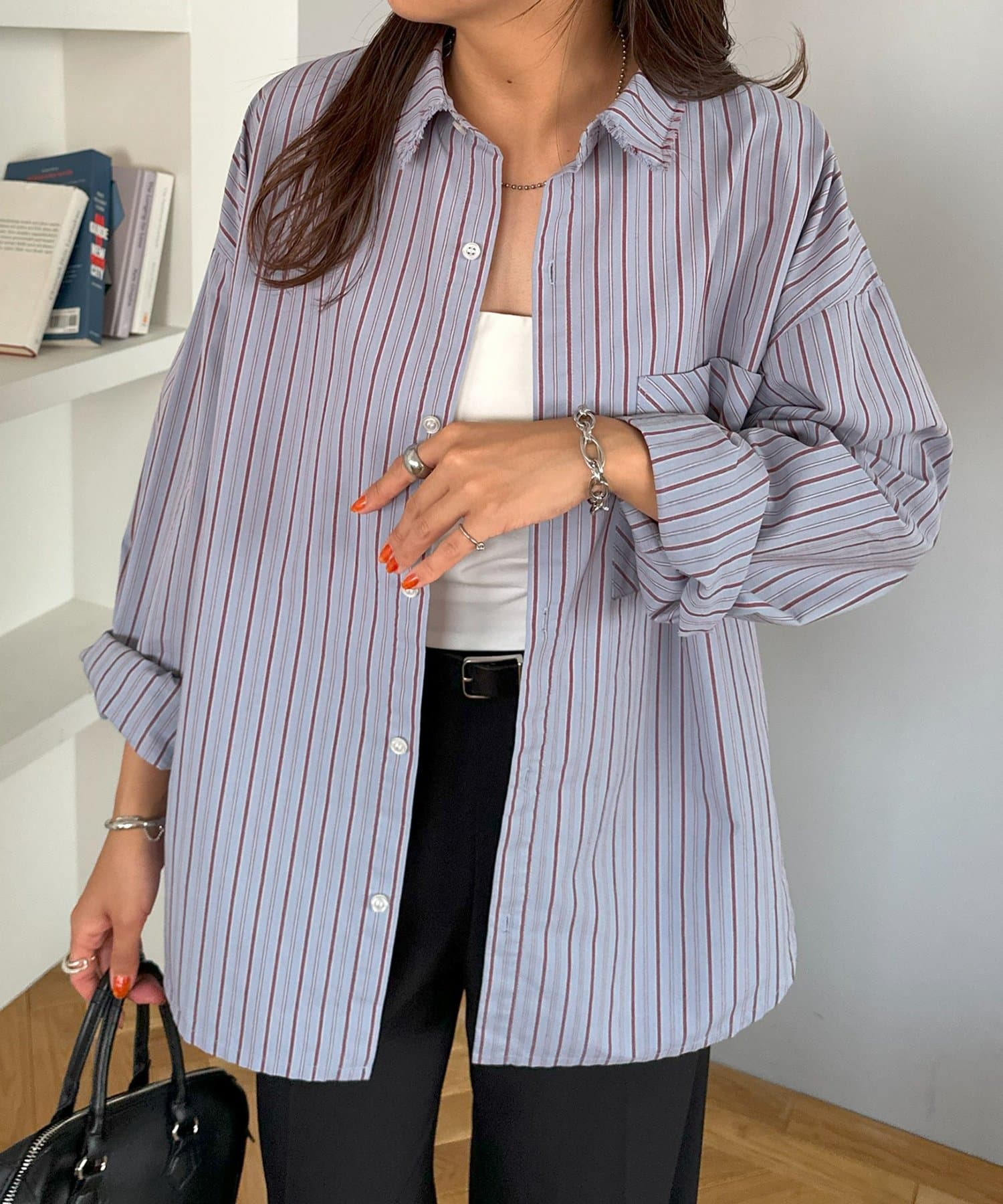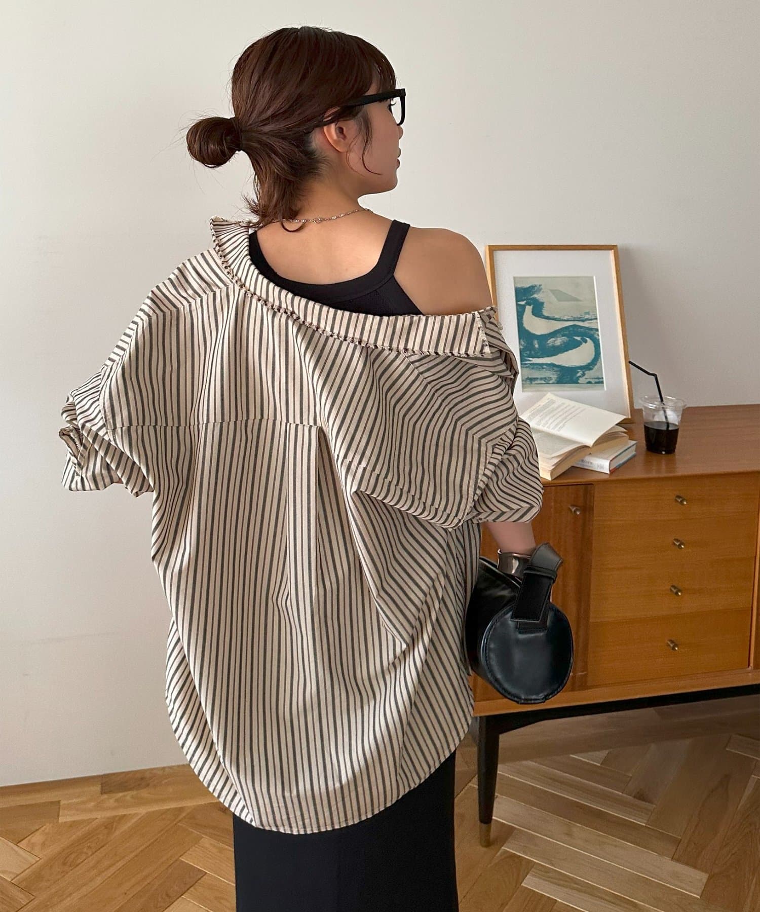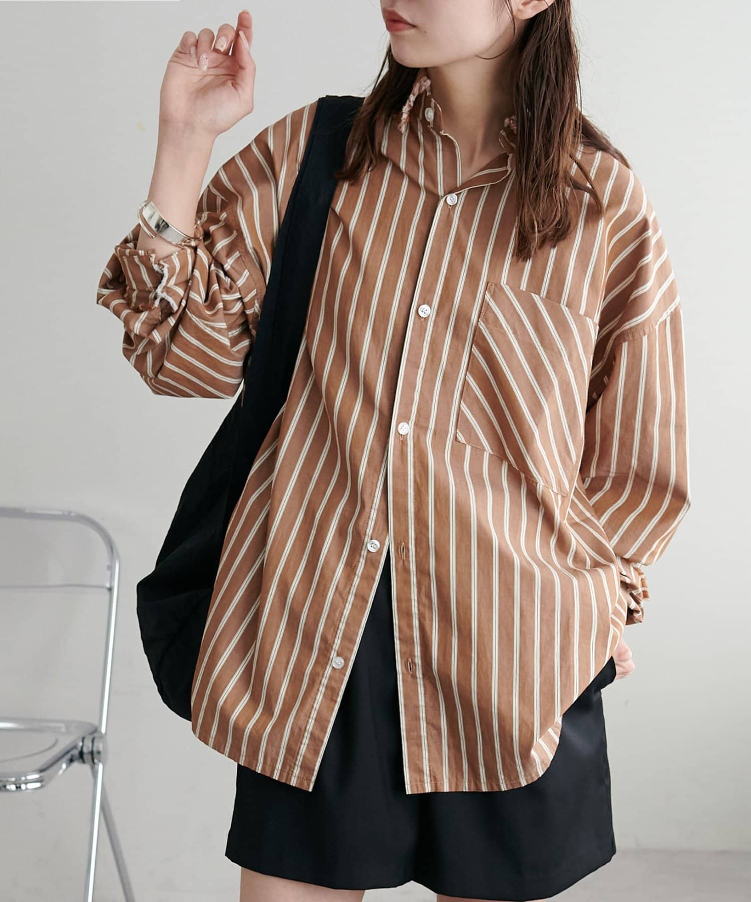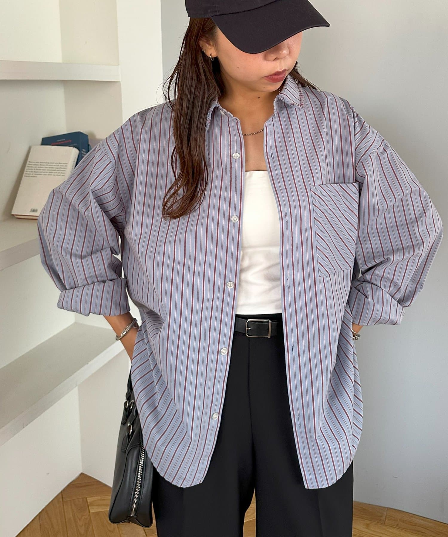 【迷ったらコレ! /ユニセックス】ランダムストライプフリンジオーバーシャツ