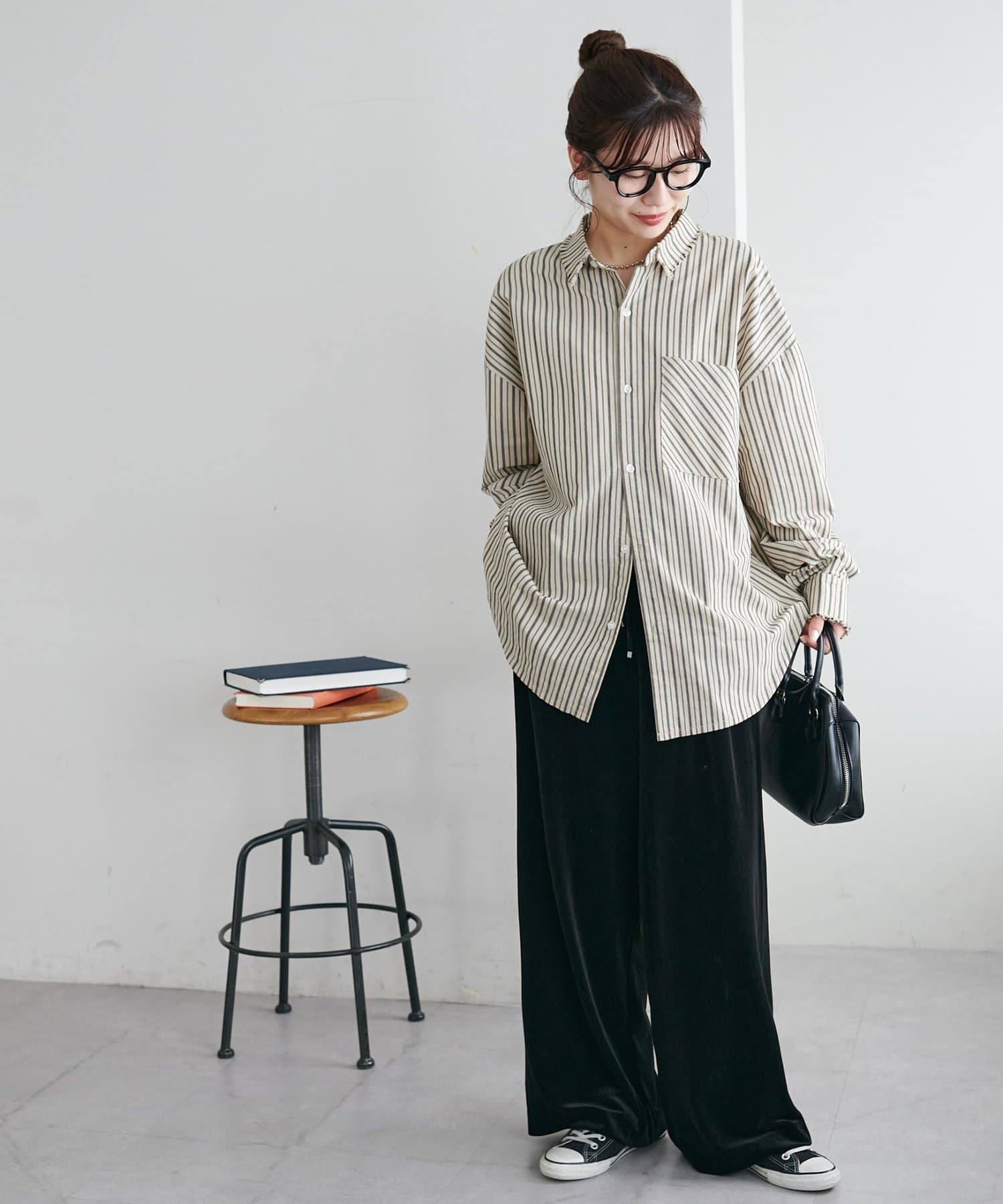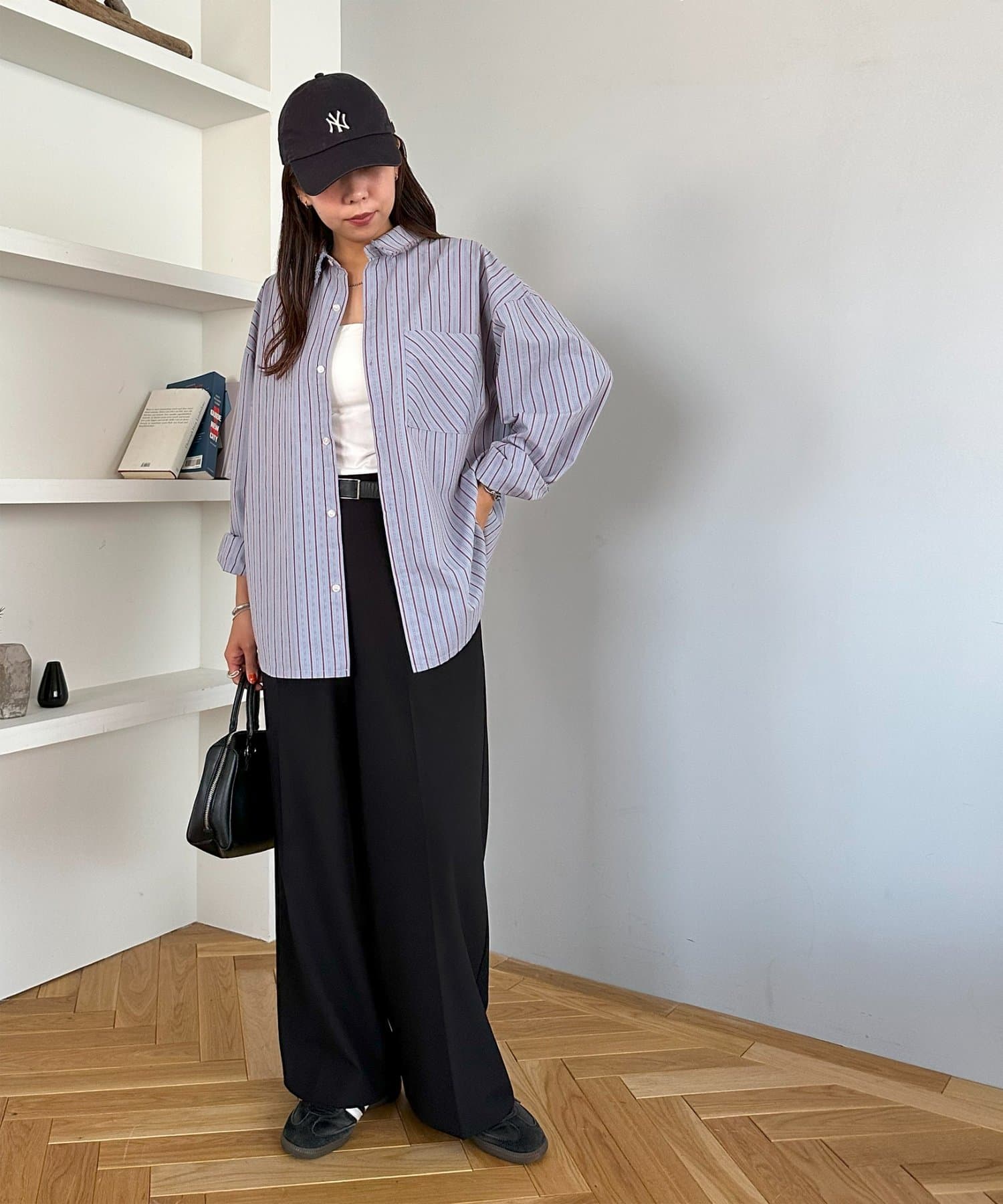 ワイドパンツやデニムでメンズライクに、スラックスやスカートと合わせてキレイめにも!