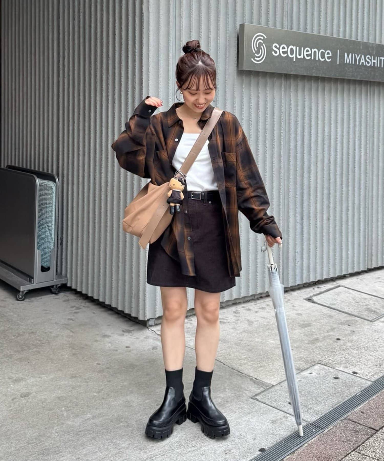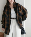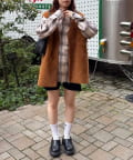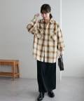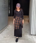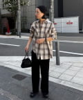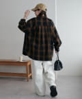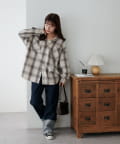 158cmレディーススタッフ:落ち着いた色合いの配色で合わせるアイテムを選ばず、着回しやすいチェックシャツです!オーバーサイズでお尻まで隠れるので体型カバーにも◎