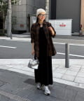 150cmレディーススタッフ:ユニセックスのアイテムでオーバーサイズですが、スリットが抜け感をプラスしてくれることで低身長でも合わせやすくなります。