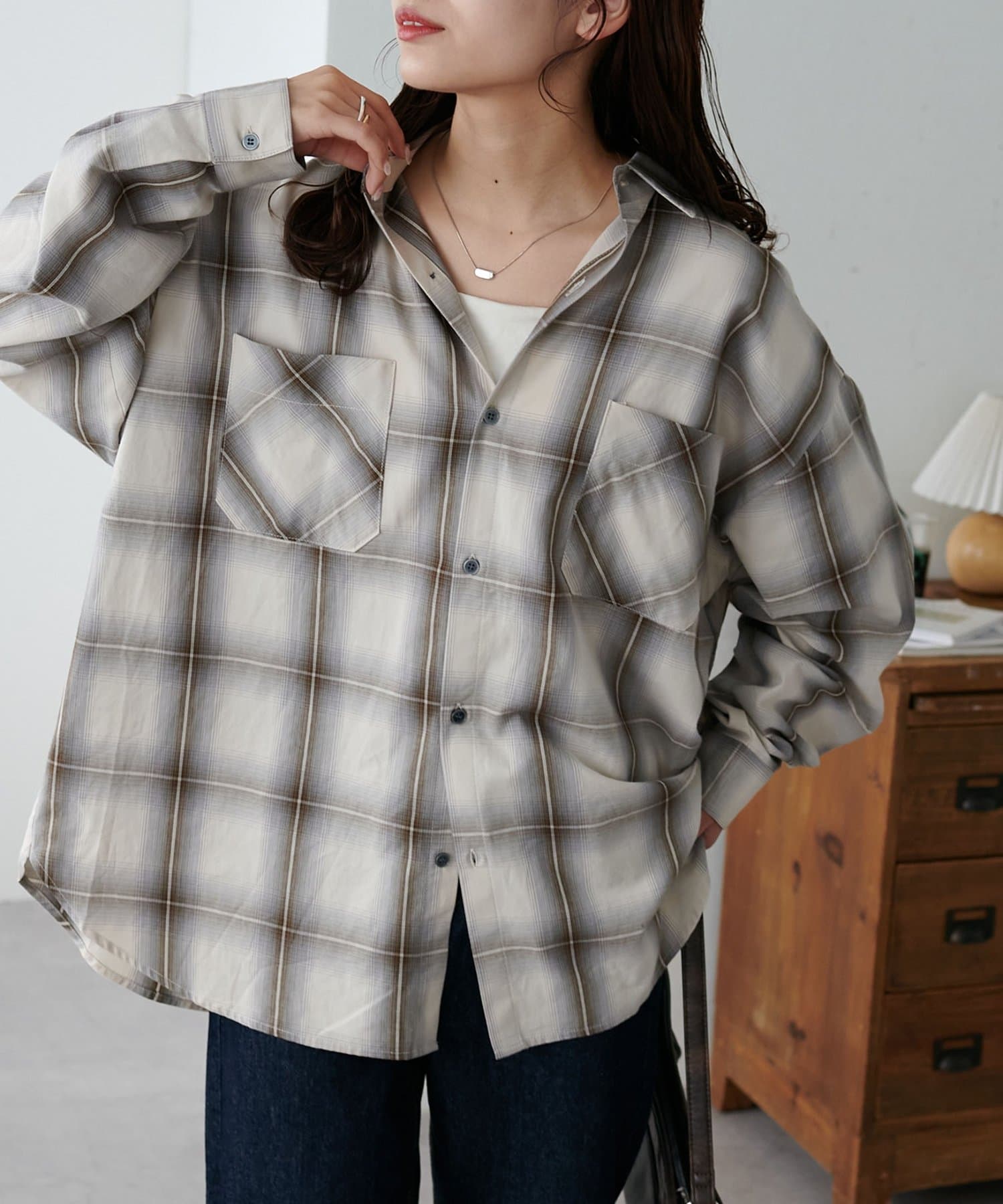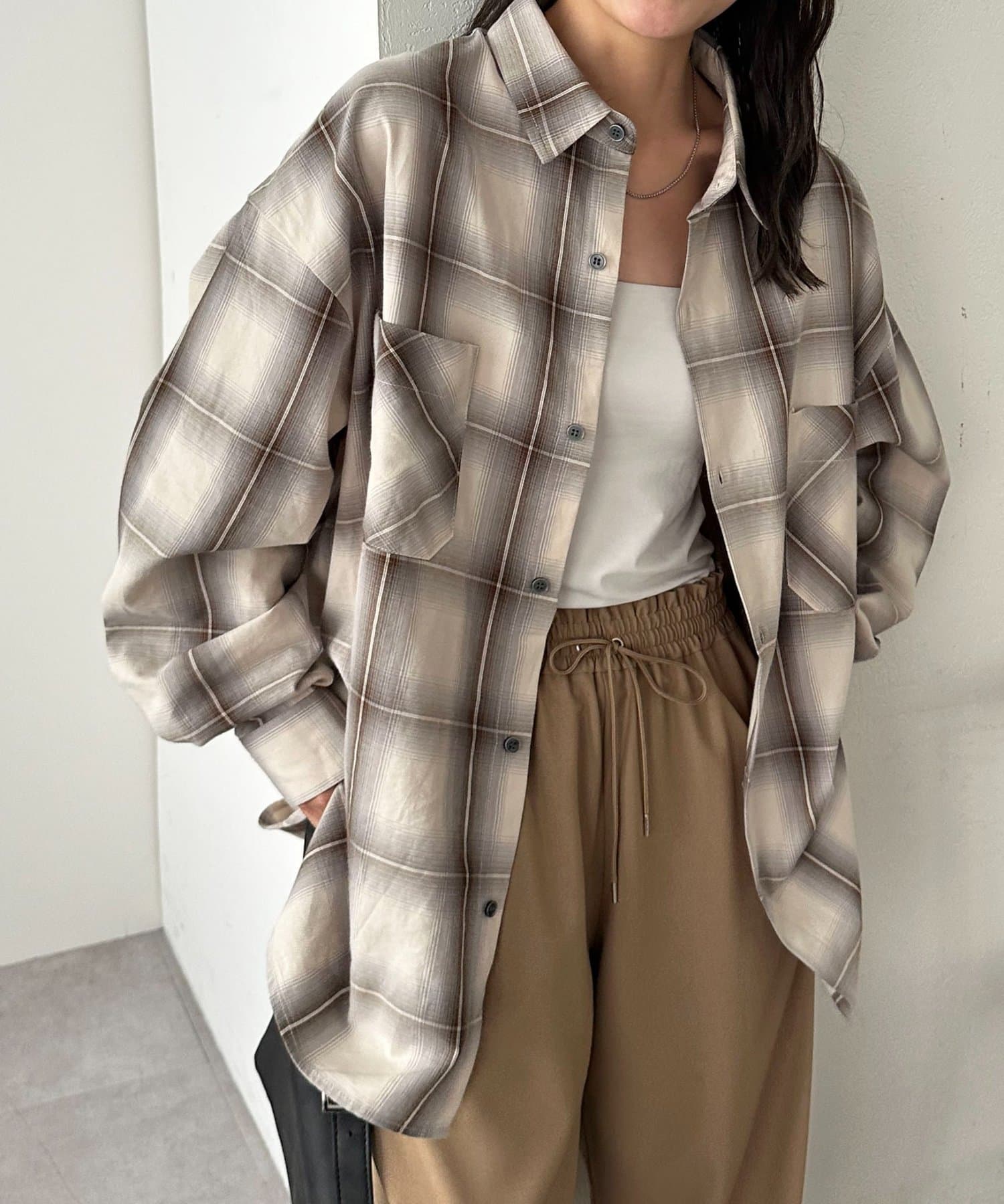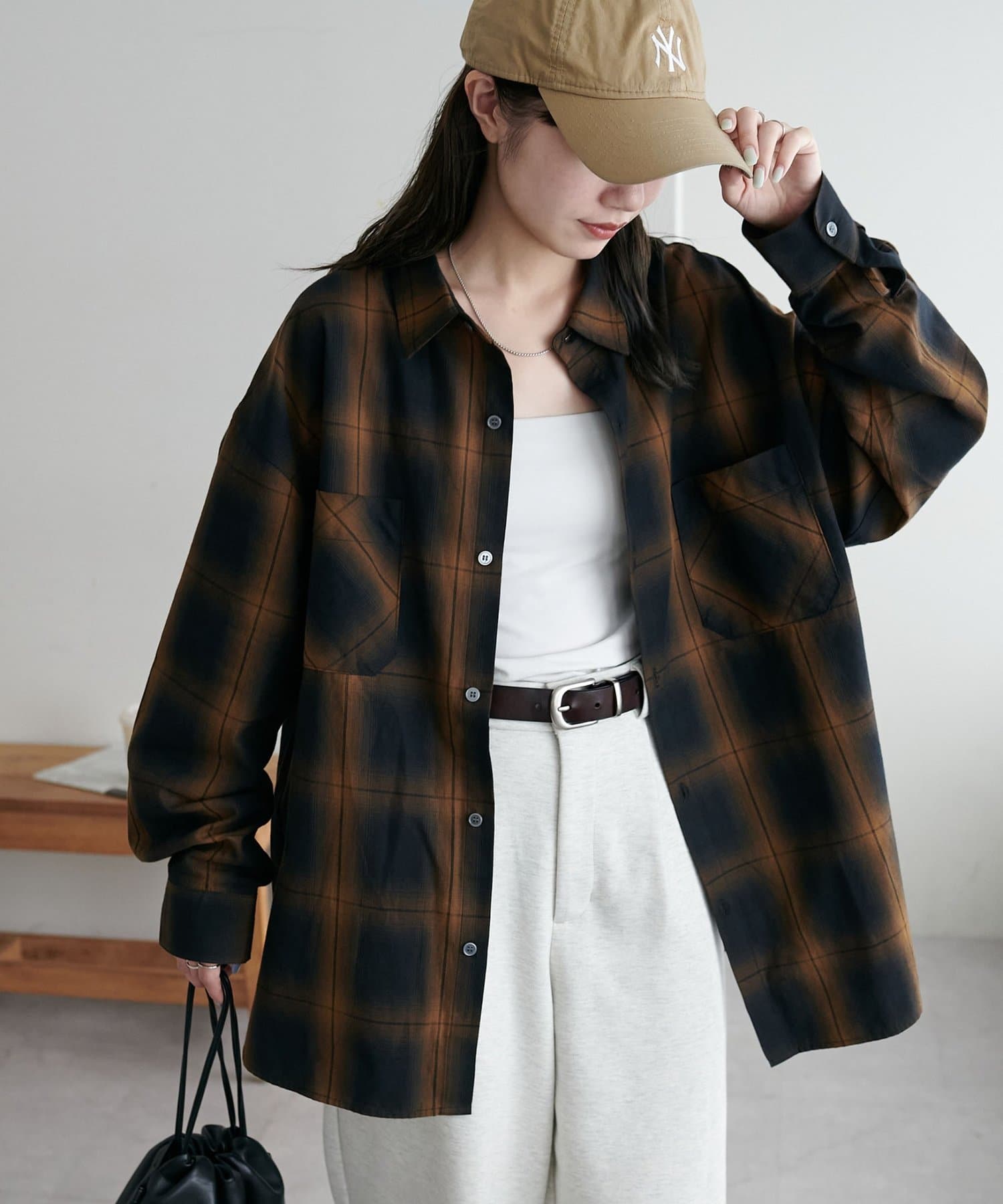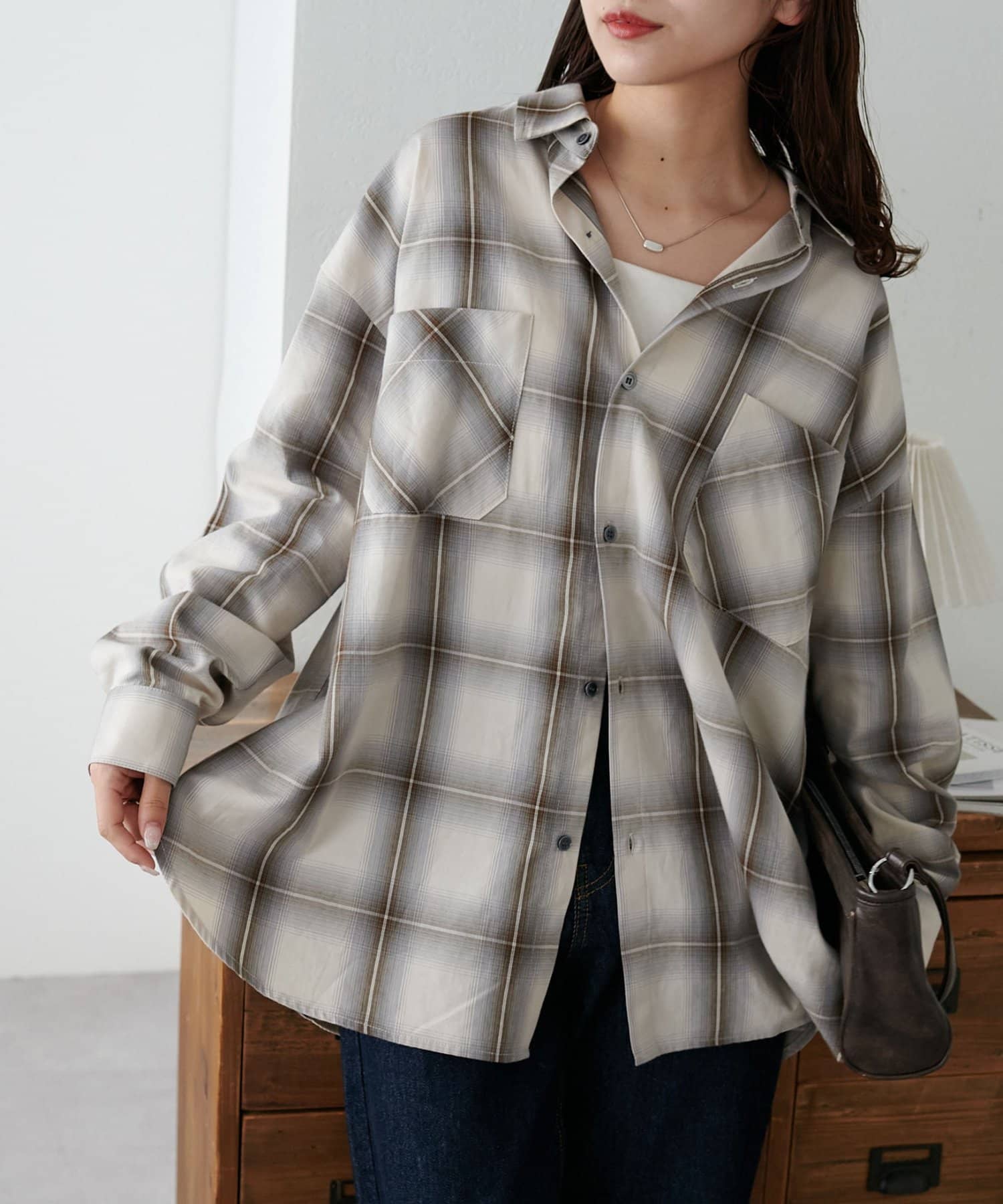 【秋の定番!/ ユニセックス】オンブレチェックオーバーシャツ《詳細動画あり》