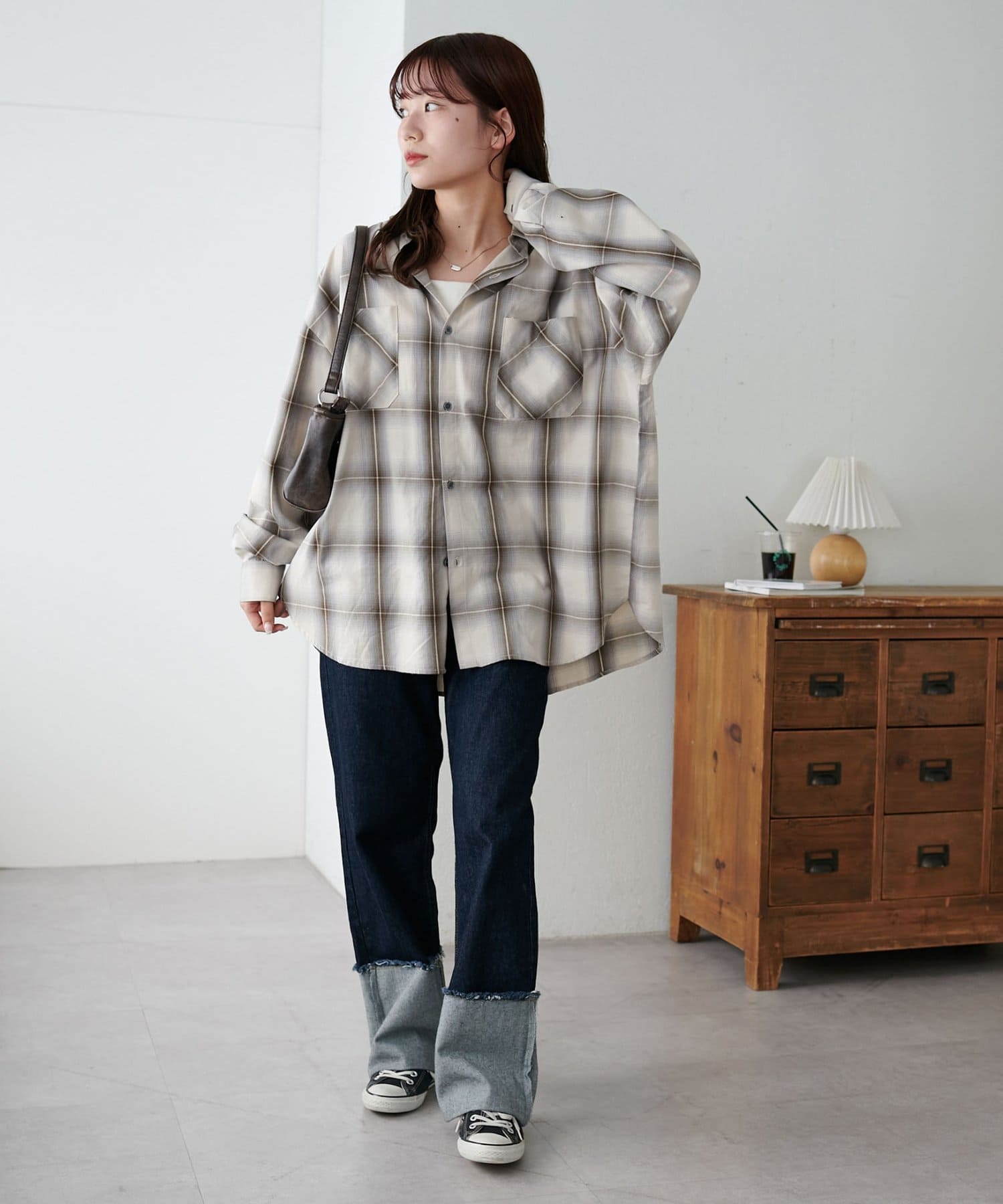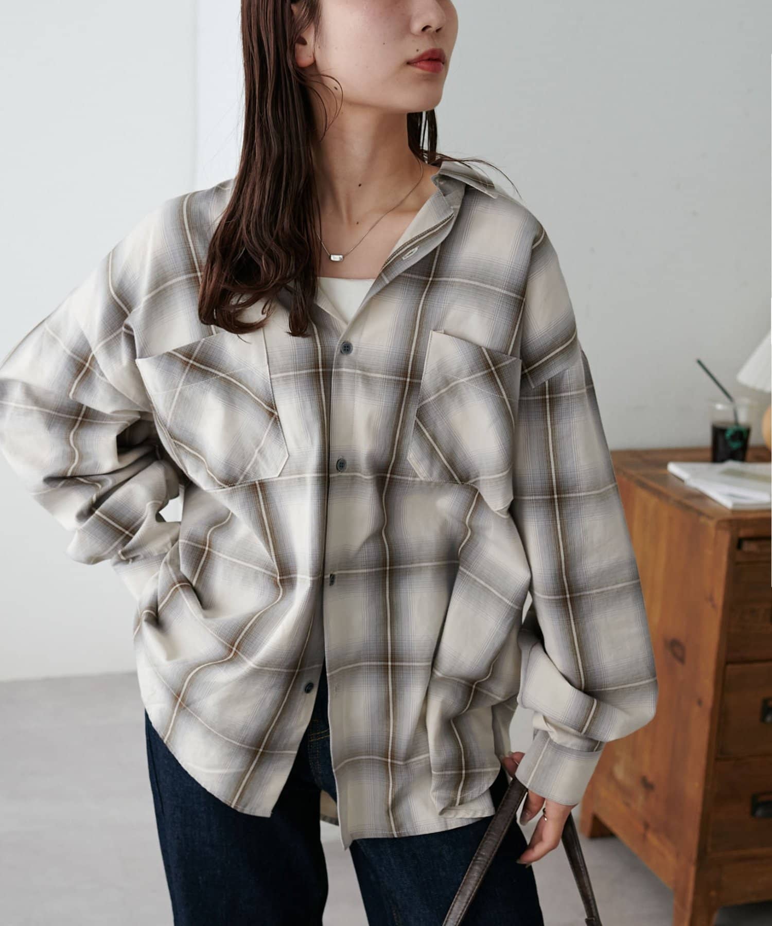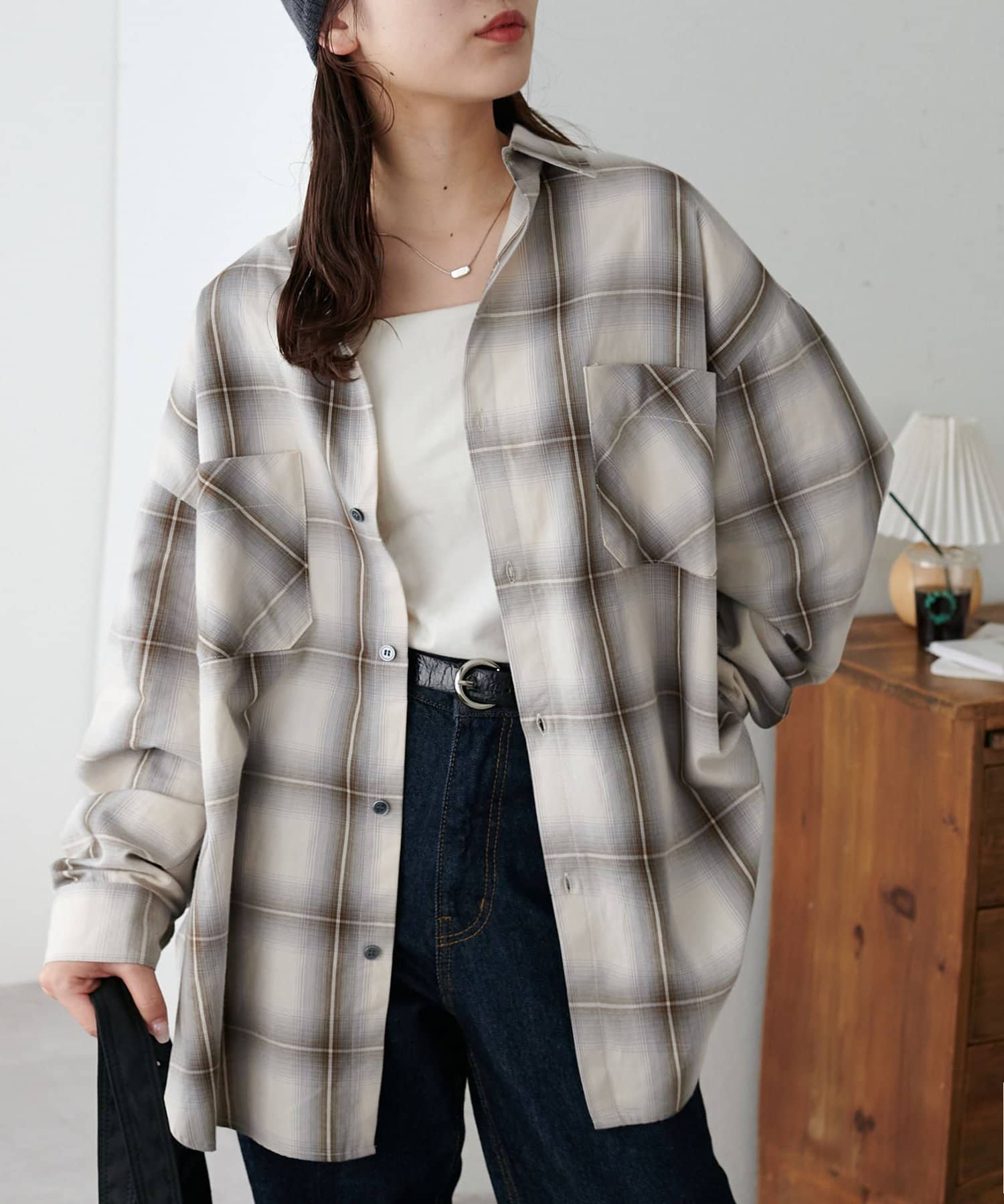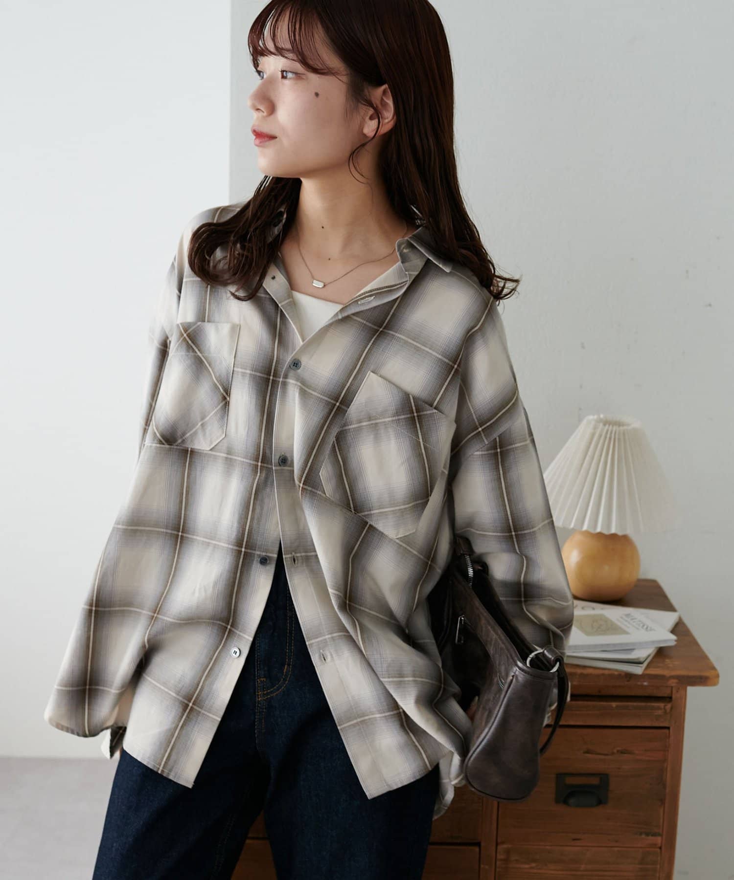 【秋の定番!/ ユニセックス】オンブレチェックオーバーシャツ《詳細動画あり》