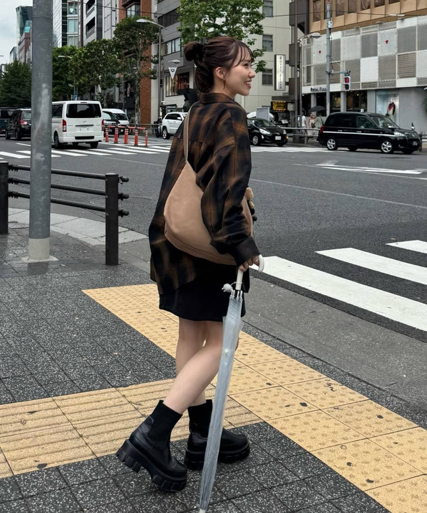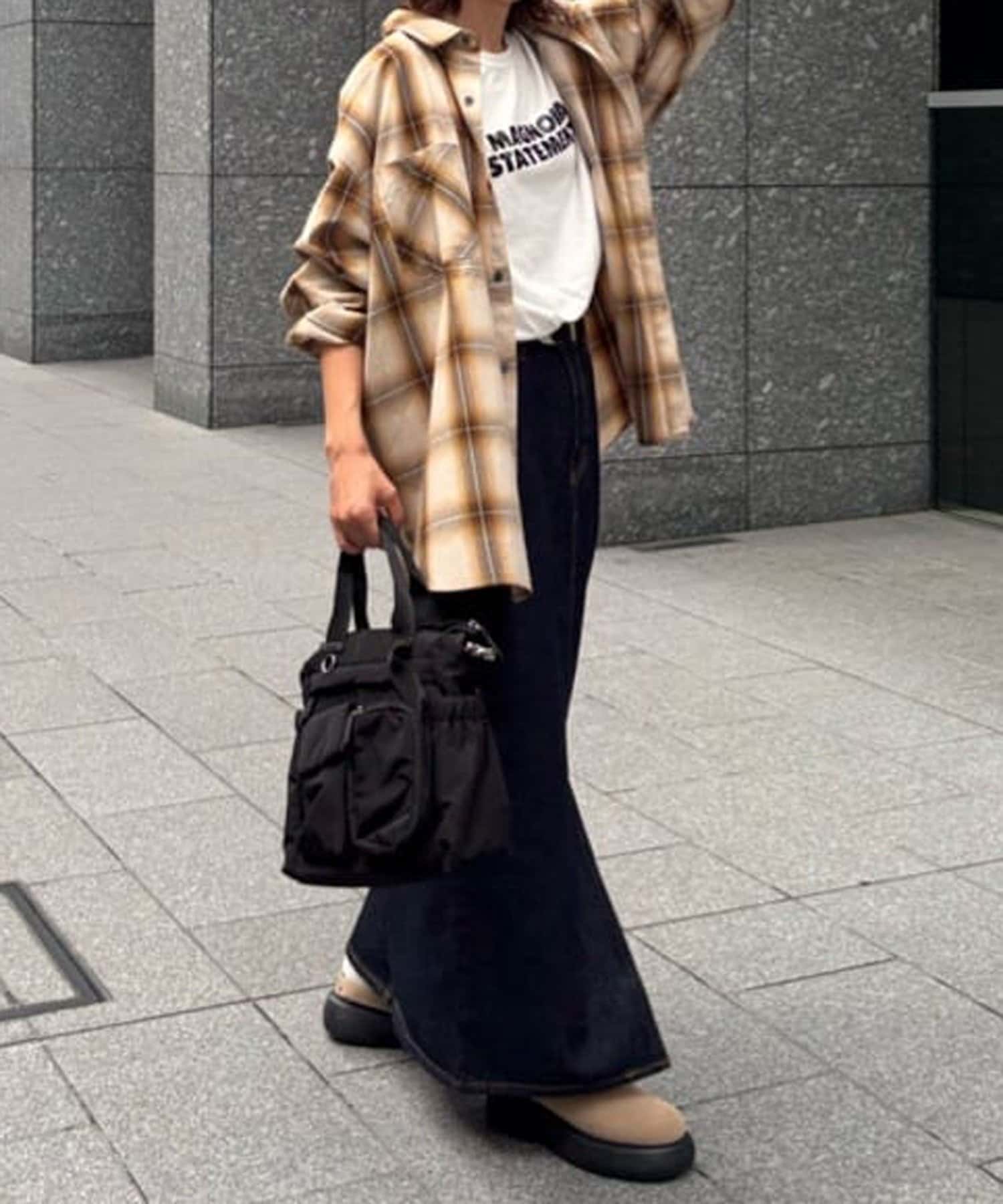 ボトムスやインナーはコンパクトなシルエットのものを合わせるとスタイリッシュなコーデになります!