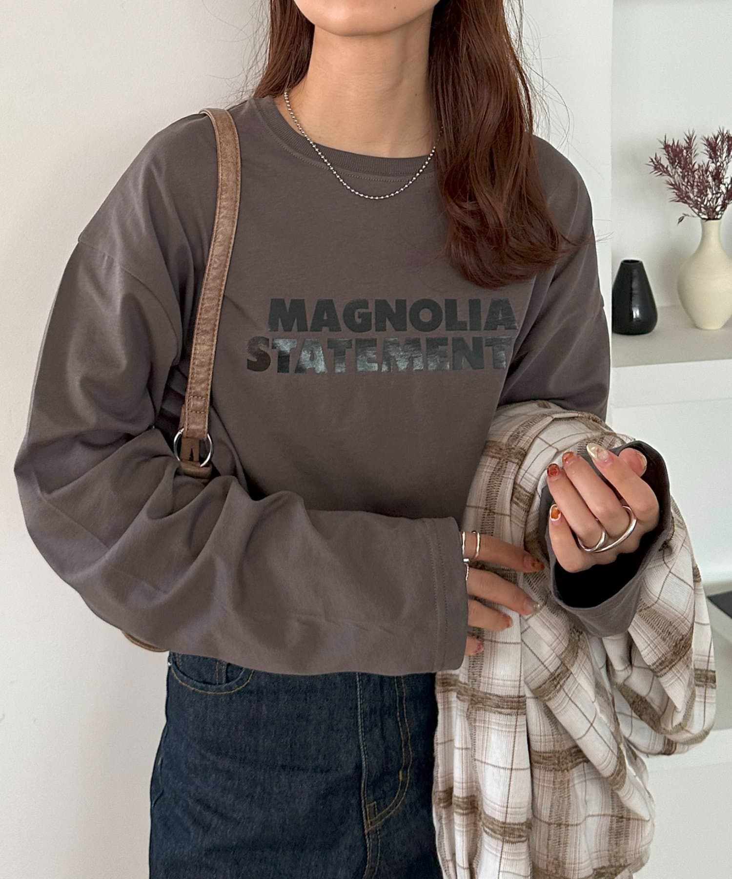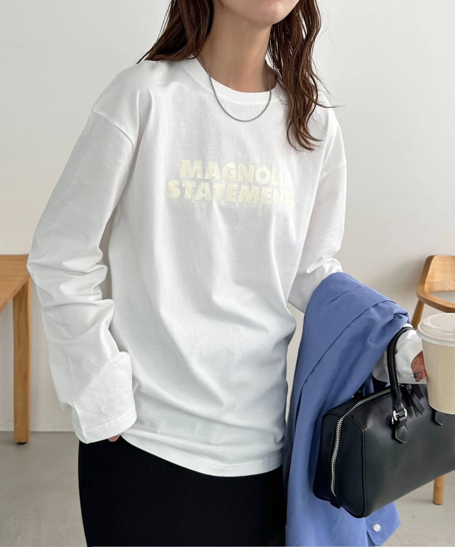 「MAGNOLIA」のロゴがアクセントになったユニセックスロンT。1枚でもレイヤードでも着こなしやすく、カジュアルスタイルからジャケットやシャツのインナーとしても活躍。スカートやワイドパンツと合わせれば、ユニセックス感を活かしたこなれコーデも楽しめます。サイズはSとFの2サイズ展開。Sはコンパクトに、Fはゆったりとしたビッグシルエットで男女問わず取り入れやすい万能アイテムです。