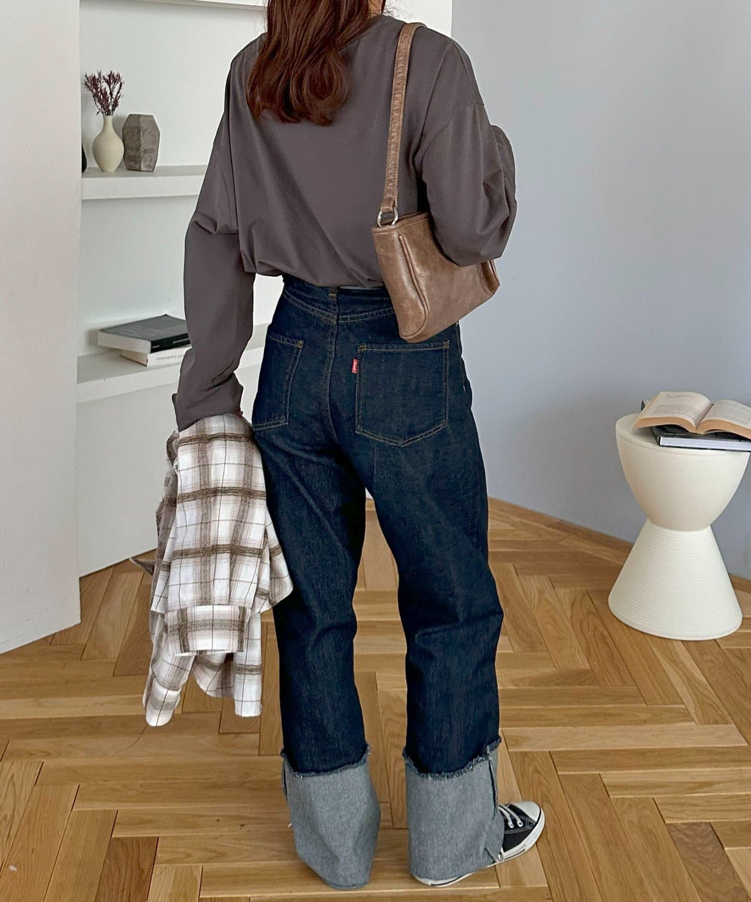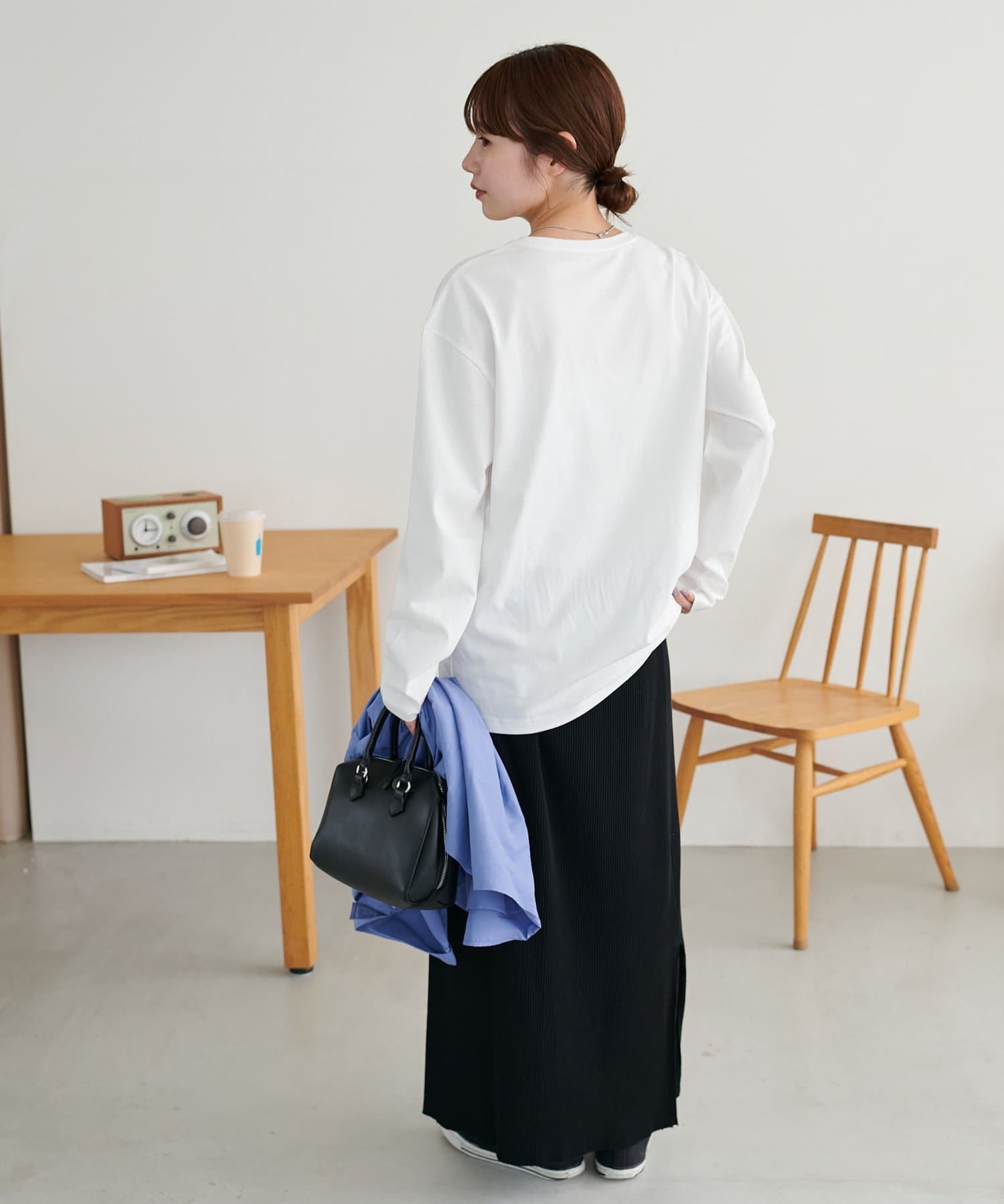 柔らかく肌触りの良いコットン素材で、リブ部分は程よい伸縮性があり快適な着心地です◎