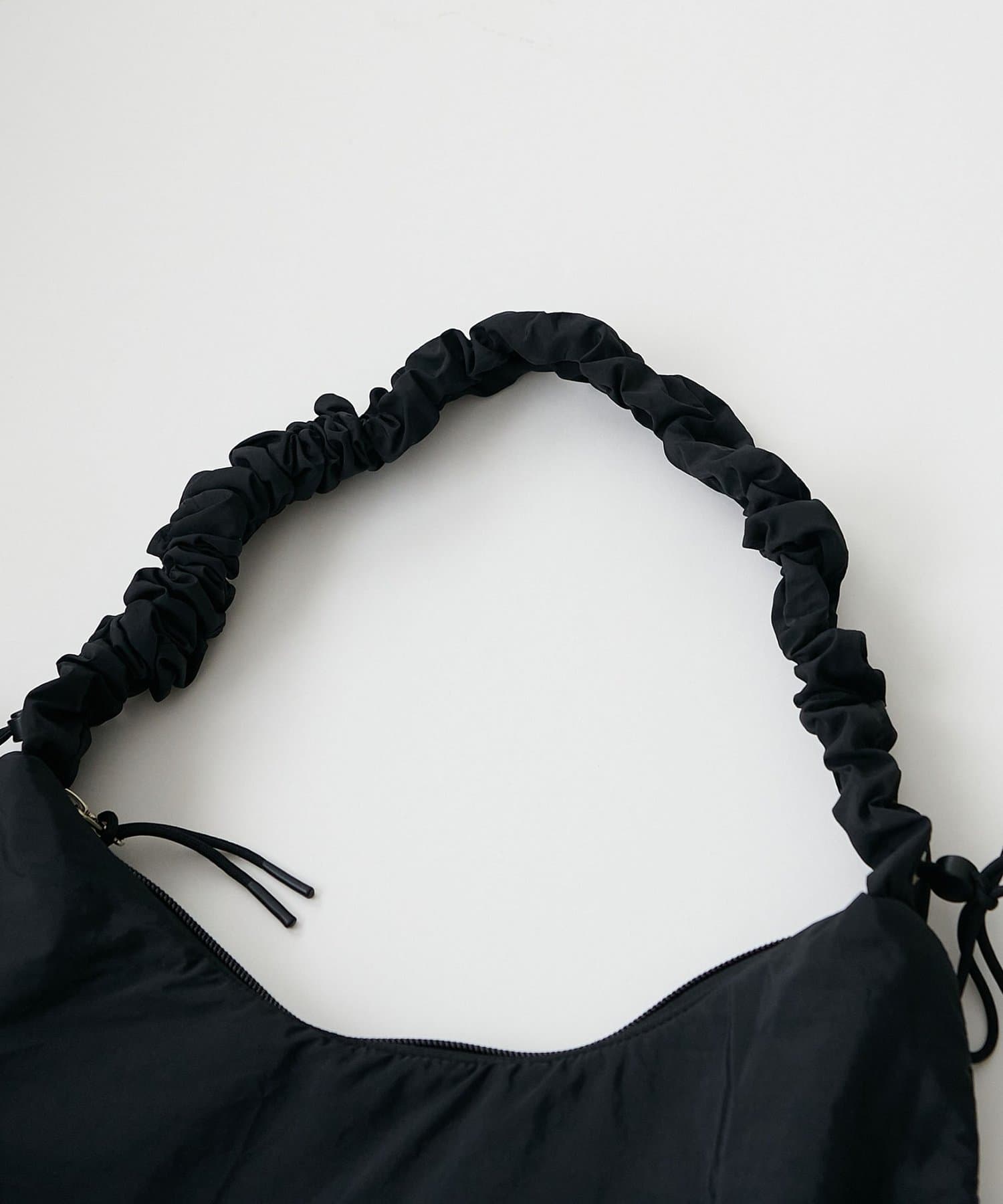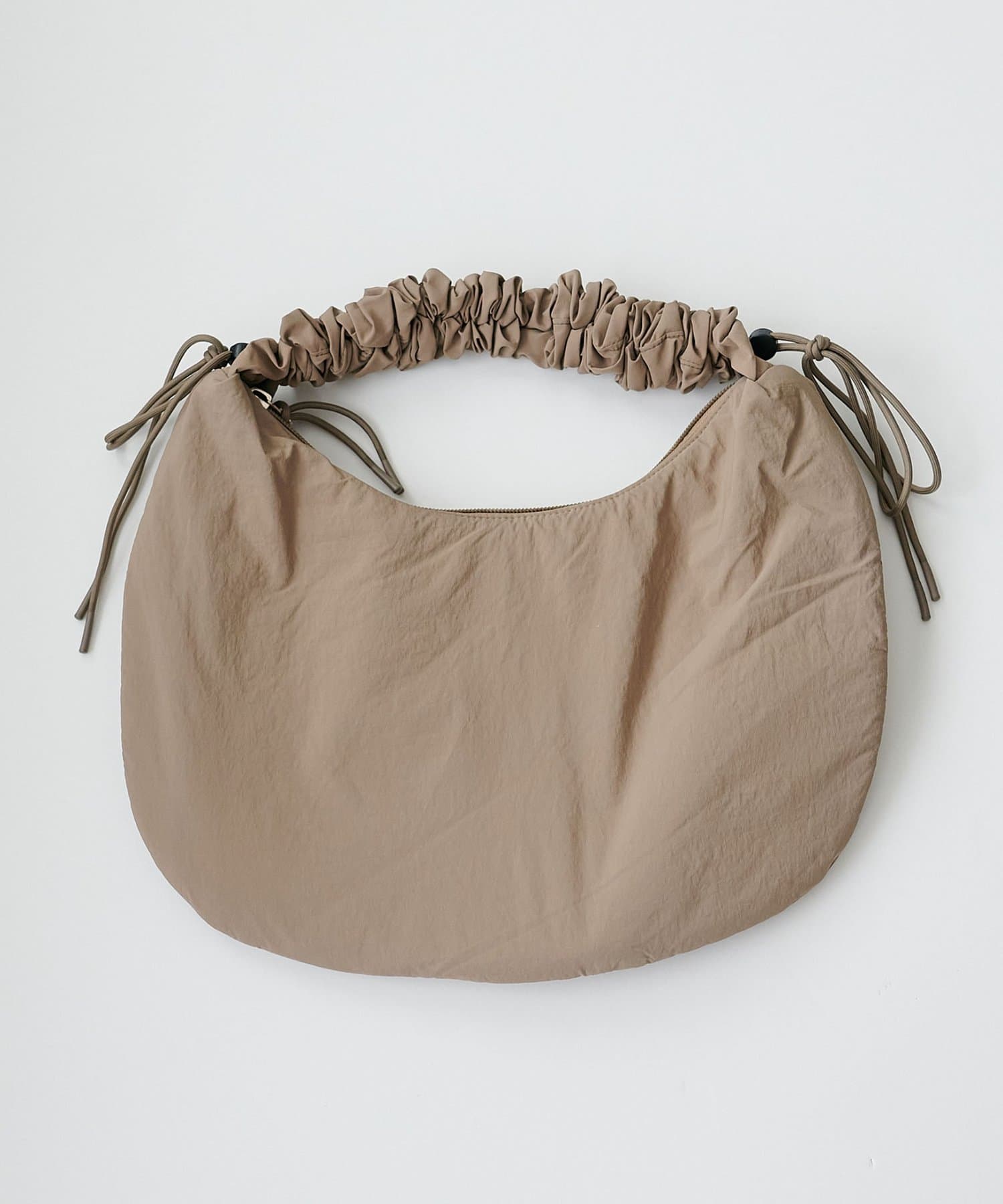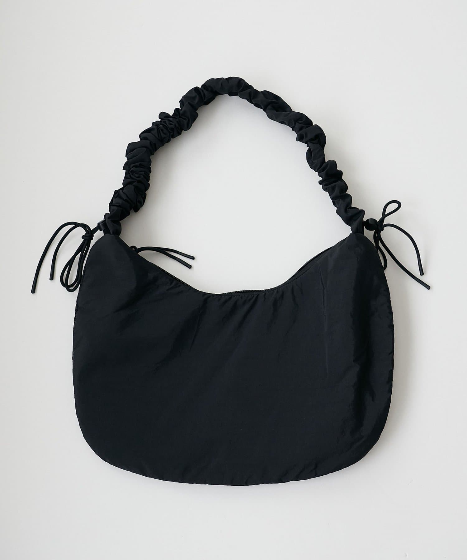 柔らかなパデットナイロンを使用した、軽量で持ちやすいショルダーバッグ。くしゅっとしたギャザーデザインのショルダーストラップが、シンプルな形にニュアンスをプラスします。A4サイズが収納できるサイズ感なので、通勤や通学にもぴったり◎内側にはオープンポケットとファスナーポケットが付いており、細かな荷物もきちんと整理して収納することができます♪